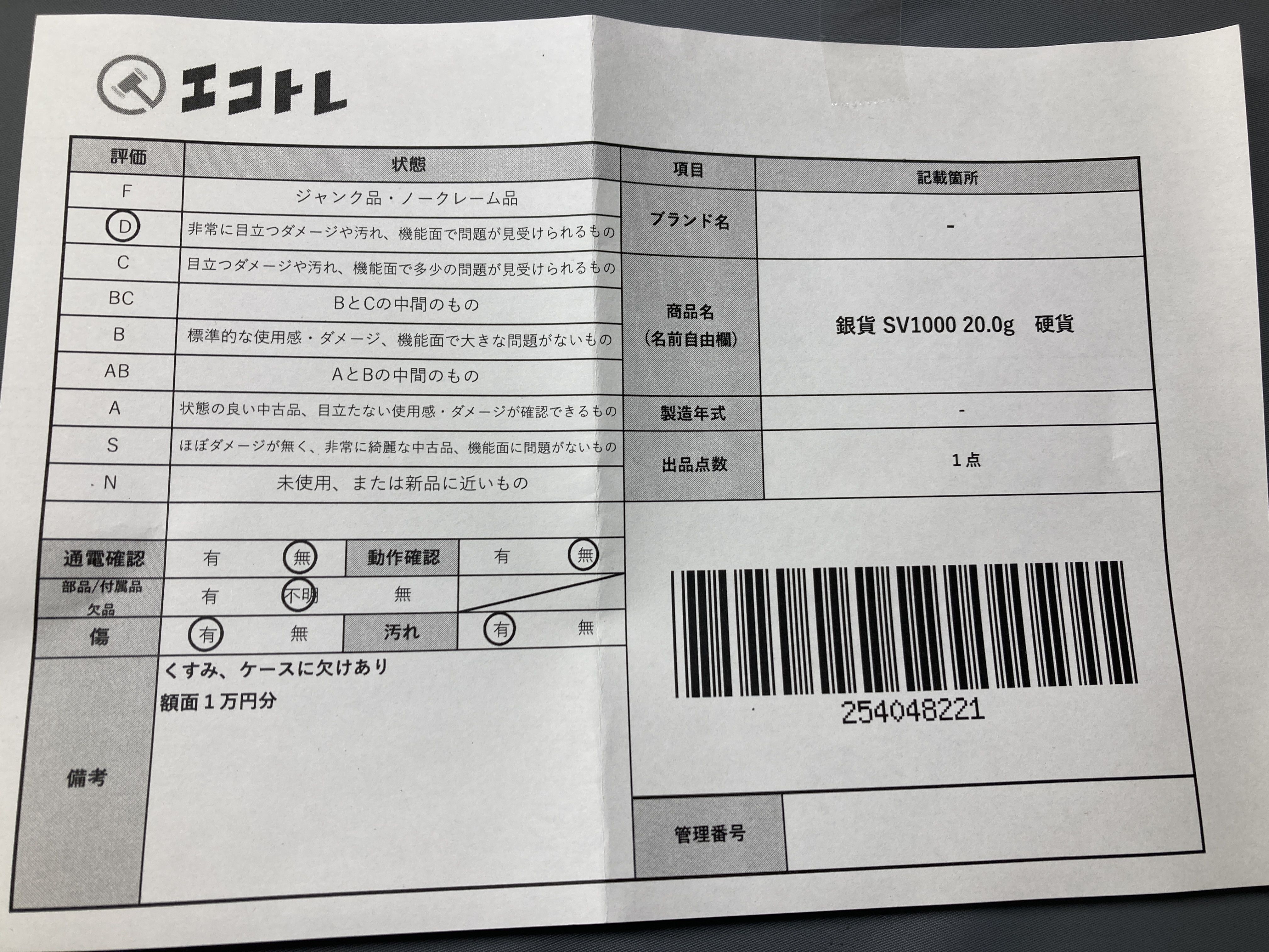 ▼SHIPPING TO JPN ONLY▼ 銀貨 SV1000 20.0g 硬貨","タイプライン":"","カテゴリ":"貴金属","形状コード":"その他小物(貴金属)","付属品コード":"","シリアル・シール・型番":""