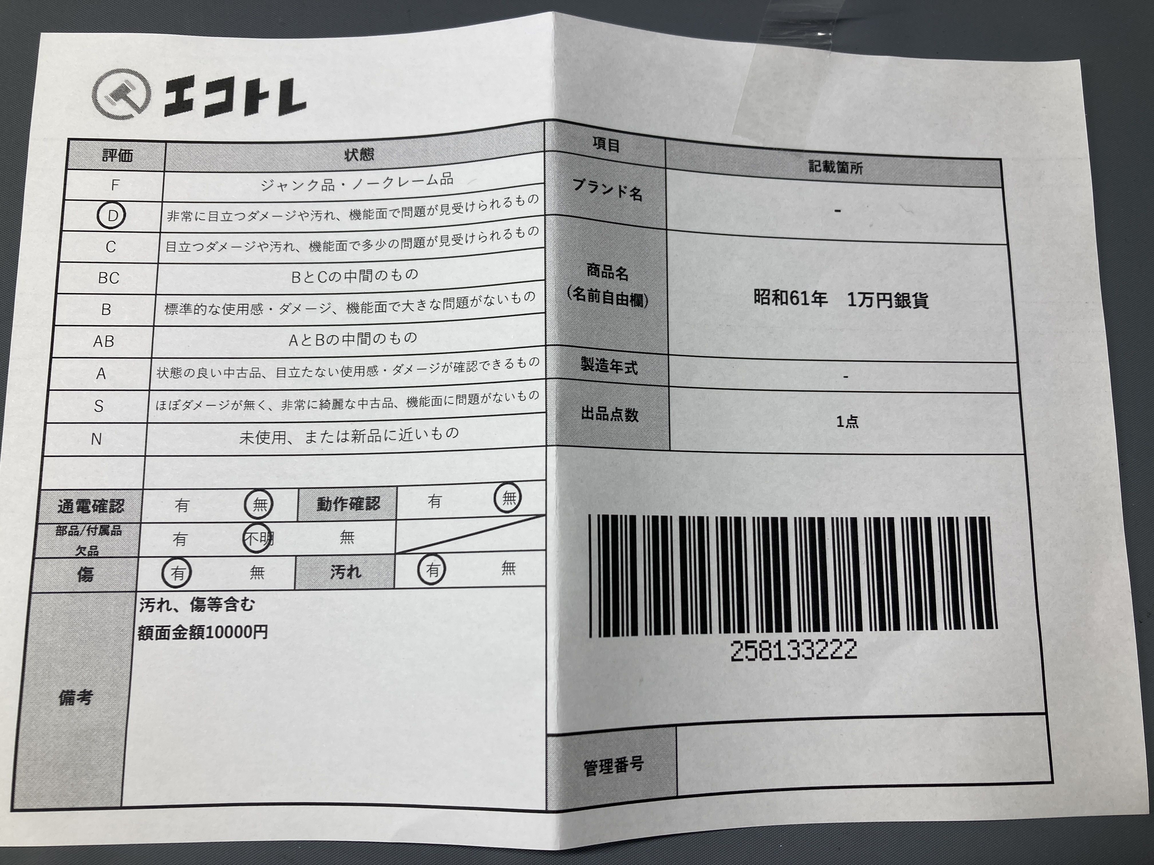 ▼SHIPPING TO JPN ONLY▼ 昭和61年 1万円銀貨","タイプライン":"","カテゴリ":"貴金属","形状コード":"その他小物(貴金属)","付属品コード":"","シリアル・シール・型番":""