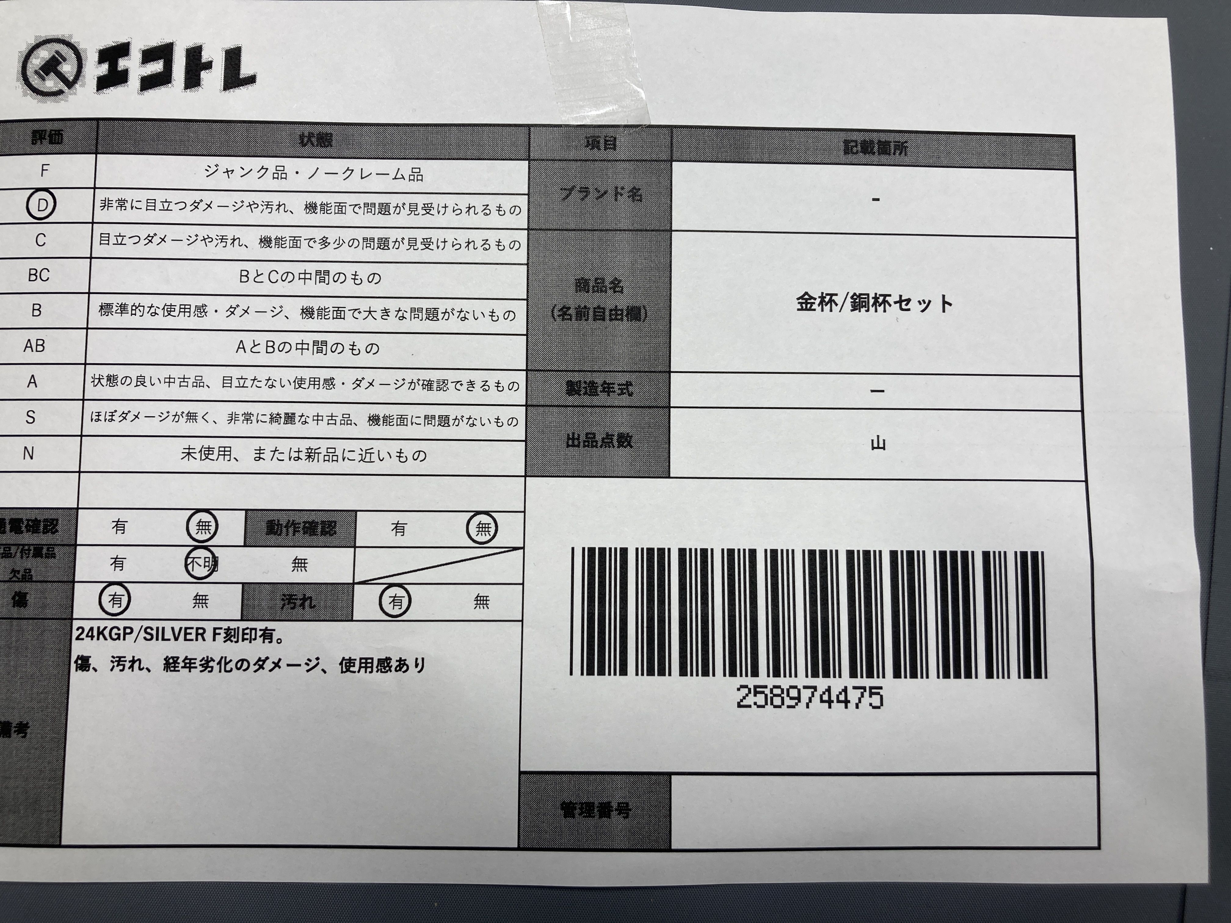 ▼SHIPPING TO JPN ONLY▼ 金杯/銅杯セット","タイプライン":"","カテゴリ":"貴金属","形状コード":"その他小物(貴金属)","付属品コード":"","シリアル・シール・型番":""