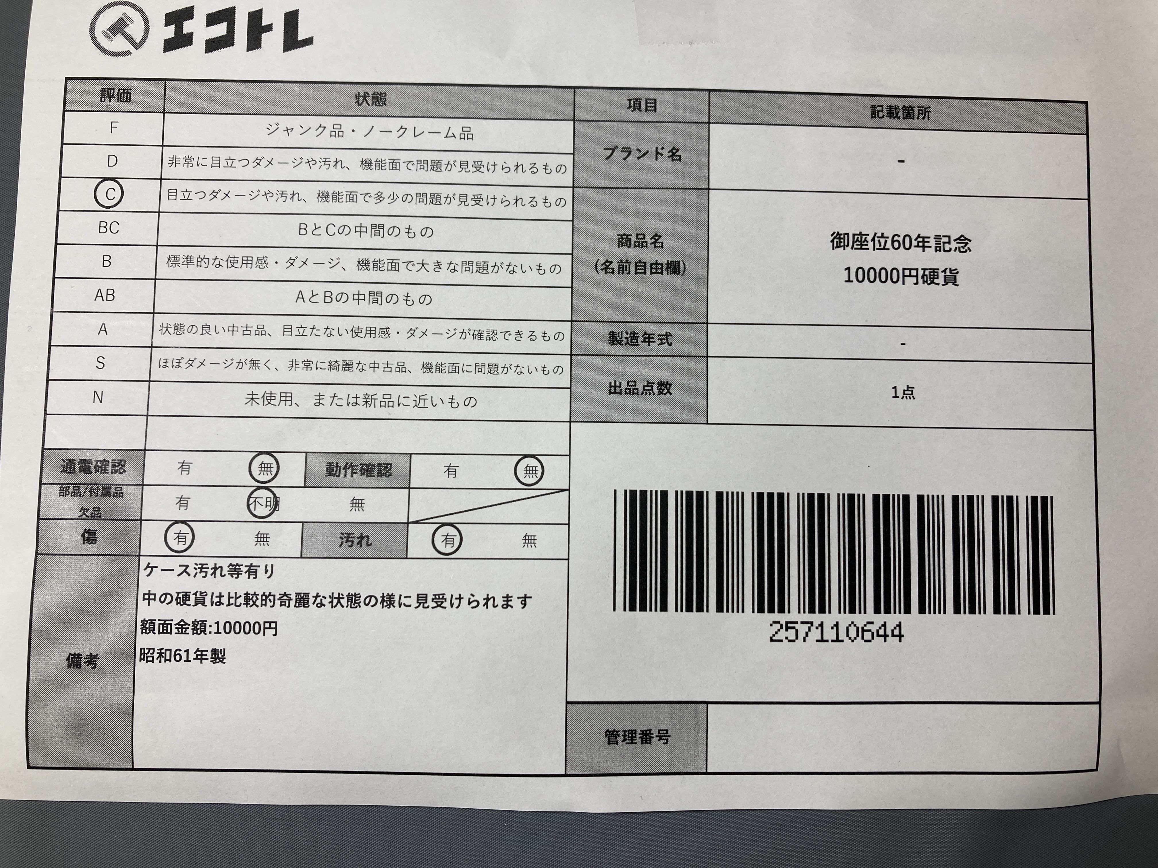 ▼SHIPPING TO JPN ONLY▼ 御座位60年記念 10000円硬貨","タイプライン":"","カテゴリ":"貴金属","形状コード":"金貨(貴金属)","付属品コード":"","シリアル・シール・型番":""
