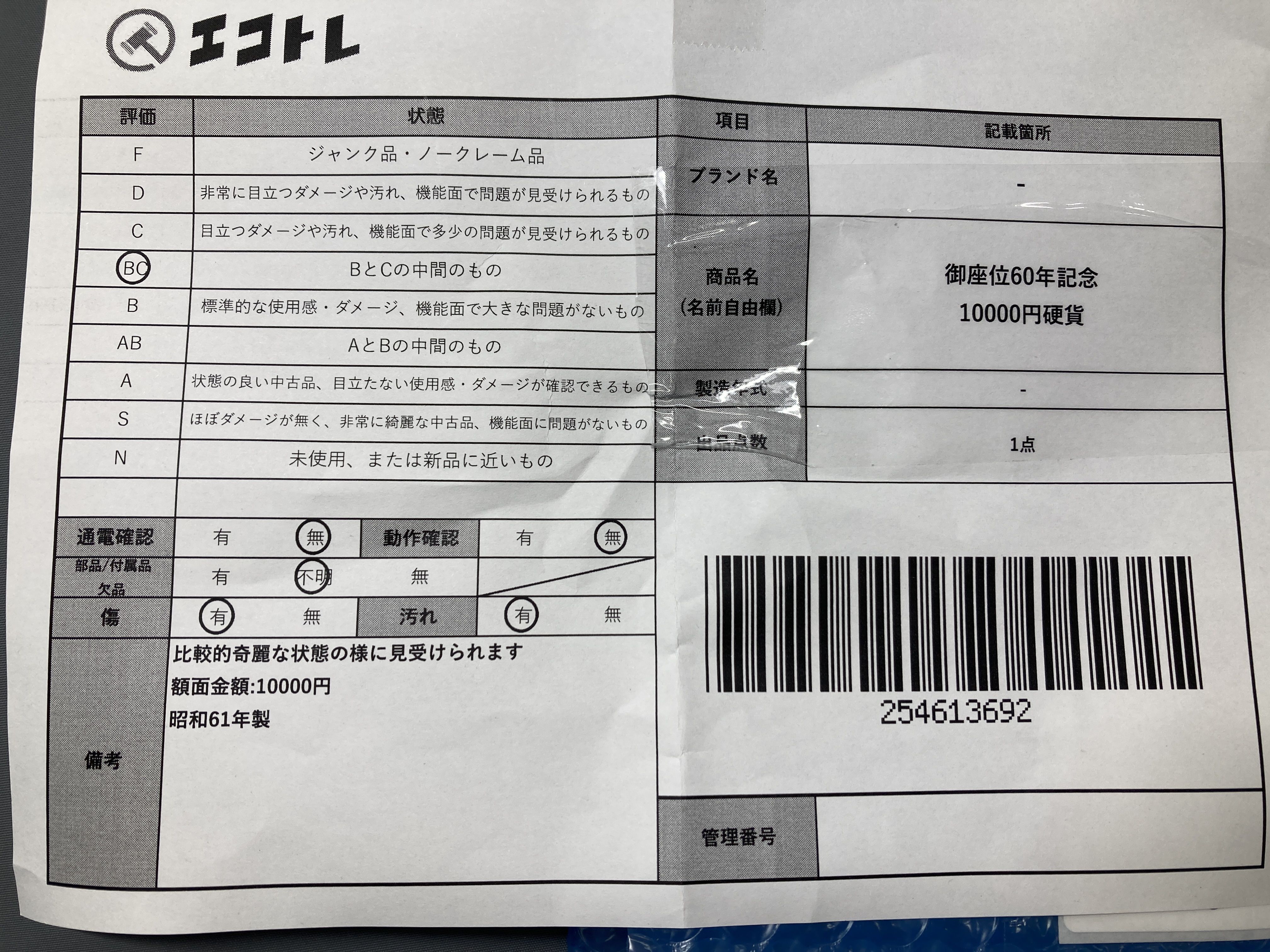 ▼SHIPPING TO JPN ONLY▼ 御座位60年記念 10000円硬貨","タイプライン":"","カテゴリ":"貴金属","形状コード":"金貨(貴金属)","付属品コード":"","シリアル・シール・型番":""