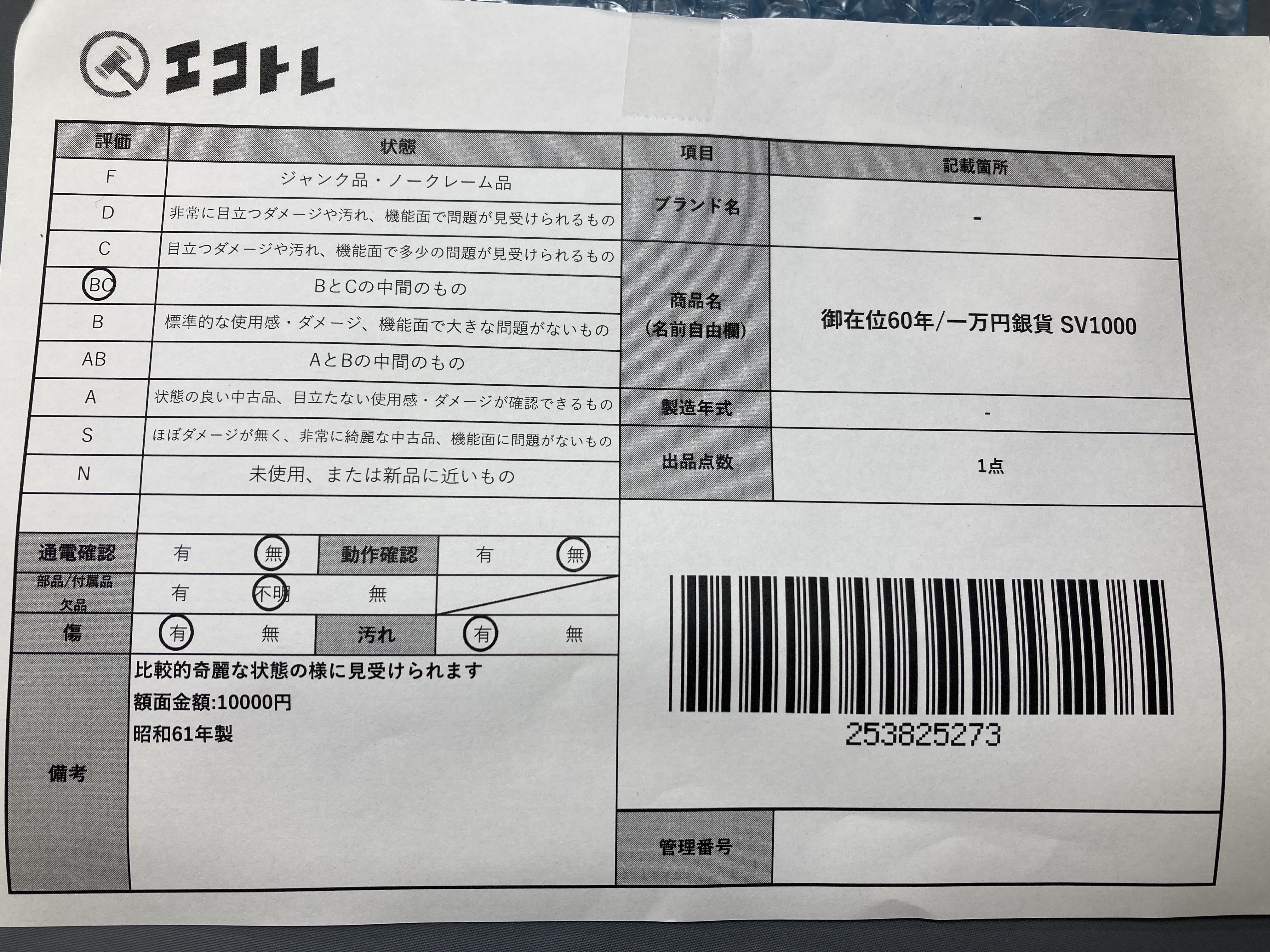 ▼SHIPPING TO JPN ONLY▼ 御在位60年/一万円銀貨 SV1000","タイプライン":"","カテゴリ":"貴金属","形状コード":"その他小物(貴金属)","付属品コード":"","シリアル・シール・型番":""