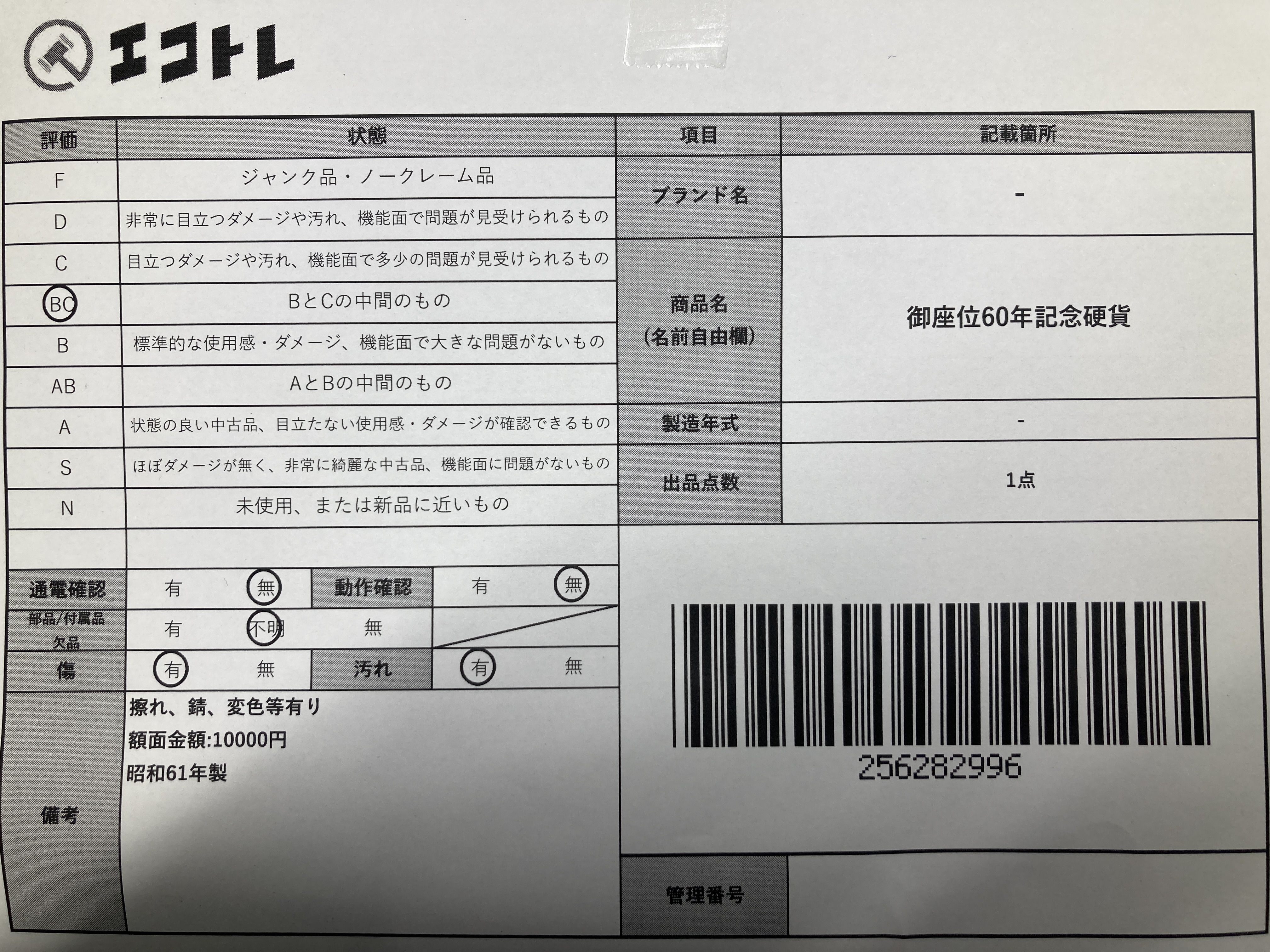 ▼SHIPPING TO JPN ONLY▼ 御座位60年記念硬貨","タイプライン":"","カテゴリ":"貴金属","形状コード":"その他小物(貴金属)","付属品コード":"","シリアル・シール・型番":""