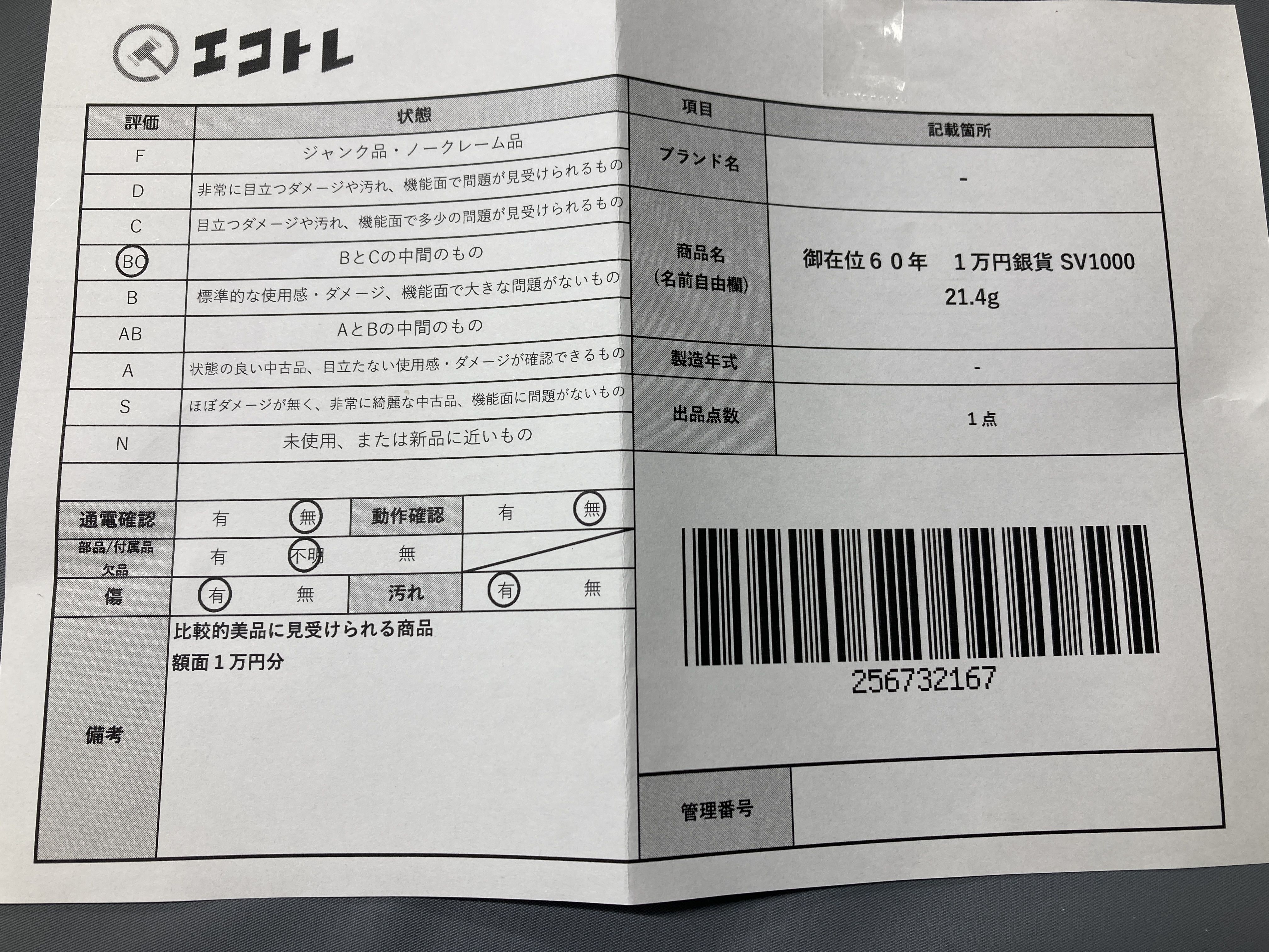 ▼SHIPPING TO JPN ONLY▼ 御在位60年 1万円銀貨 SV1000 21.4g","タイプライン":"","カテゴリ":"貴金属","形状コード":"その他小物(貴金属)","付属品コード":"","シリアル・シール・型番":""