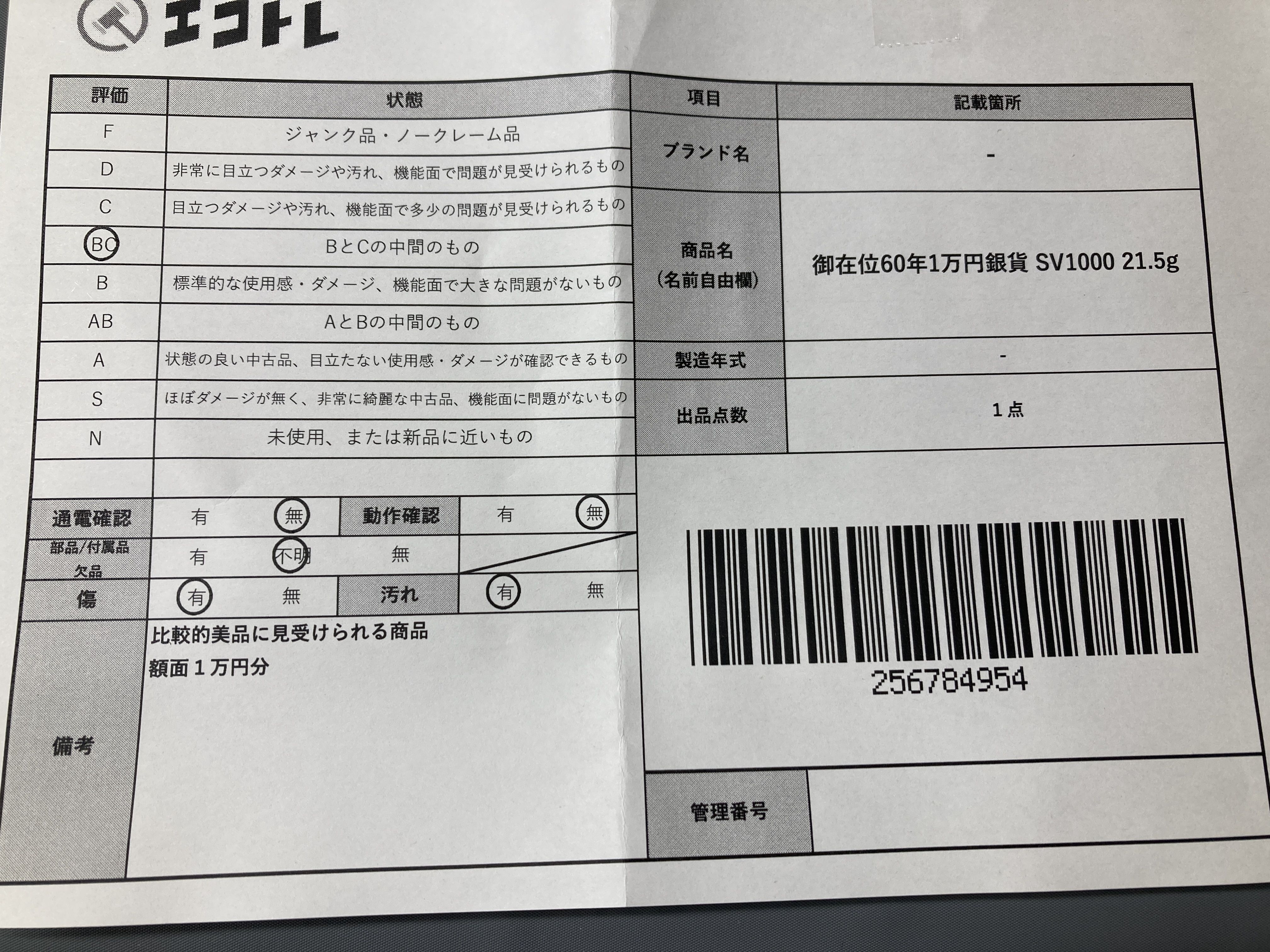▼SHIPPING TO JPN ONLY▼ 御在位60年1万円銀貨 SV1000 21.5g","タイプライン":"","カテゴリ":"貴金属","形状コード":"その他小物(貴金属)","付属品コード":"","シリアル・シール・型番":""