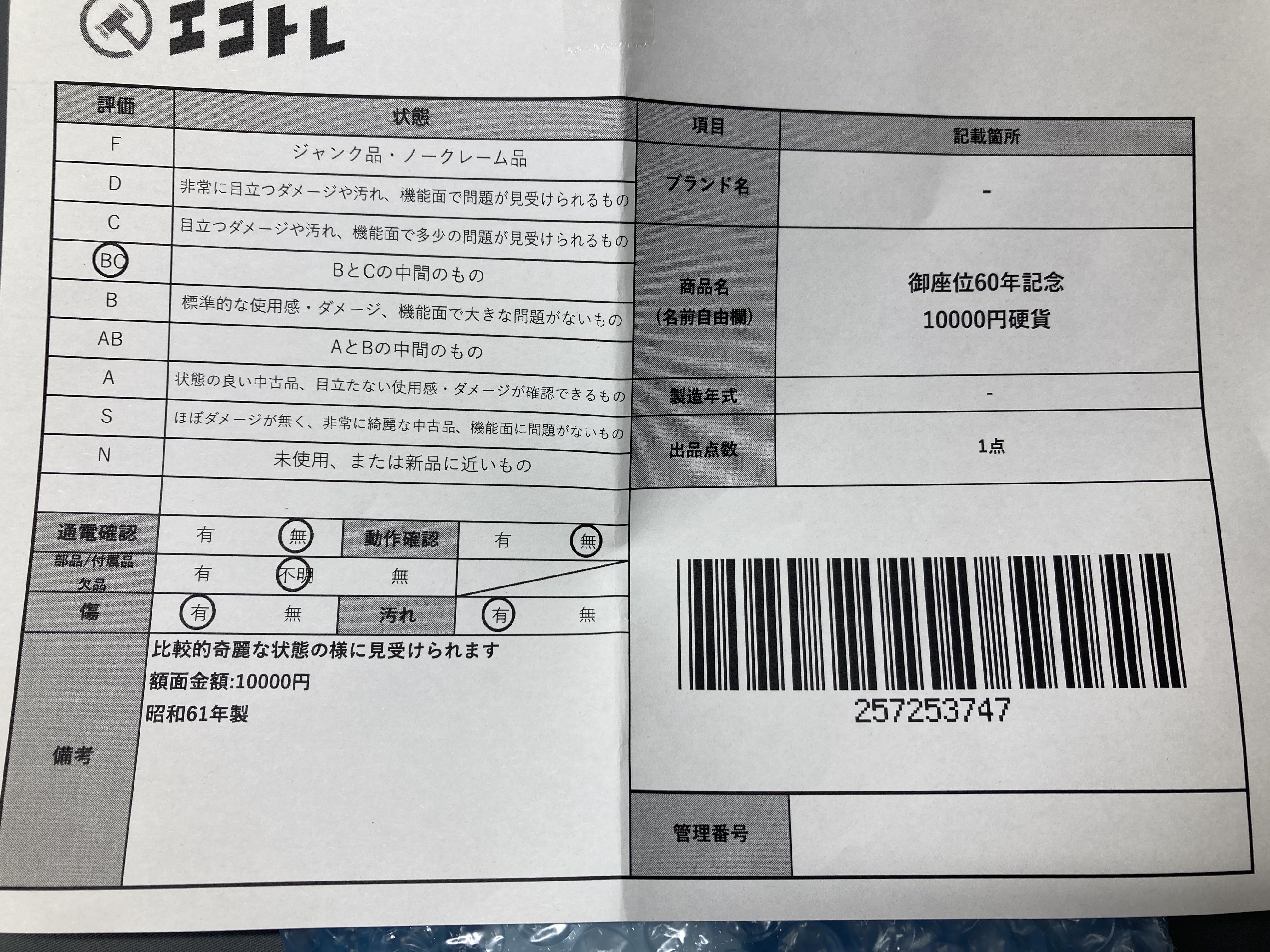 ▼SHIPPING TO JPN ONLY▼ 御座位60年記念 10000円硬貨","タイプライン":"","カテゴリ":"貴金属","形状コード":"その他小物(貴金属)","付属品コード":"","シリアル・シール・型番":""