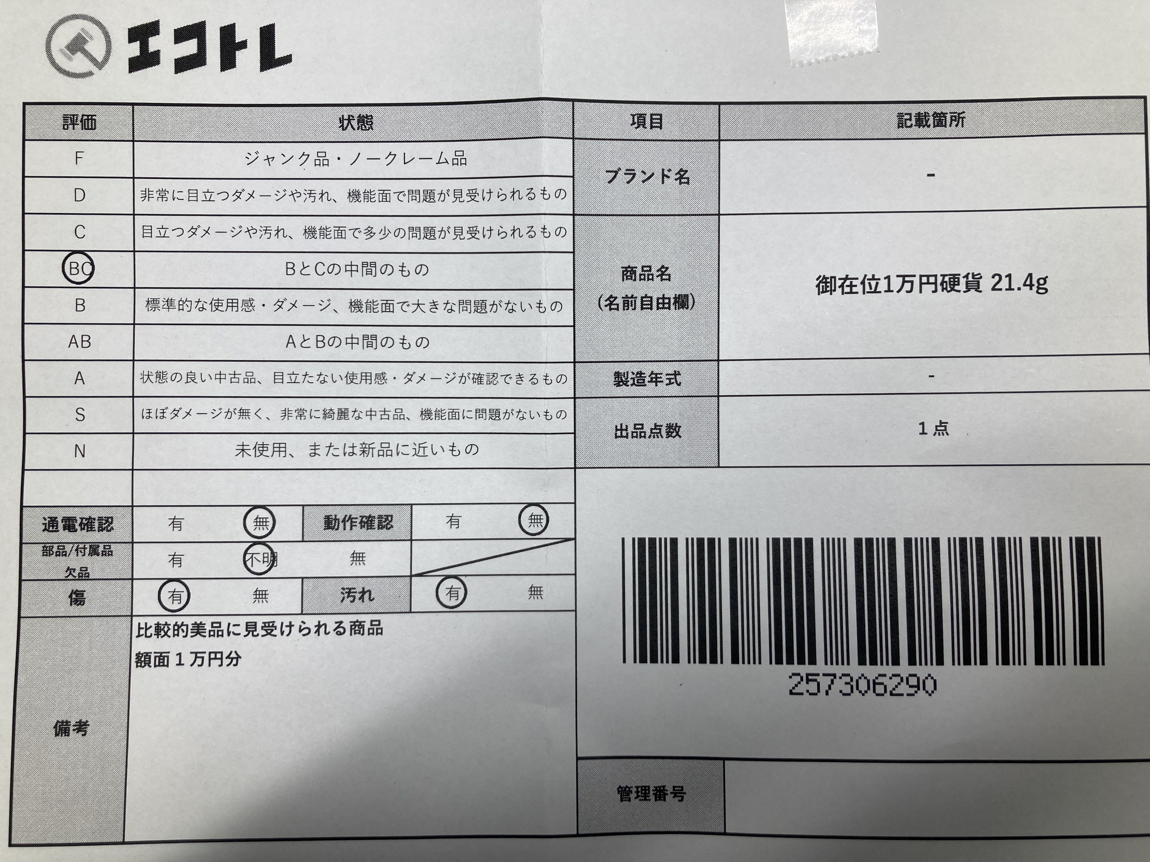 ▼SHIPPING TO JPN ONLY▼ 御在位1万円硬貨 21.4g","タイプライン":"","カテゴリ":"貴金属","形状コード":"その他小物(貴金属)","付属品コード":"","シリアル・シール・型番":""