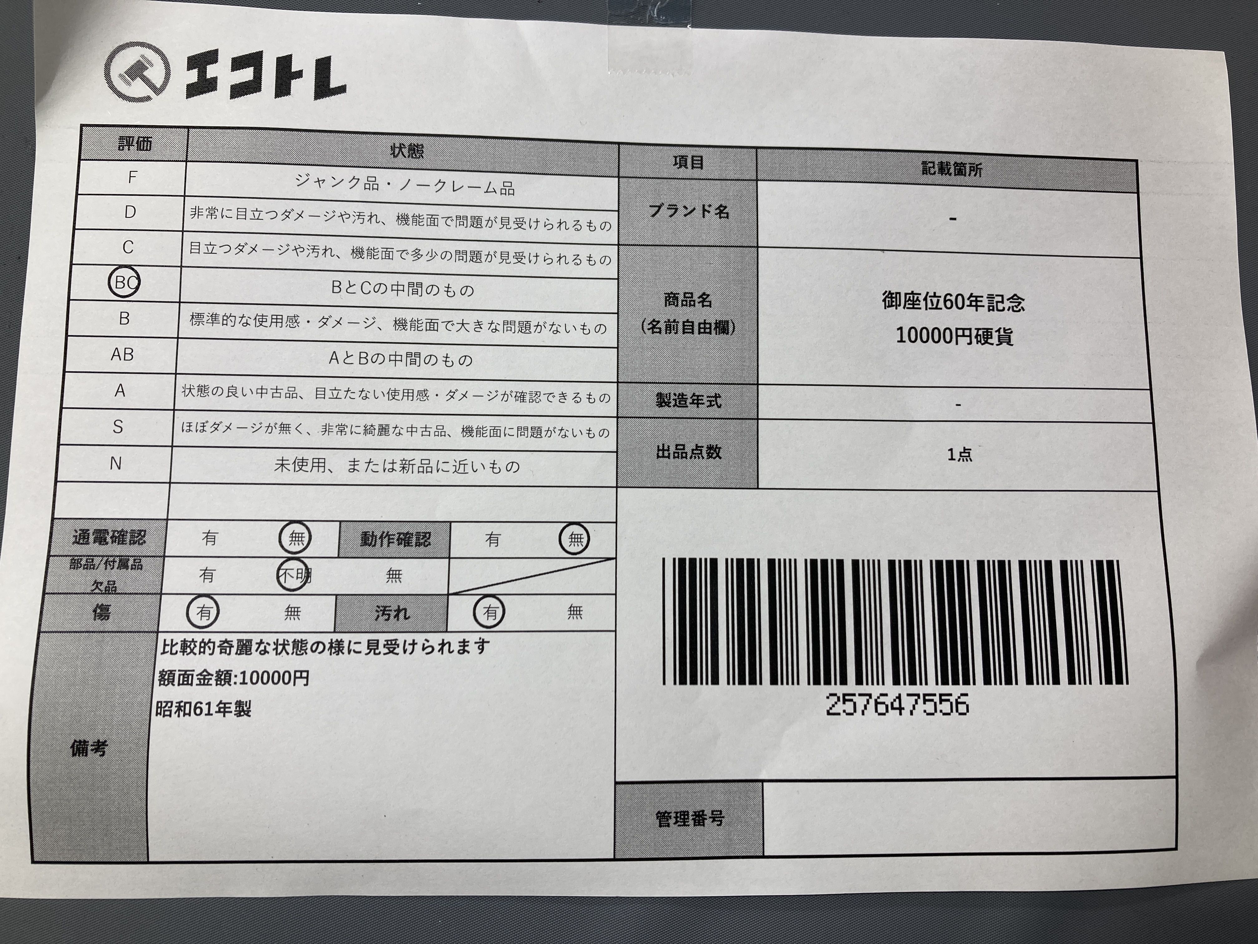 ▼SHIPPING TO JPN ONLY▼ 御座位60年記念 10000円硬貨","タイプライン":"","カテゴリ":"貴金属","形状コード":"その他小物(貴金属)","付属品コード":"","シリアル・シール・型番":""