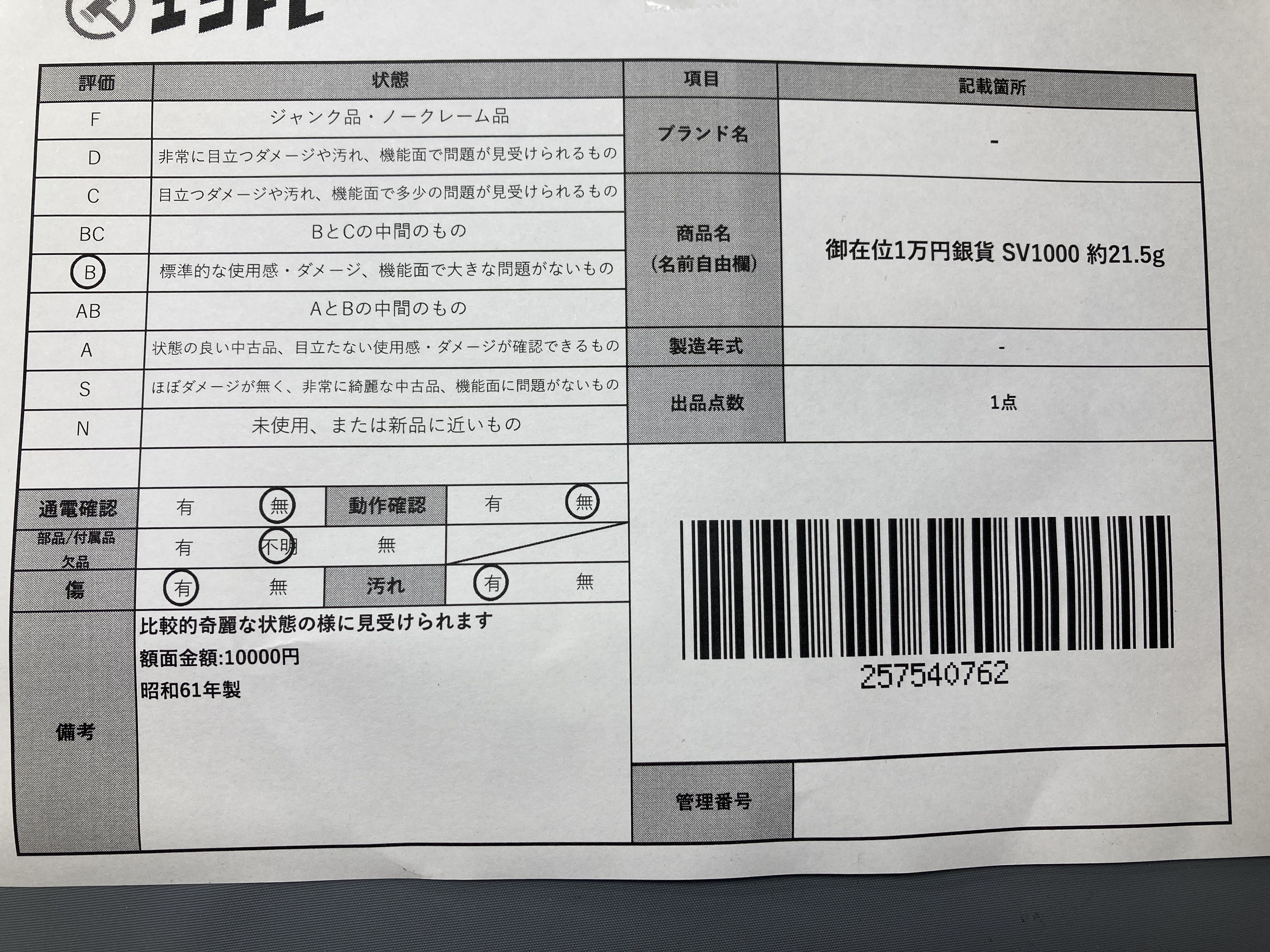 ▼SHIPPING TO JPN ONLY▼ 御在位1万円銀貨 SV1000 約21.5g","タイプライン":"","カテゴリ":"貴金属","形状コード":"その他小物(貴金属)","付属品コード":"","シリアル・シール・型番":""