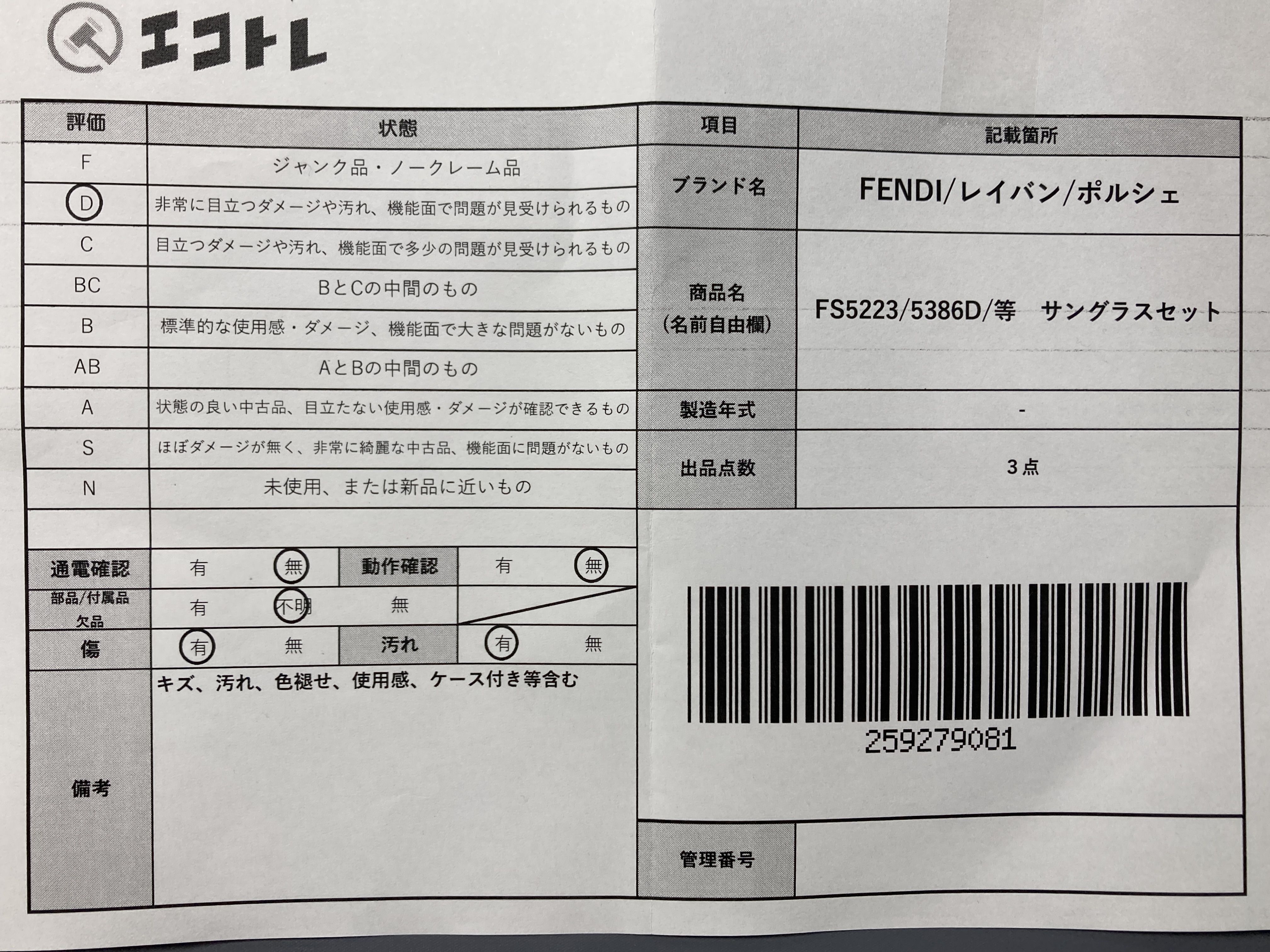 ◆CAN’T SHIPPING TO USA◆▼SHIPPING TO JPN ONLY▼ FS5223/レイバン5386D/ポルシェ等 サングラスセット","タイプライン":"","カテゴリ":"小物","形状コード":"サングラス・メガネ","付属品コード":"","シリアル・シール・型番":""