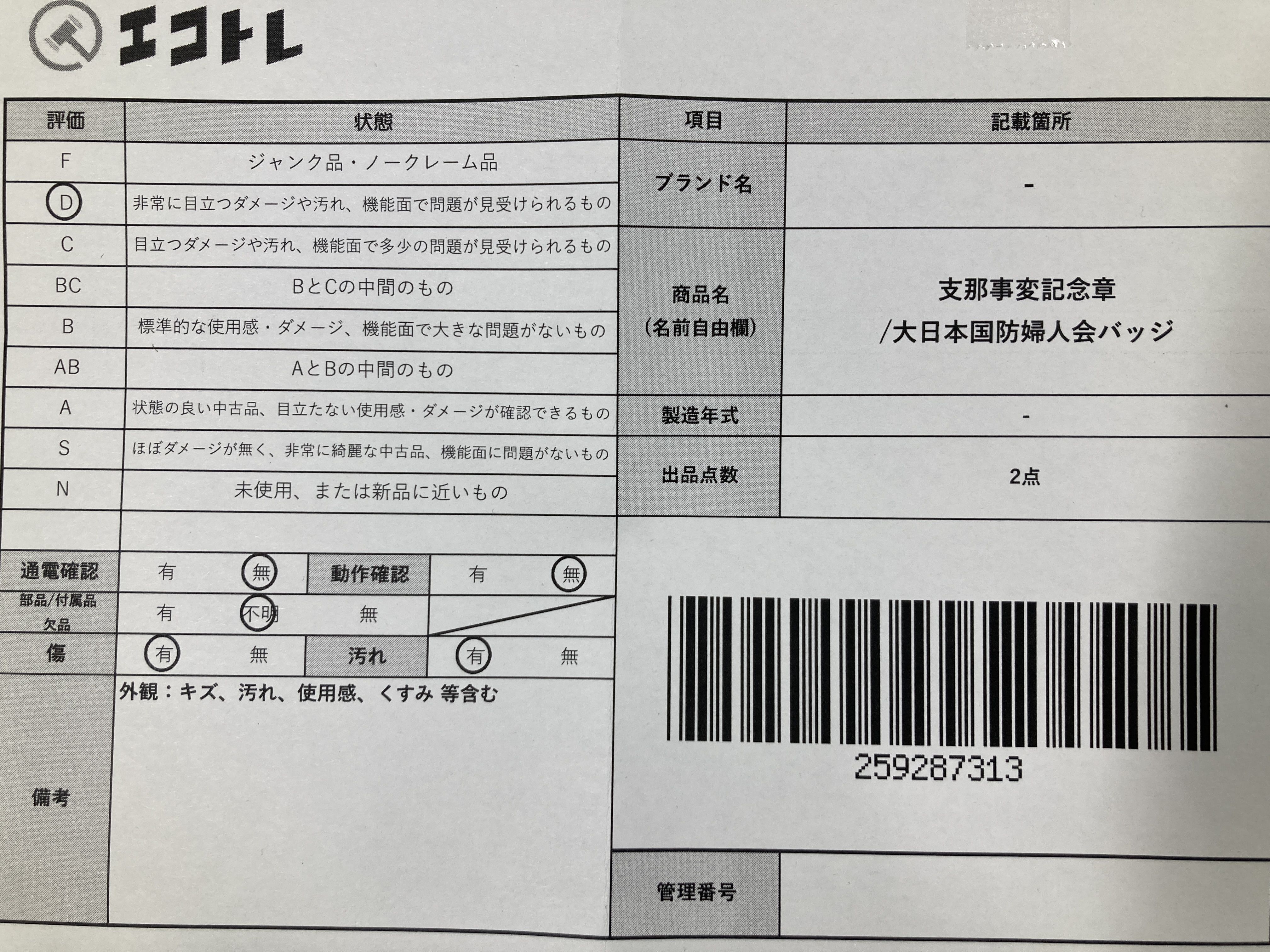 ▼SHIPPING TO JPN ONLY▼ 支那事変記念章 /大日本国防婦人会バッジ","タイプライン":"","カテゴリ":"小物","形状コード":"その他小物","付属品コード":"","シリアル・シール・型番":""