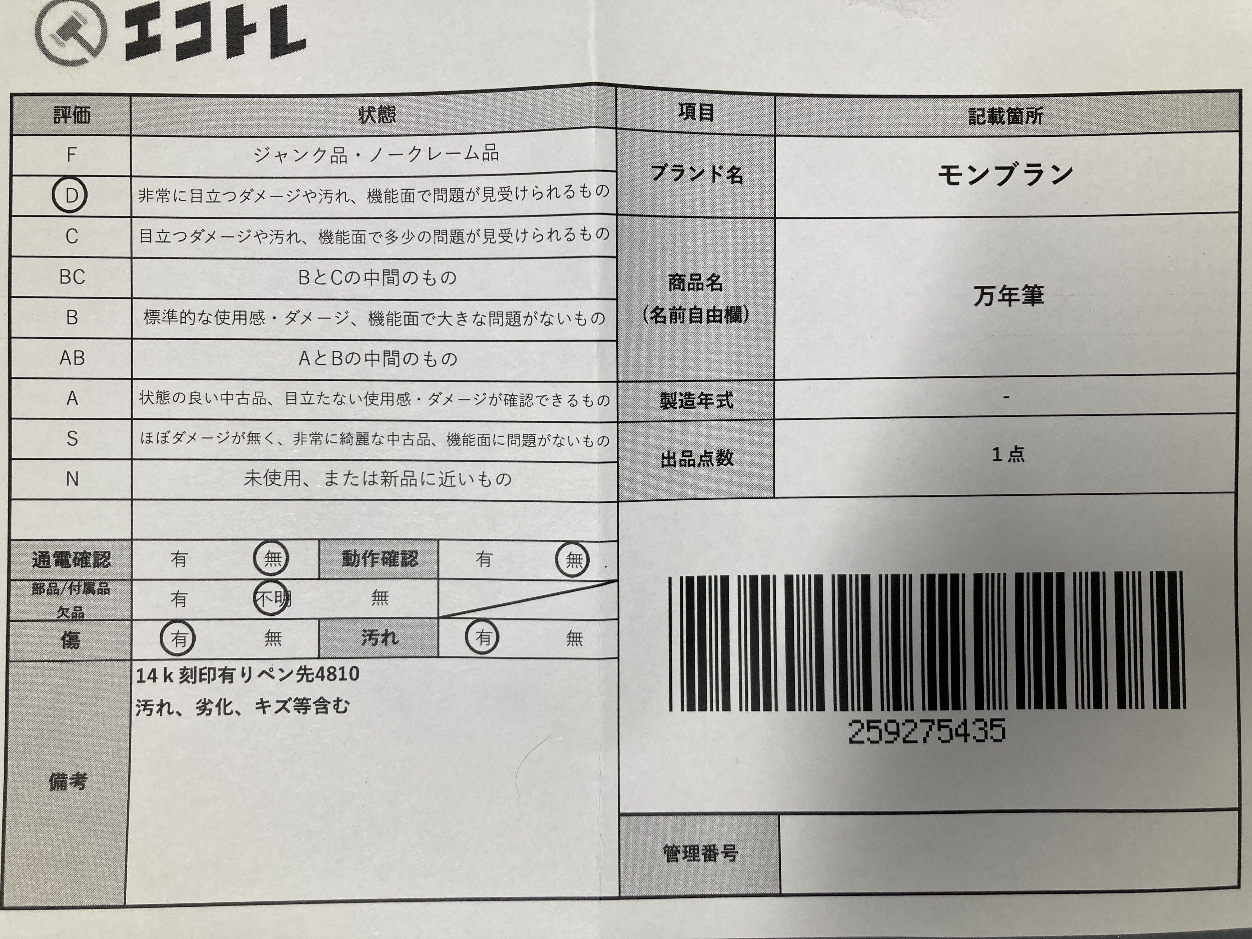 拍品等级