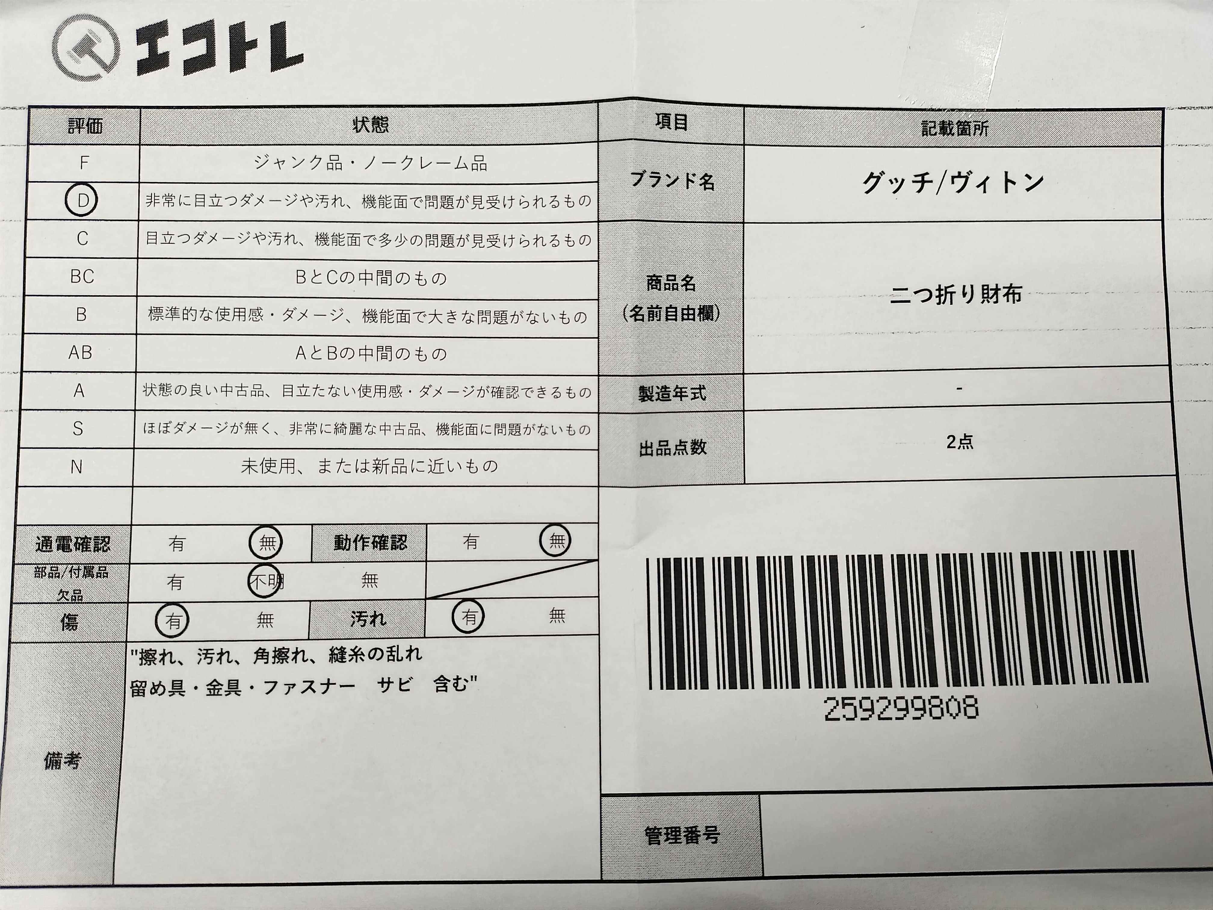 ▼SHIPPING TO JPN ONLY▼ グッチ/ヴィトン 二つ折り財布","タイプライン":"","カテゴリ":"小物","形状コード":"財布","付属品コード":"","シリアル・シール・型番":""