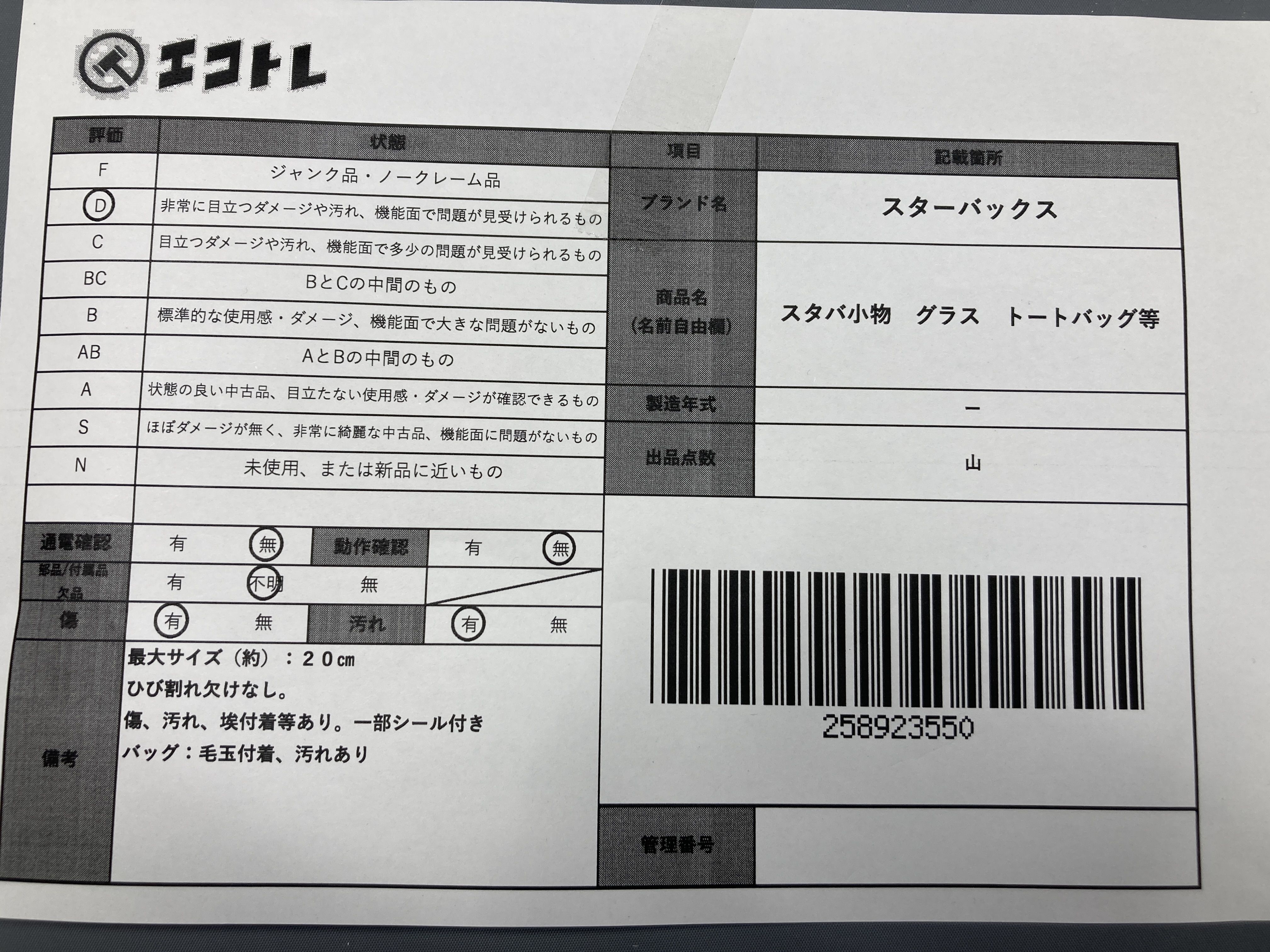 ▼SHIPPING TO JPN ONLY▼ スタバ小物 グラス トートバッグ等","タイプライン":"","カテゴリ":"陶器","形状コード":"その他陶器","付属品コード":"","シリアル・シール・型番":""