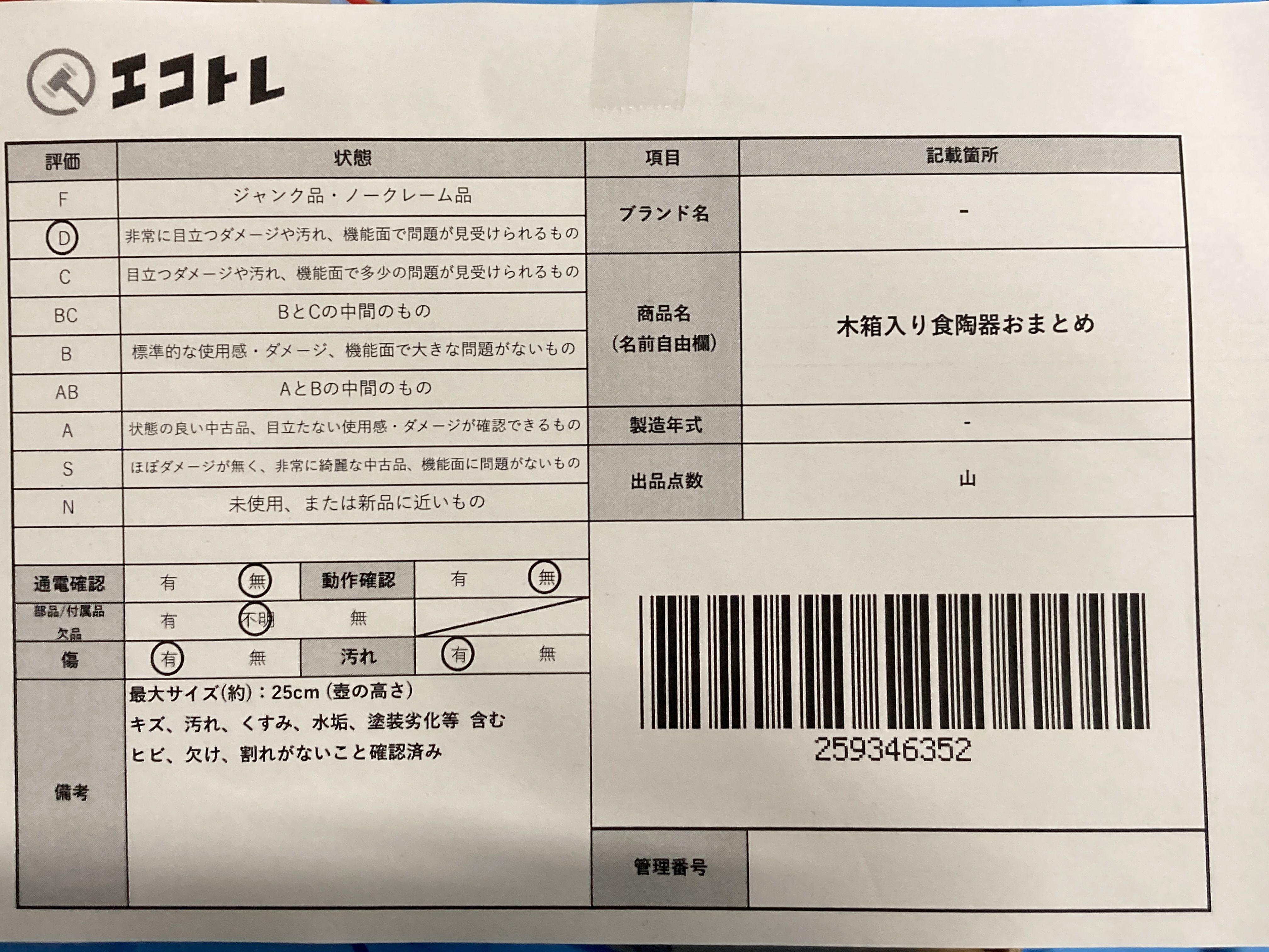 ▼SHIPPING TO JPN ONLY▼ 木箱入り食陶器おまとめ","タイプライン":"","カテゴリ":"陶器","形状コード":"その他陶器","付属品コード":"","シリアル・シール・型番":""