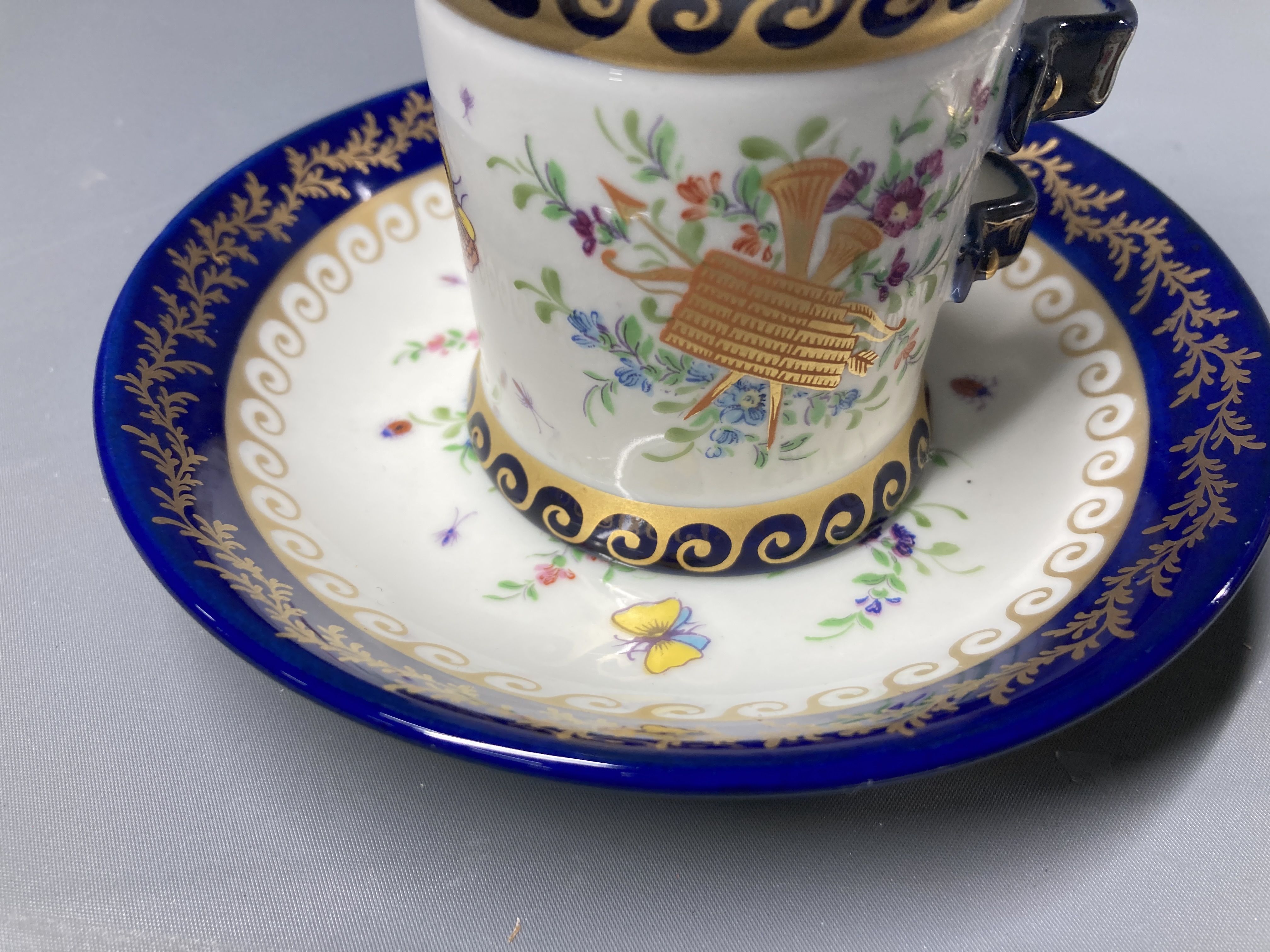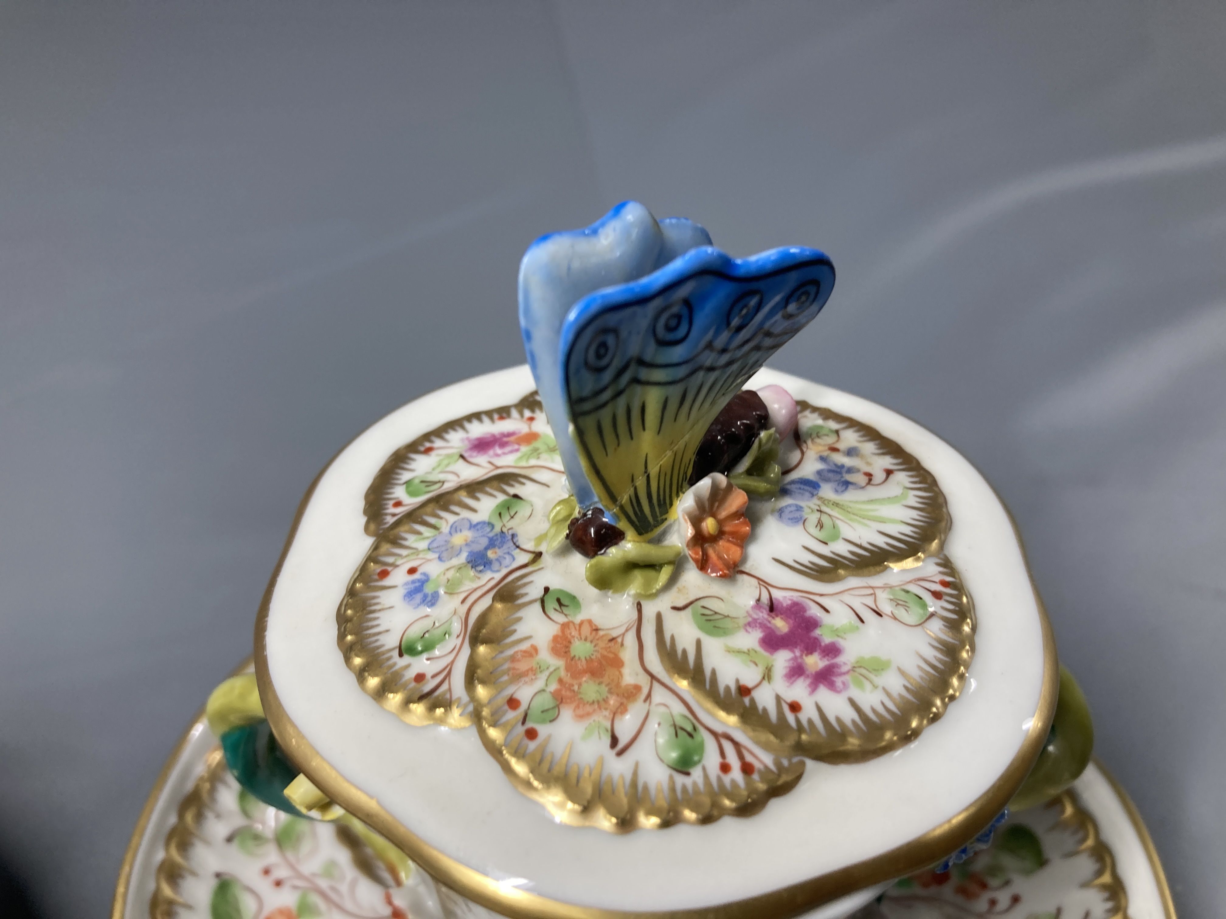 (E_0886)▼Giulia Mangani マンガーニ 蝶 花 蓋付カップ&ソーサー 2客