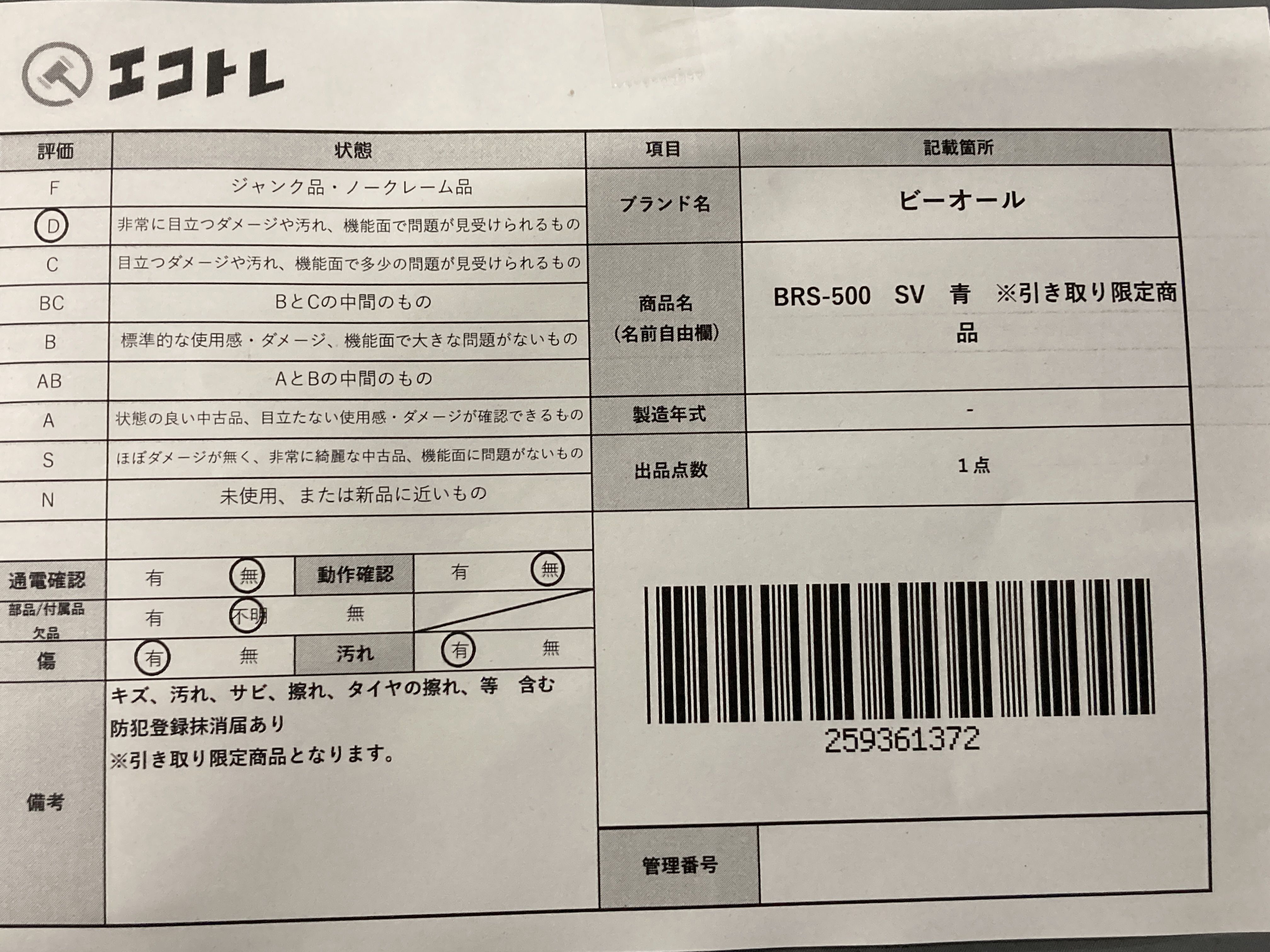 ▼SHIPPING TO JPN ONLY▼ ビーオール BRS-500 SV 青 ※引き取り限定商品","タイプライン":"","カテゴリ":"自転車","形状コード":"シティサイクル","付属品コード":"","シリアル・シール・型番":""