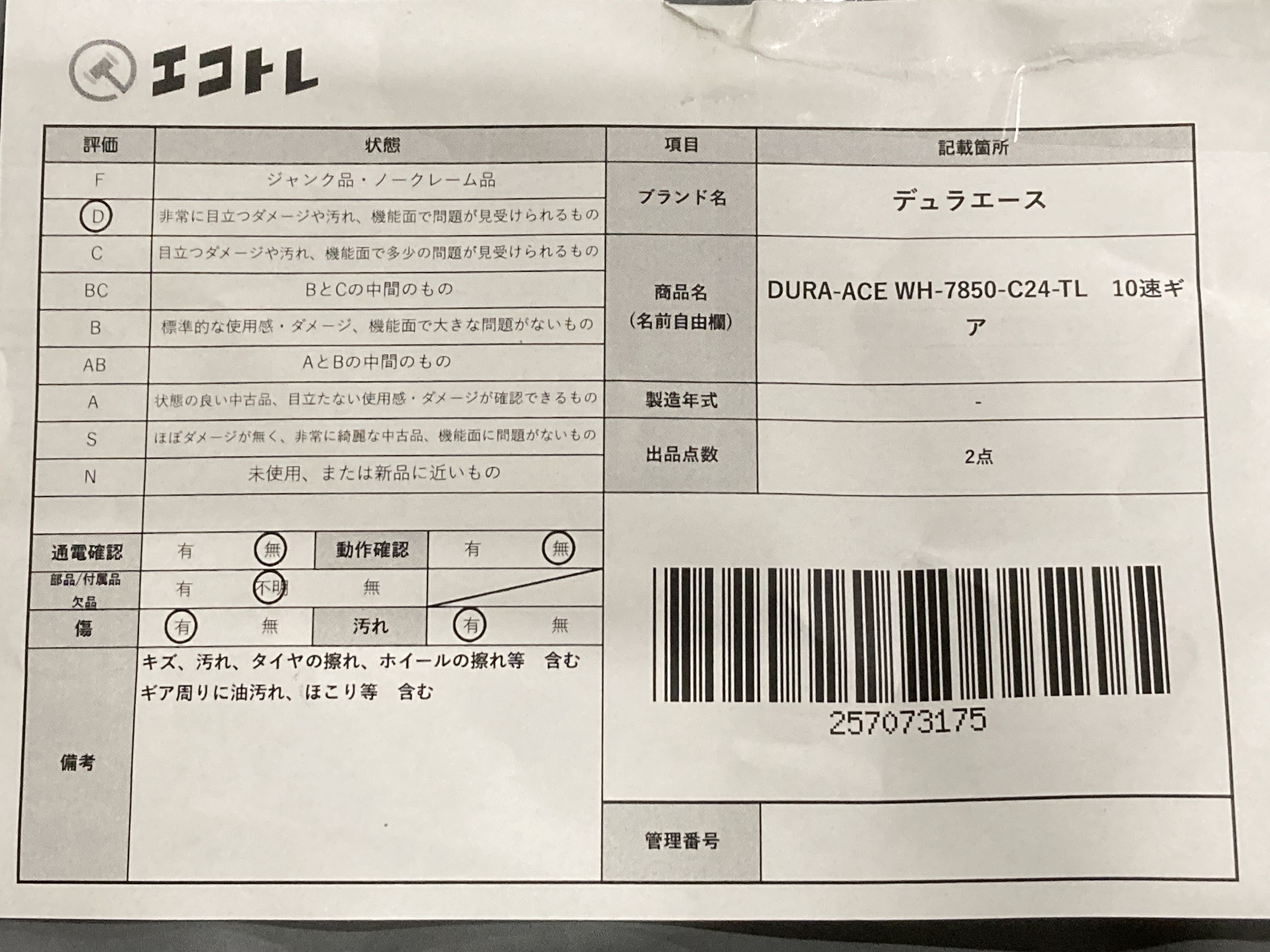 ▼SHIPPING TO JPN ONLY▼ デュラエース DURA-ACE WH-7850-C24-TL 10速ギア","タイプライン":"","カテゴリ":"自転車","形状コード":"ロードバイク","付属品コード":"","シリアル・シール・型番":""