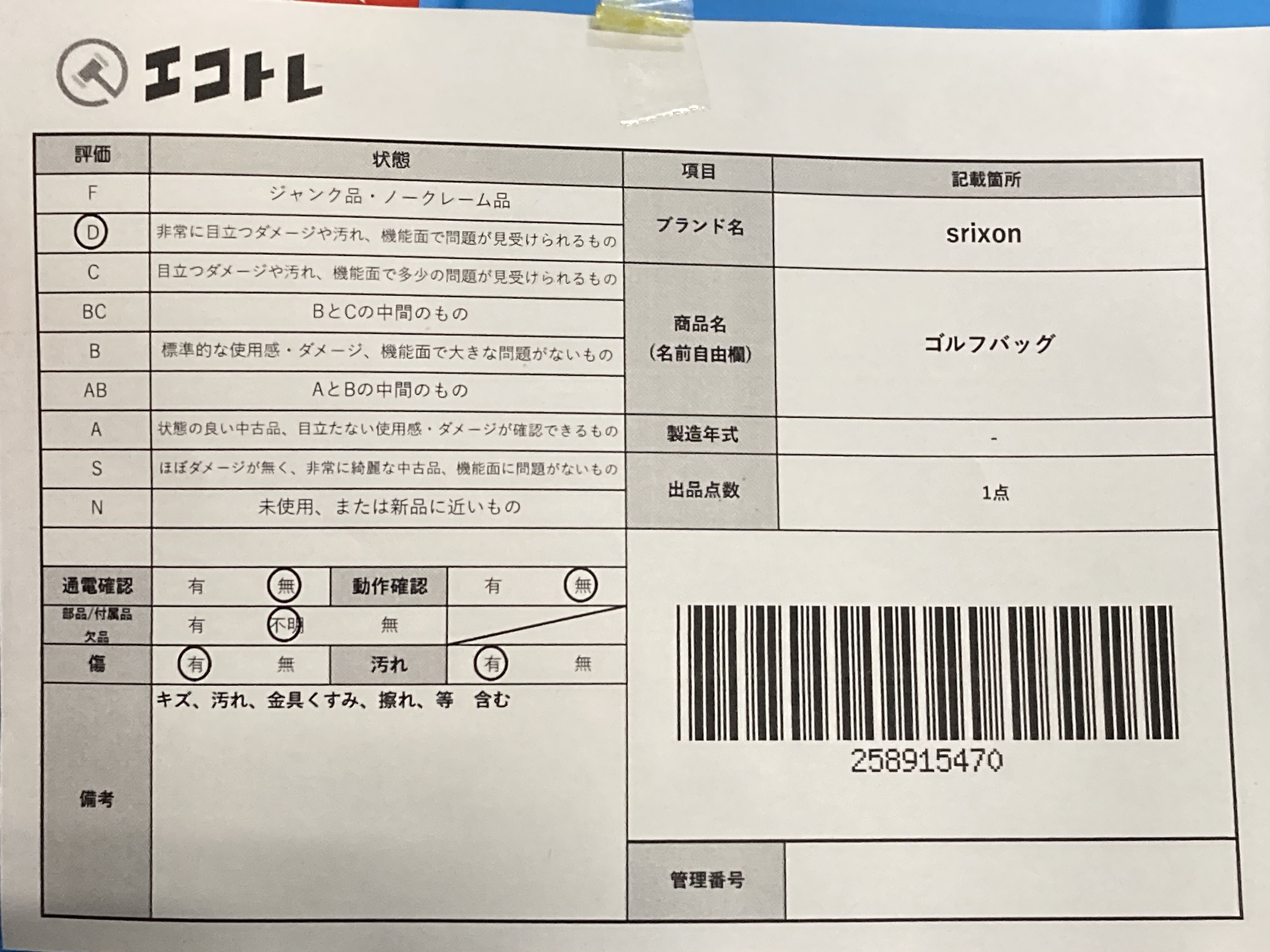 ▼SHIPPING TO JPN ONLY▼ srixon ゴルフバッグ","タイプライン":"","カテゴリ":"スポーツ","形状コード":"ゴルフ","付属品コード":"","シリアル・シール・型番":""