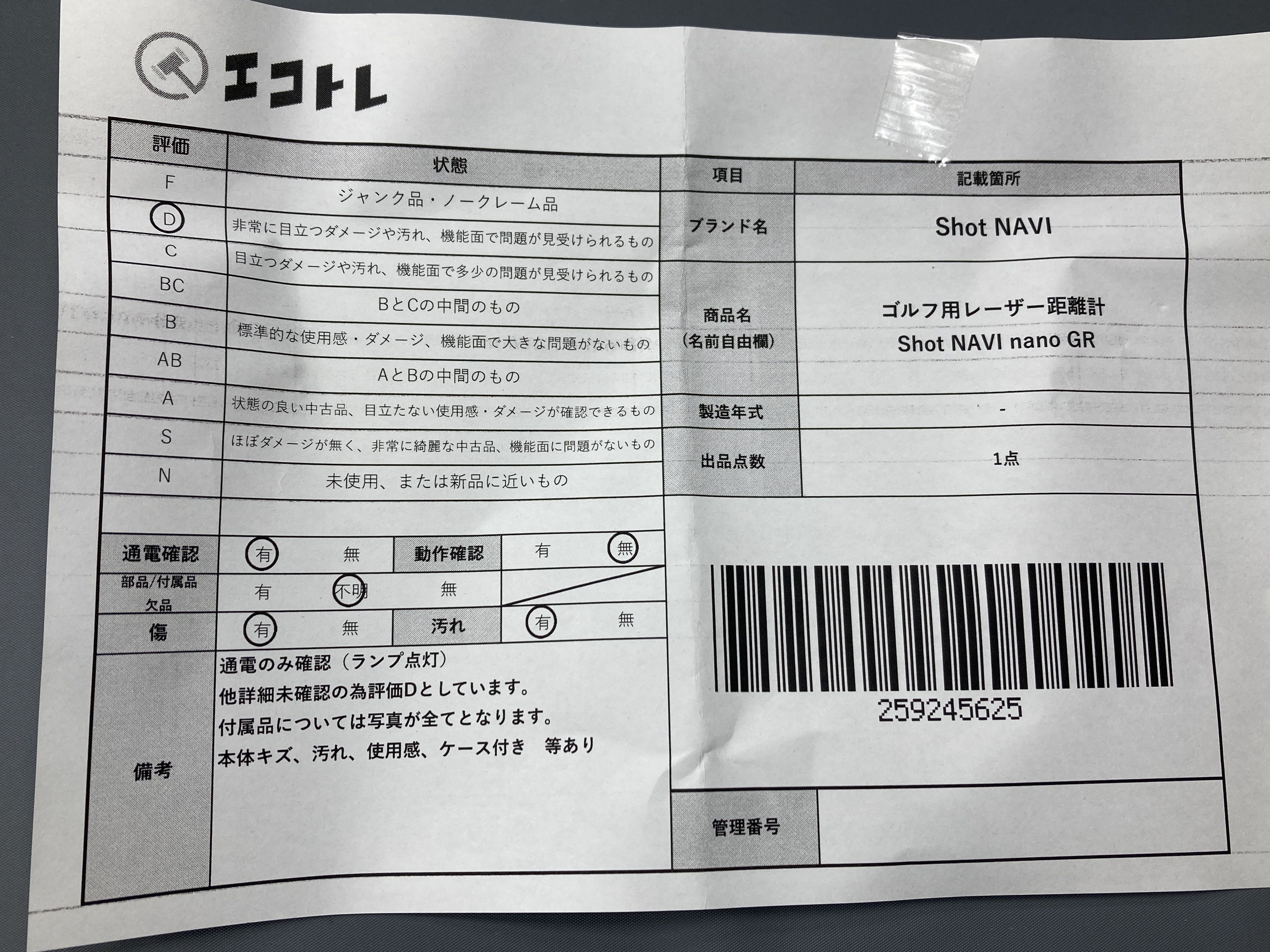 ▼SHIPPING TO JPN ONLY▼ ゴルフ用レーザー距離計 Shot NAVI nano GR","タイプライン":"","カテゴリ":"スポーツ","形状コード":"ゴルフ","付属品コード":"","シリアル・シール・型番":""