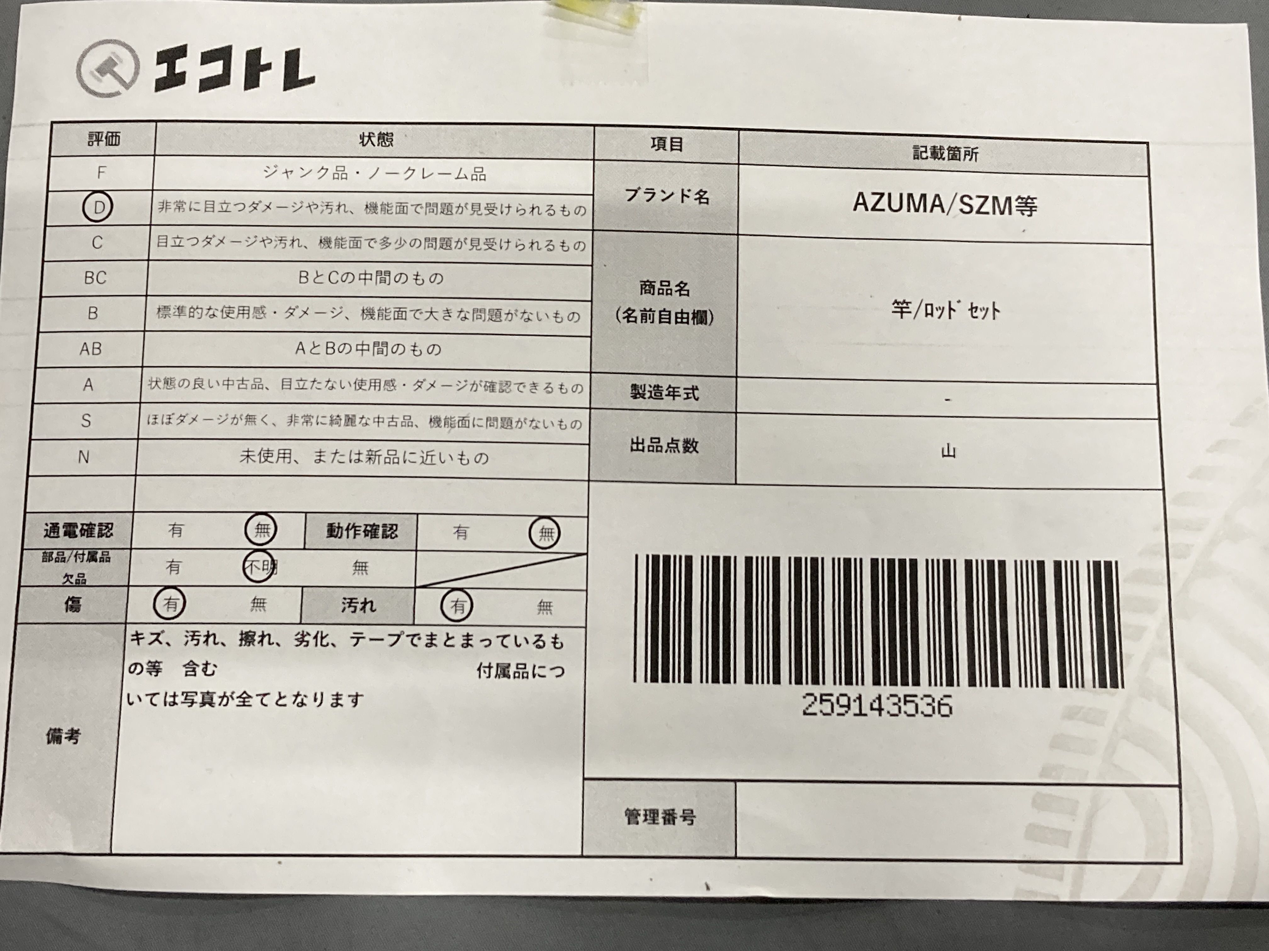 ▼SHIPPING TO JPN ONLY▼ 竿/ロット゛セット AZUMA/SZM等","タイプライン":"","カテゴリ":"スポーツ","形状コード":"フィッシング","付属品コード":"","シリアル・シール・型番":""
