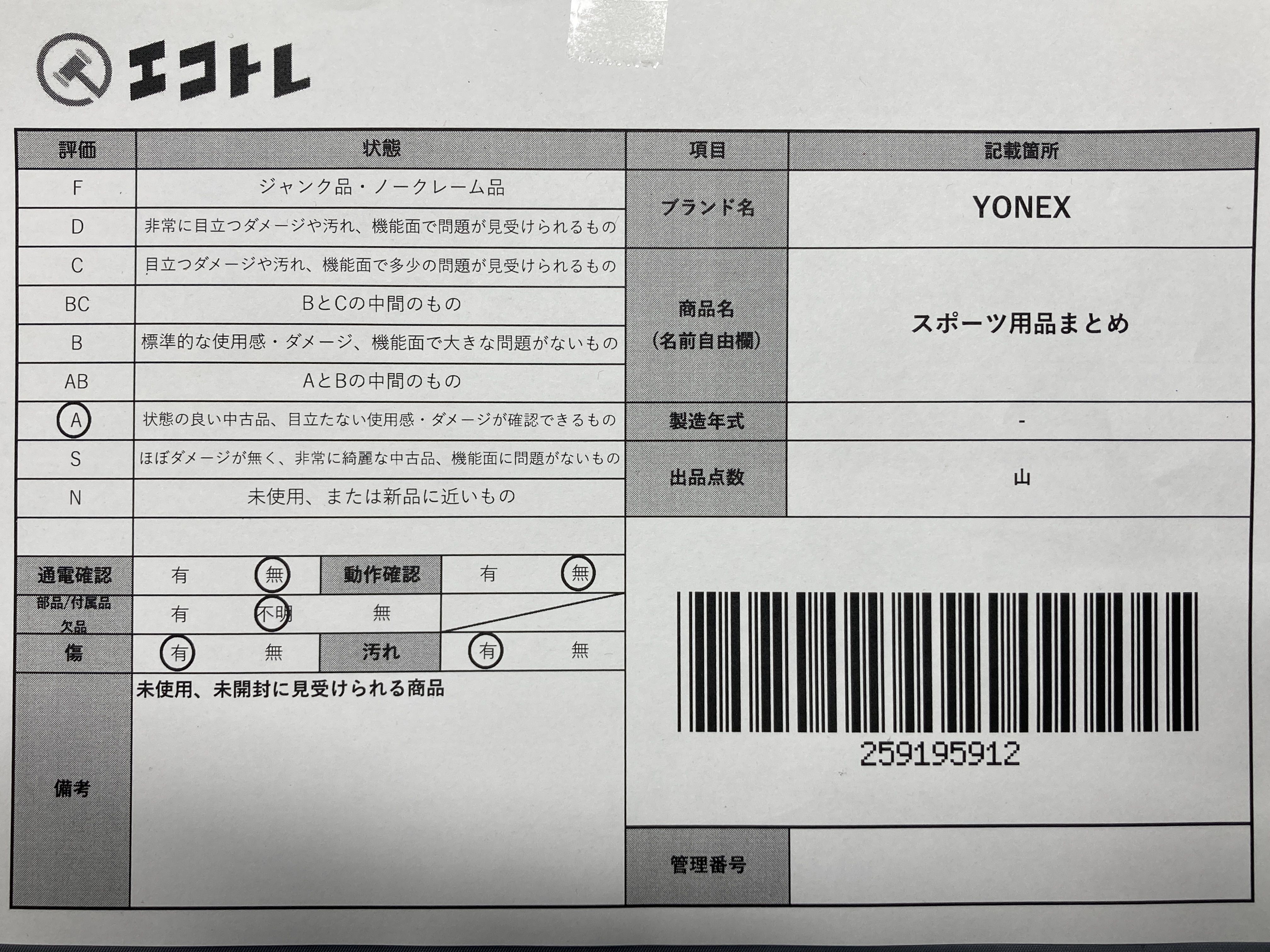 ▼SHIPPING TO JPN ONLY▼ ヨネックス ラケットケース/シュース゛ケース/リストハ゛ント゛等 未使用未開封品 まと","タイプライン":"","カテゴリ":"スポーツ","形状コード":"その他スポーツ用品","付属品コード":"","シリアル・シール・型番":""