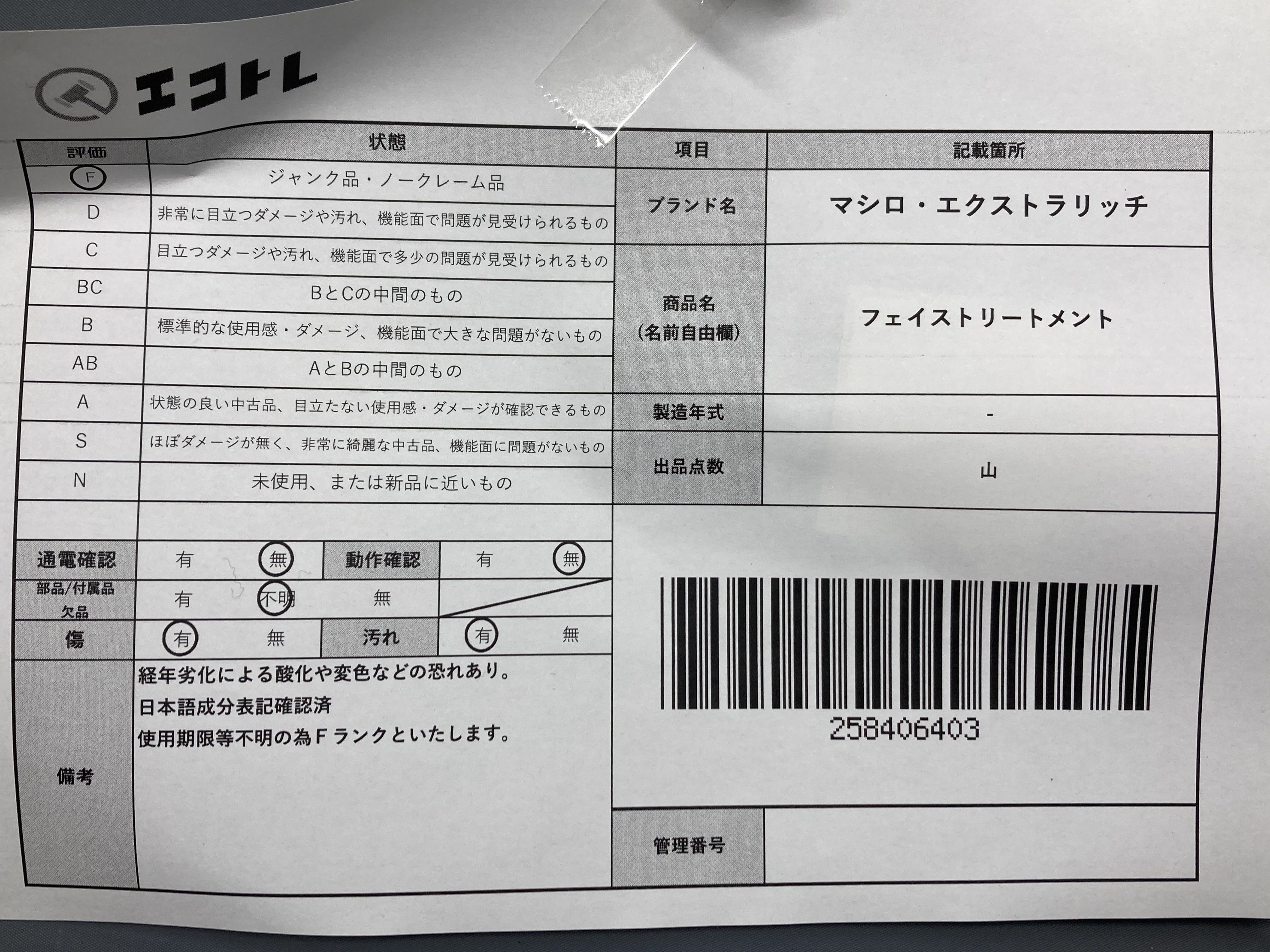▼SHIPPING TO JPN ONLY▼ マシロ・エクストラリッチ フェイストリートメント","タイプライン":"","カテゴリ":"消耗品","形状コード":"コスメ","付属品コード":"","シリアル・シール・型番":""