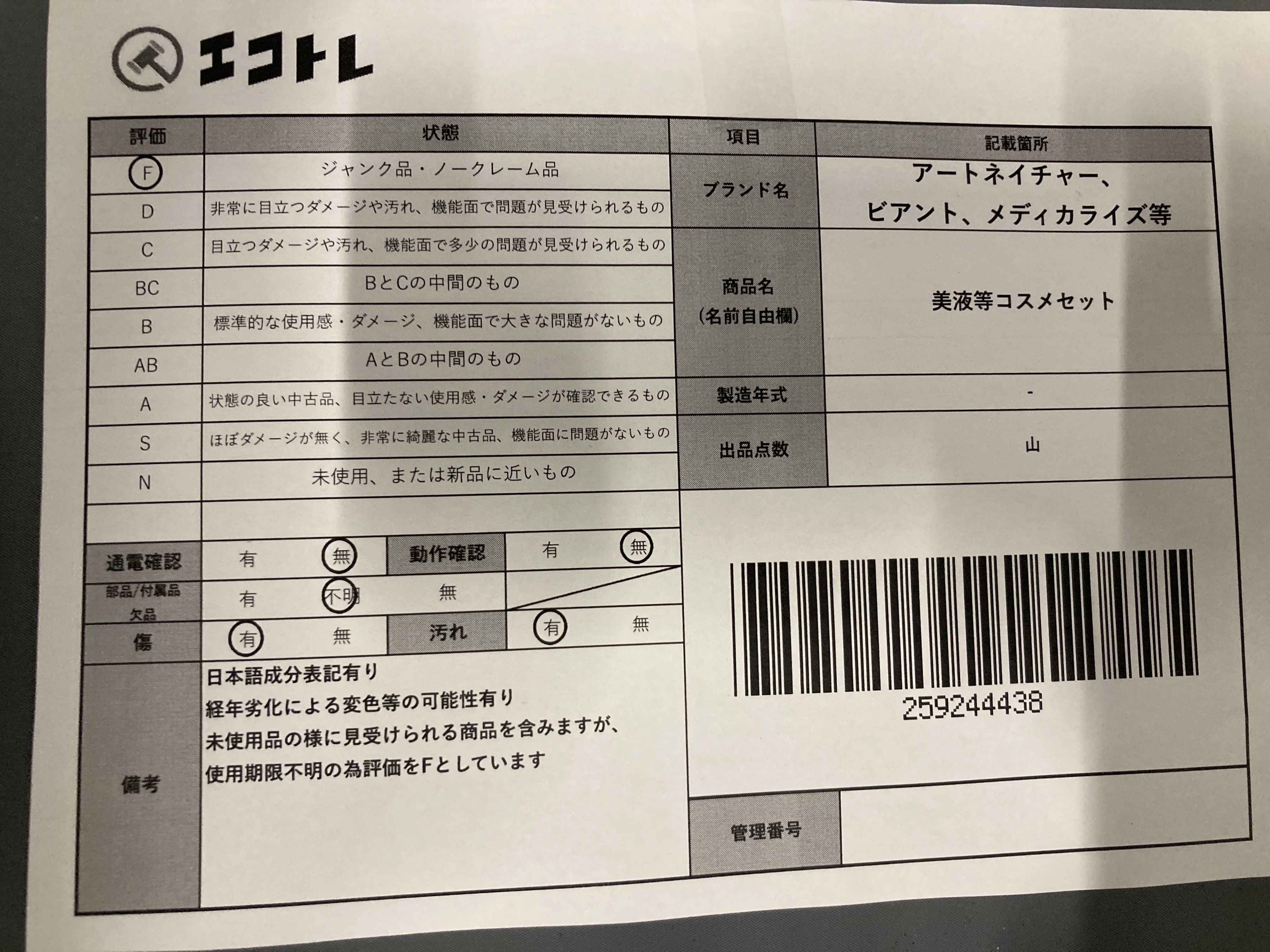 ▼SHIPPING TO JPN ONLY▼ ビアント、アートネイチャー、メディカライズ等 美容液等コスメセット","タイプライン":"","カテゴリ":"消耗品","形状コード":"コスメ","付属品コード":"","シリアル・シール・型番":""