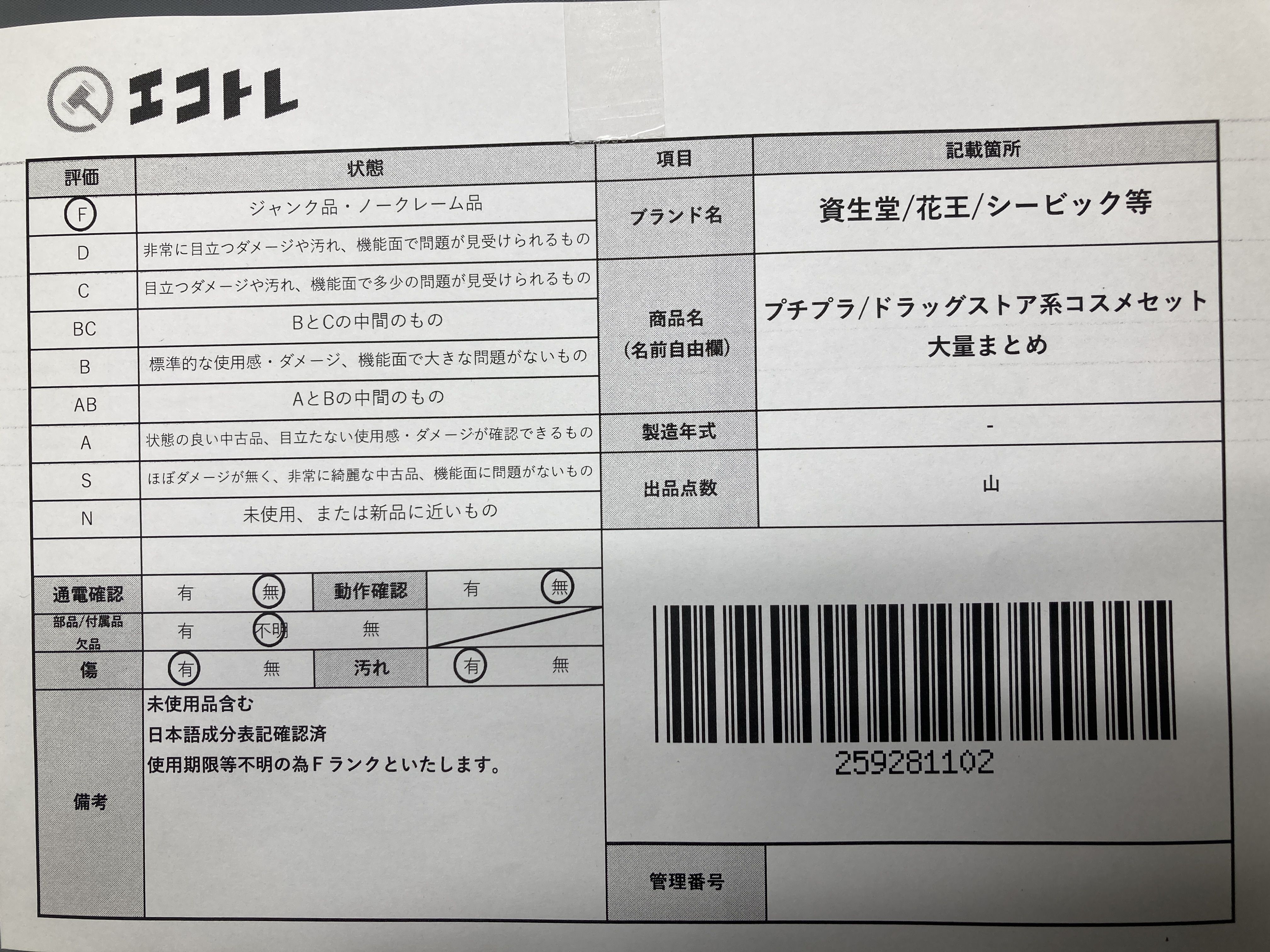 ▼SHIPPING TO JPN ONLY▼ プチプラ/ドラッグストア系コスメセット 大量まとめ 資生堂/花王/シービック等","タイプライン":"","カテゴリ":"消耗品","形状コード":"コスメ","付属品コード":"","シリアル・シール・型番":""