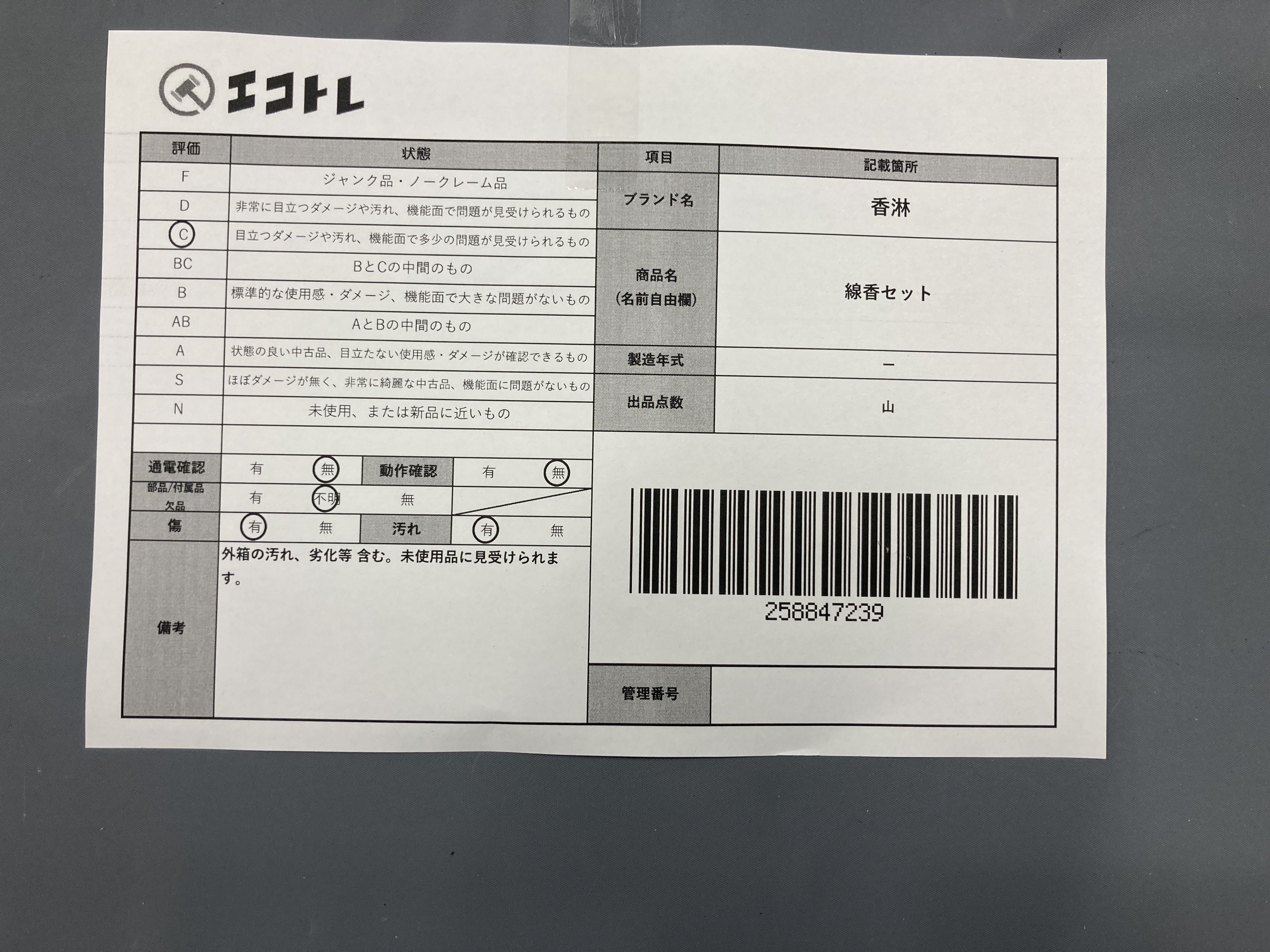 ▼SHIPPING TO JPN ONLY▼ 香淋 線香セット","タイプライン":"","カテゴリ":"消耗品","形状コード":"日用品","付属品コード":"","シリアル・シール・型番":""