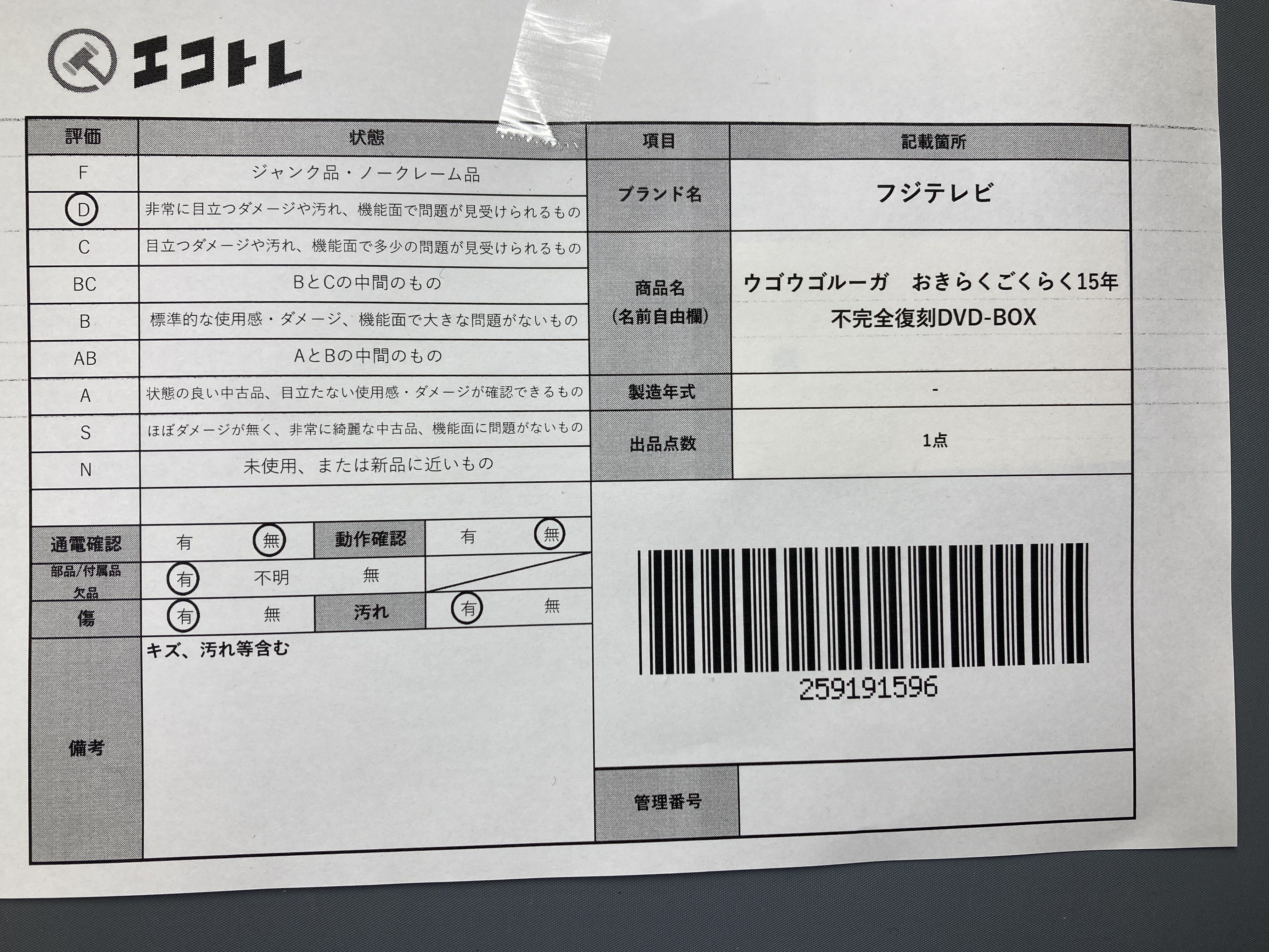 ▼SHIPPING TO JPN ONLY▼ フジテレビ ウゴウゴルーガ おきらくごくらく15年 不完全復刻DVD-BOX","タイプライン":"","カテゴリ":"メディア","形状コード":"DVD","付属品コード":"","シリアル・シール・型番":""