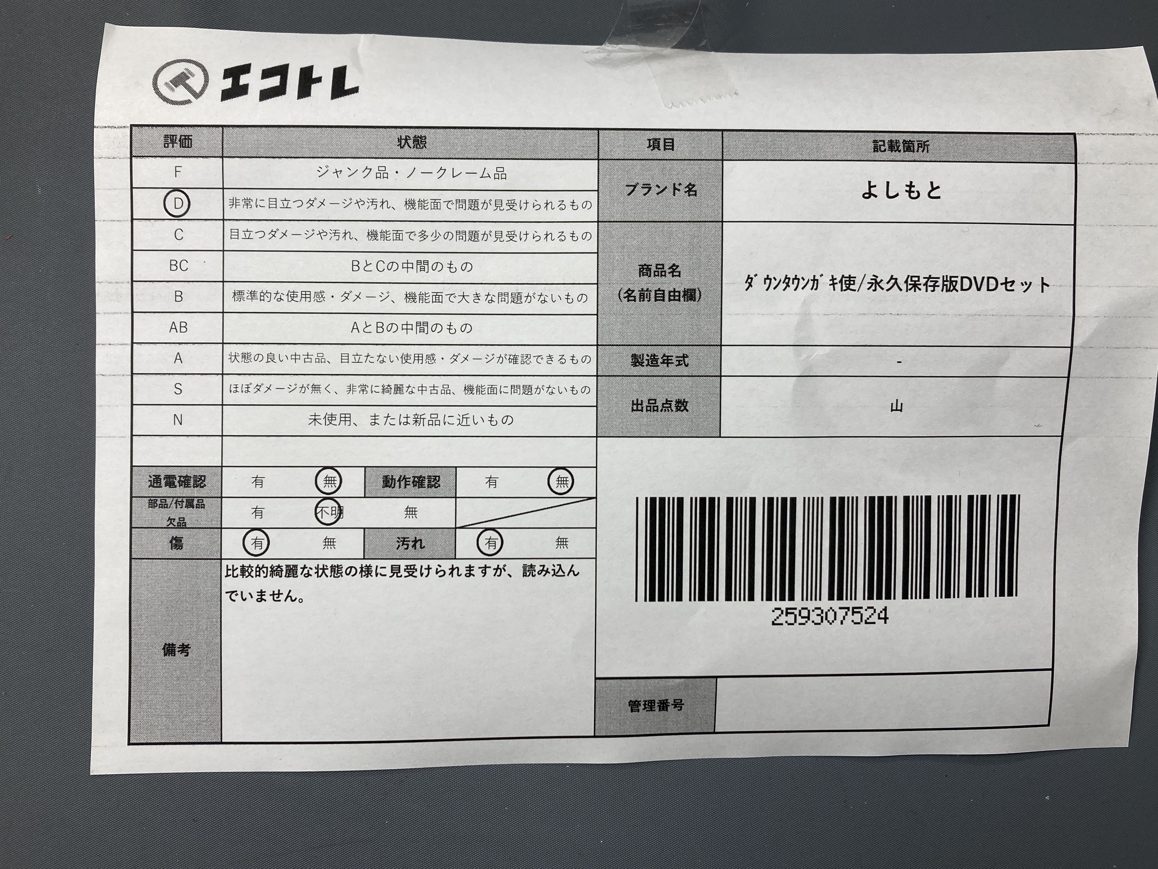 ▼SHIPPING TO JPN ONLY▼ よしもとタ゛ウンタウンカ゛キ使/永久保存版DVDセット","タイプライン":"","カテゴリ":"メディア","形状コード":"DVD","付属品コード":"","シリアル・シール・型番":""