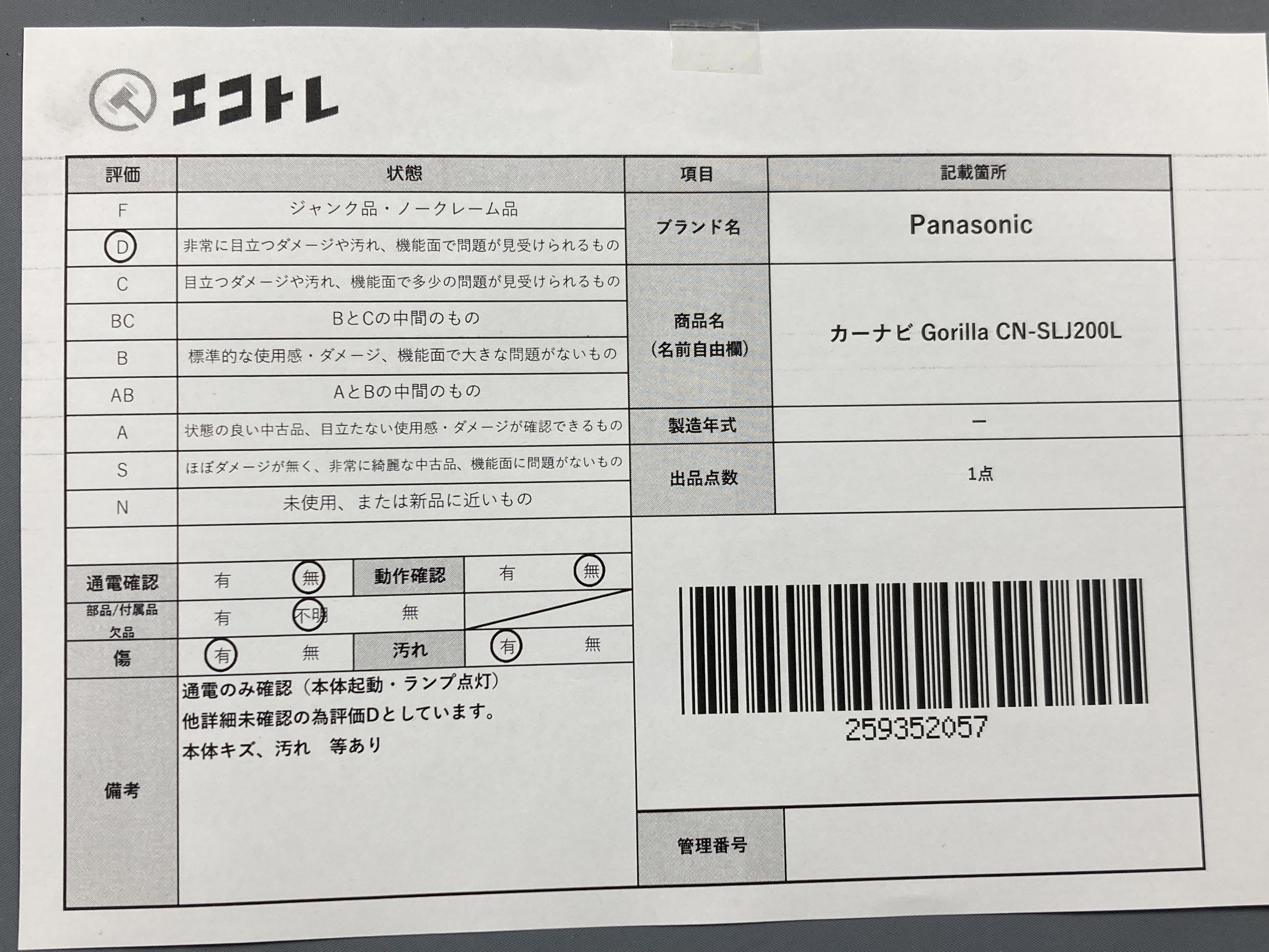 ▼SHIPPING TO JPN ONLY▼ Panasonic カーナビ Gorilla CN-SLJ200L","タイプライン":"","カテゴリ":"カー・バイク用品","形状コード":"カーナビ","付属品コード":"","シリアル・シール・型番":""