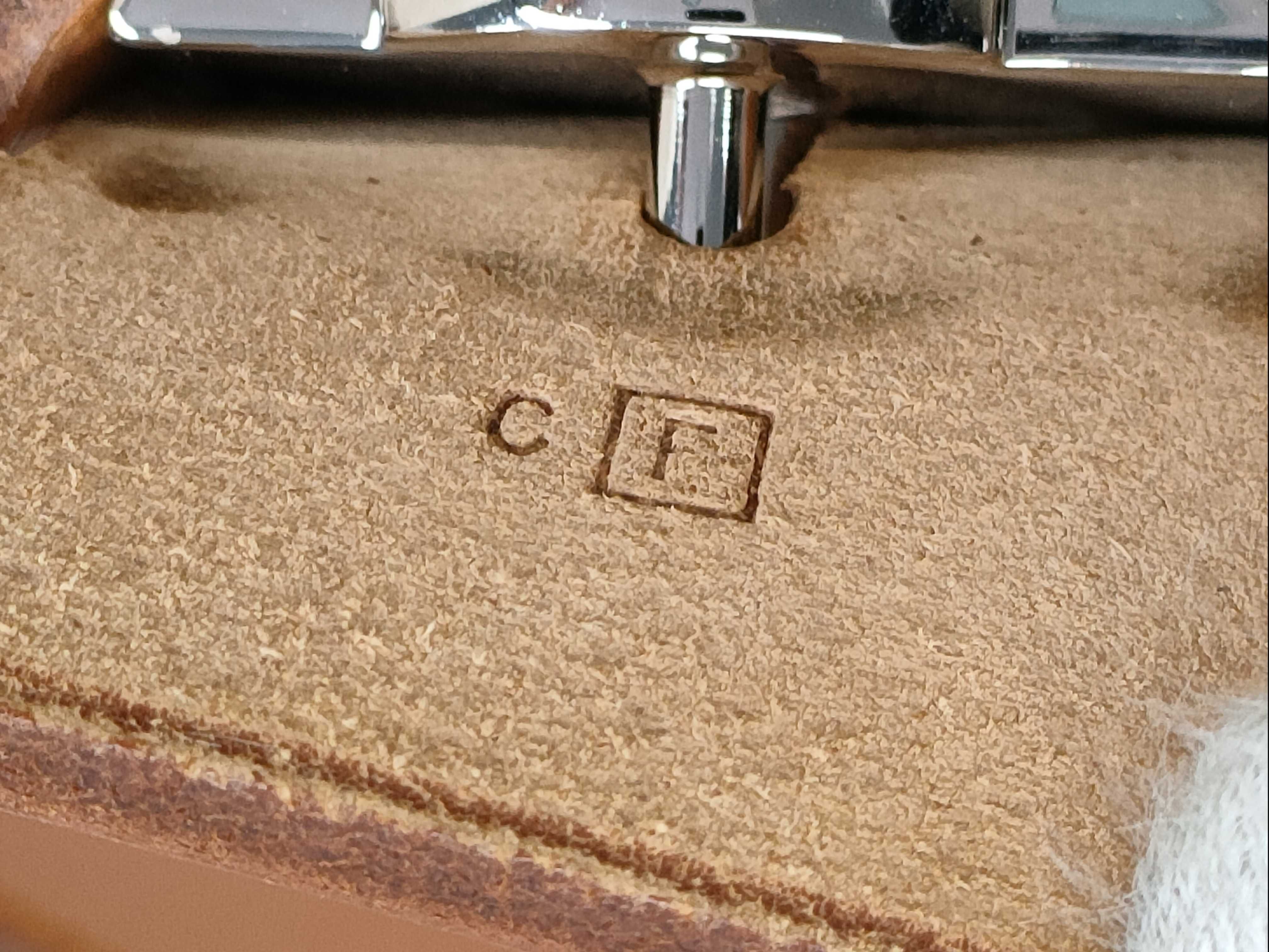 全体ヤケシミ(中) 角擦れ汚れ(中) 金具擦れ傷(中) 持ち手・ショルダーヒビシミ(中) フラップ傷シミ(中) ベルトヒビ(中) 内側擦れ汚れ(小) 鍵1本 【刻印有