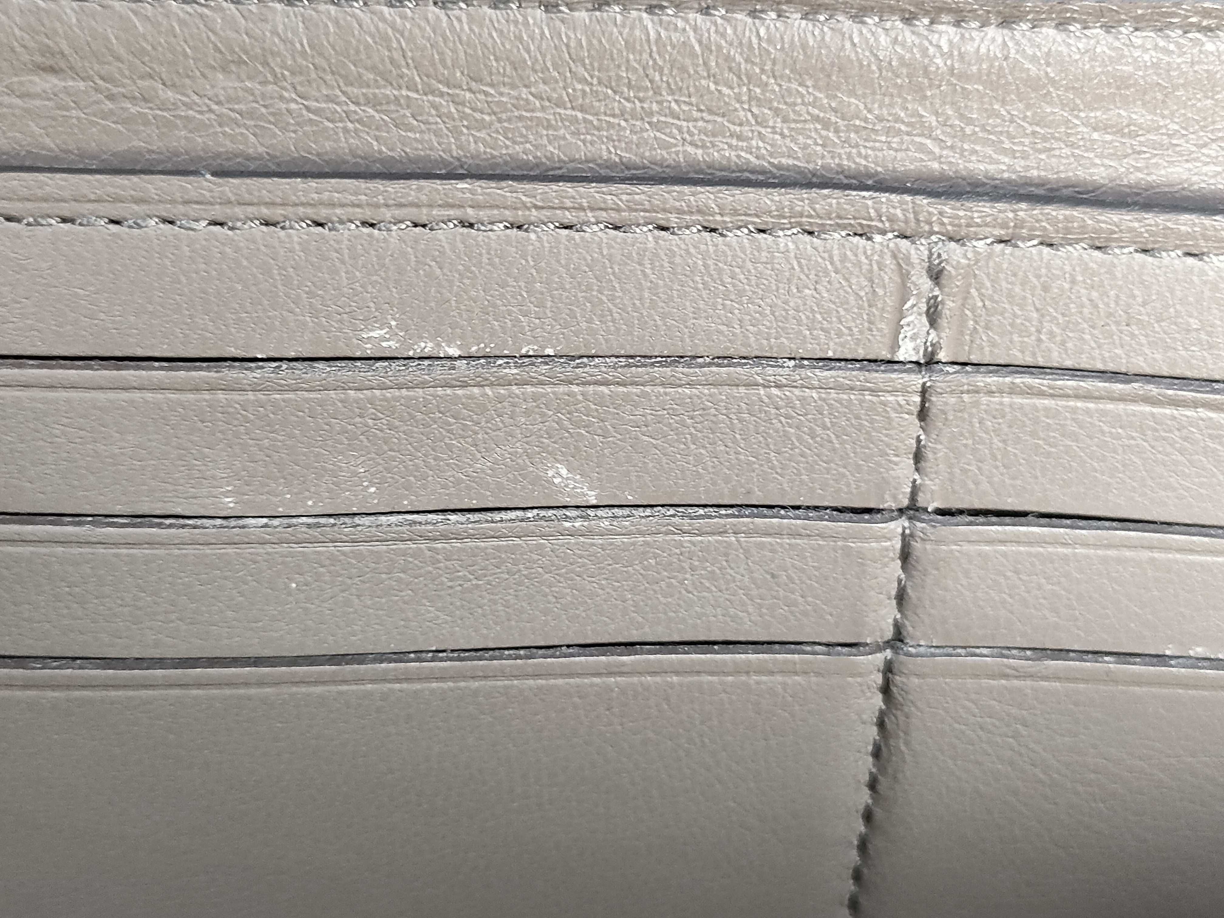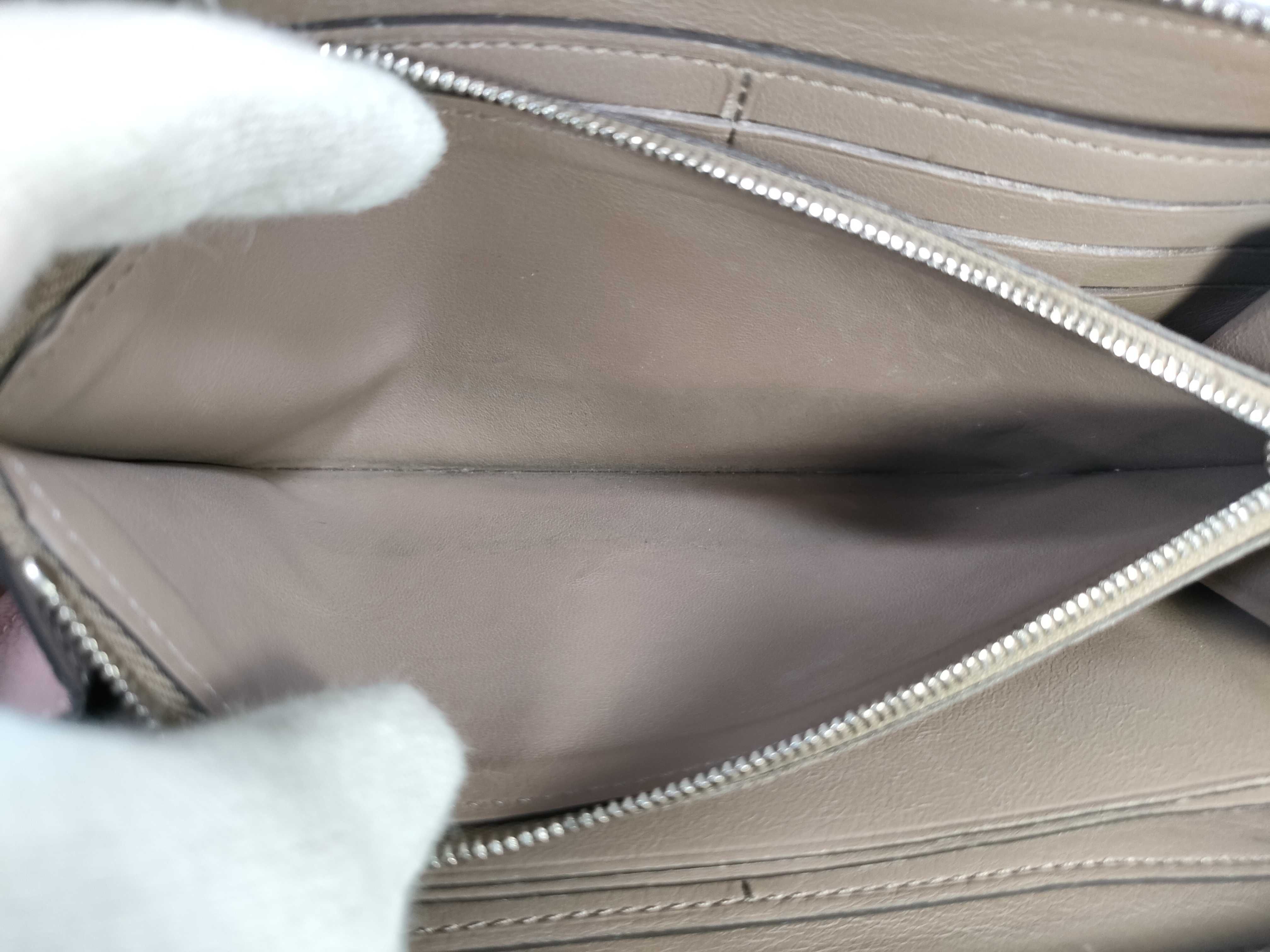 全体擦れ汚れ(中) コバ擦れヒビ割れ(中) 角縁擦れ剥げ汚れ(小) ファスナーレーン汚れ(中) プル革剥げ(小) 金具擦れ傷(中) 小銭入れ中生地擦れ黒ずみ汚れ(中) 内側擦れ剥げ汚れ(小) 【シリアル