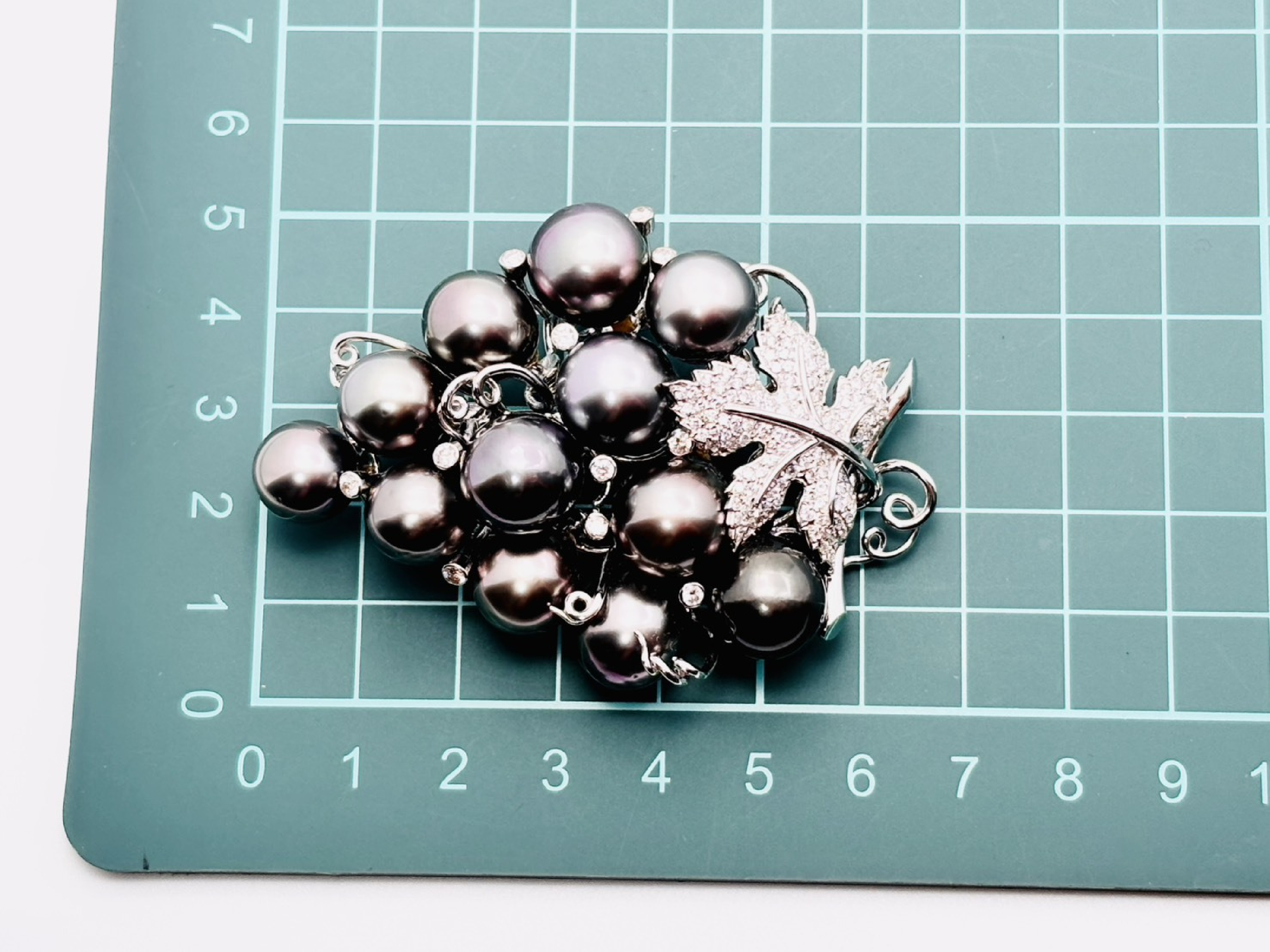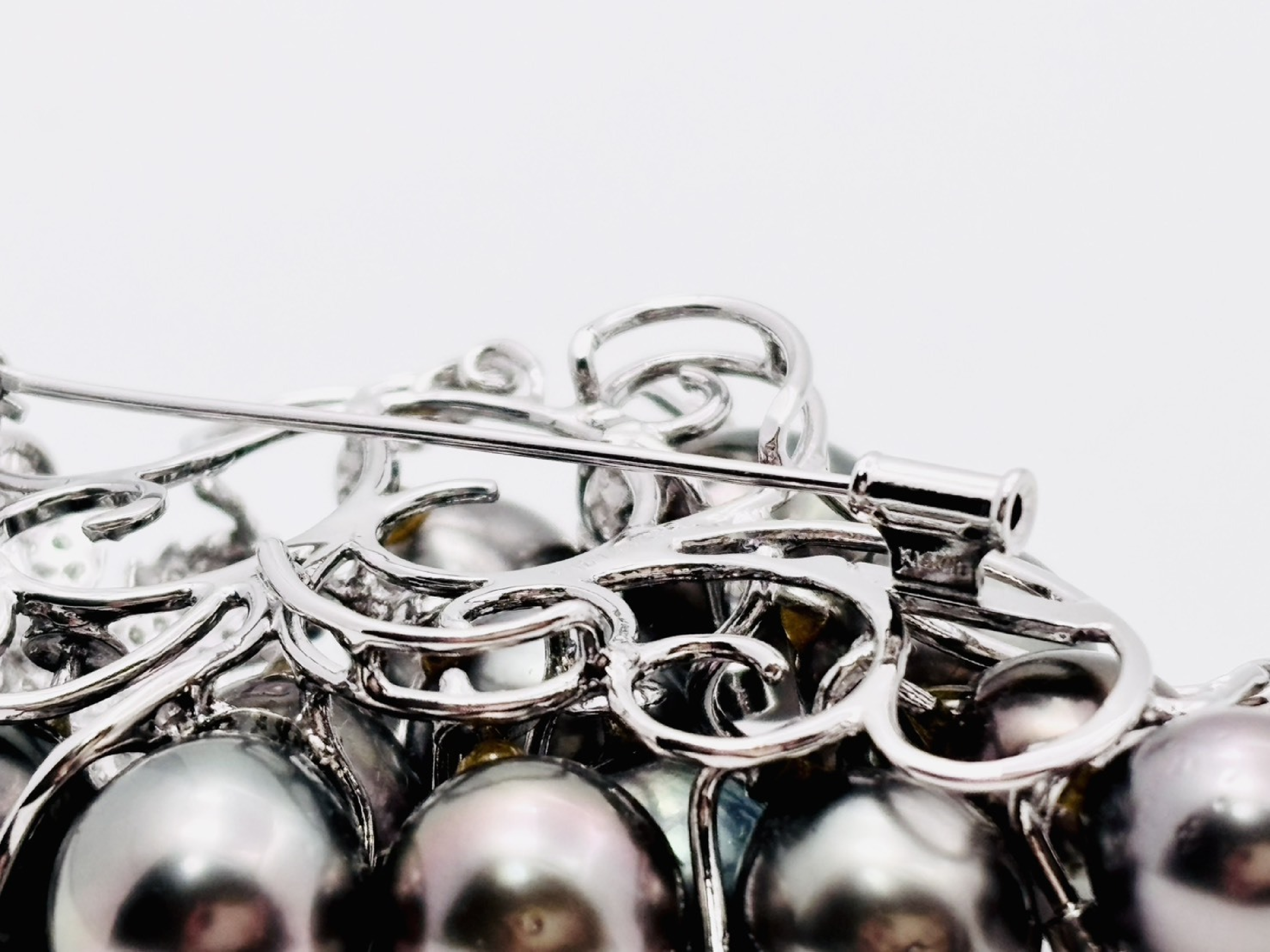 (10981_0721)葡萄モチーフ パール直径 約10.1-11.7mm D1.35ct K18WG 44.0g ブローチ(貴金属)