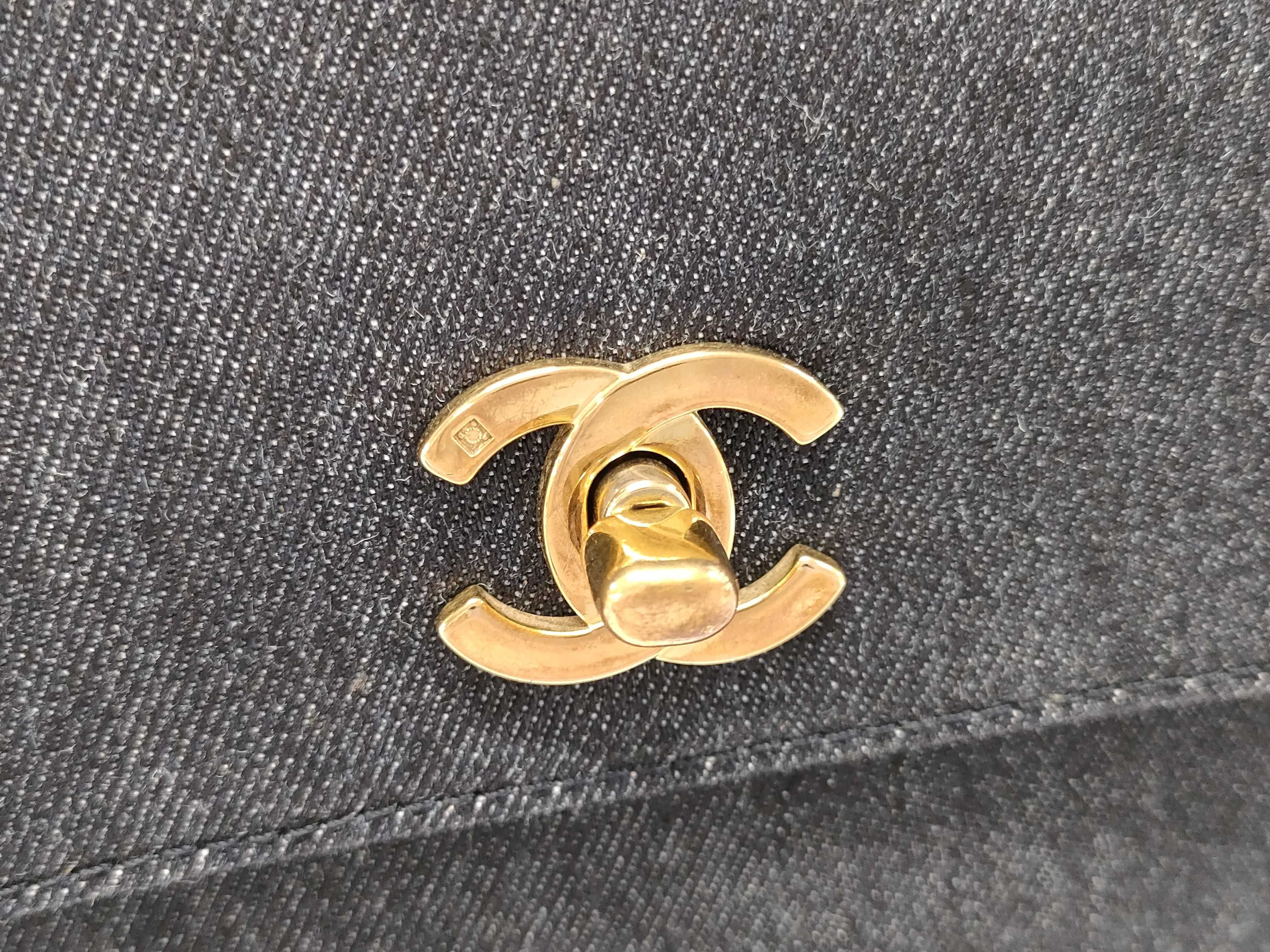 (C_0271)CHANEL デニム ハンドネイビーゴールド金具 ハンドバッグ