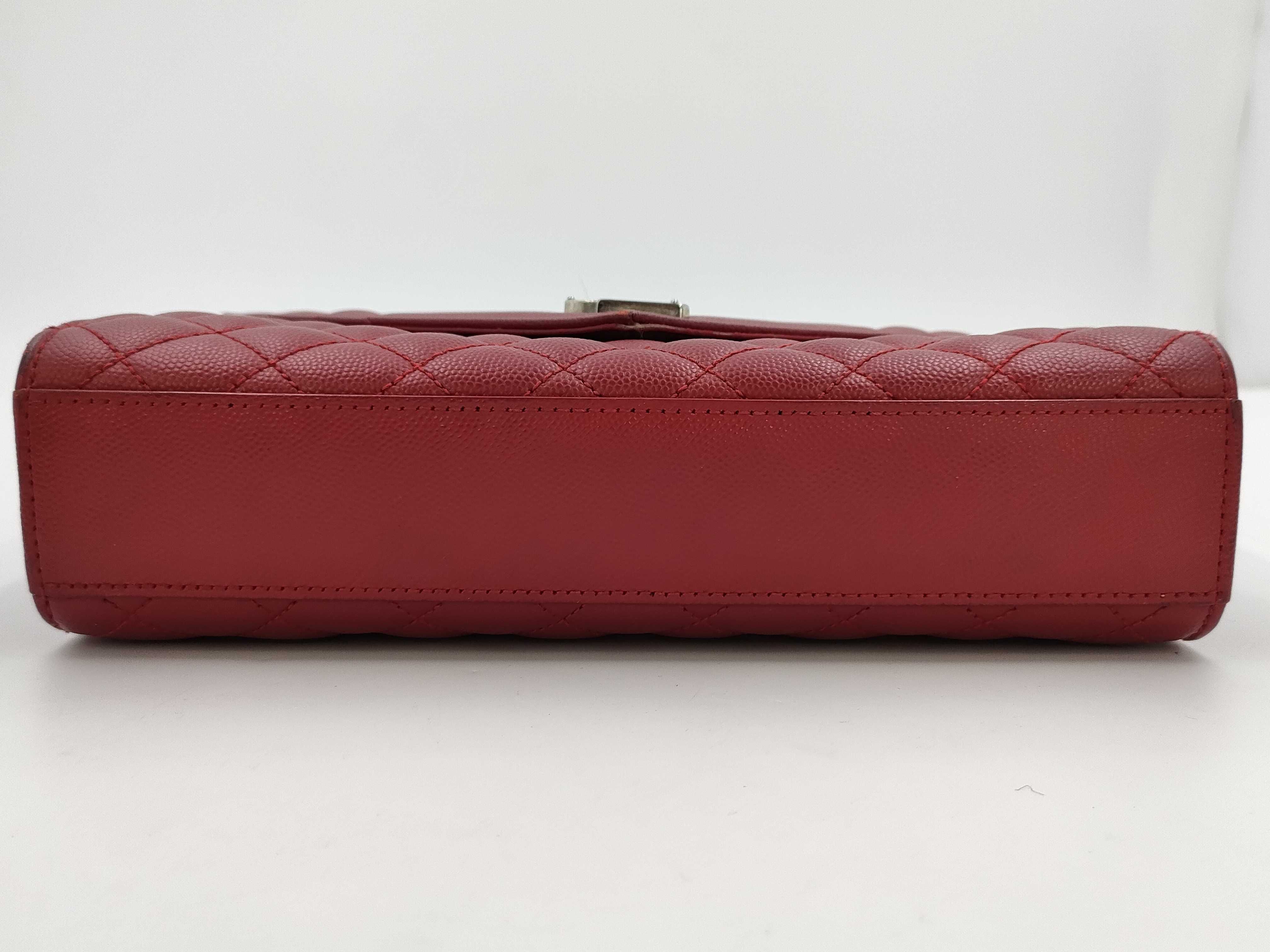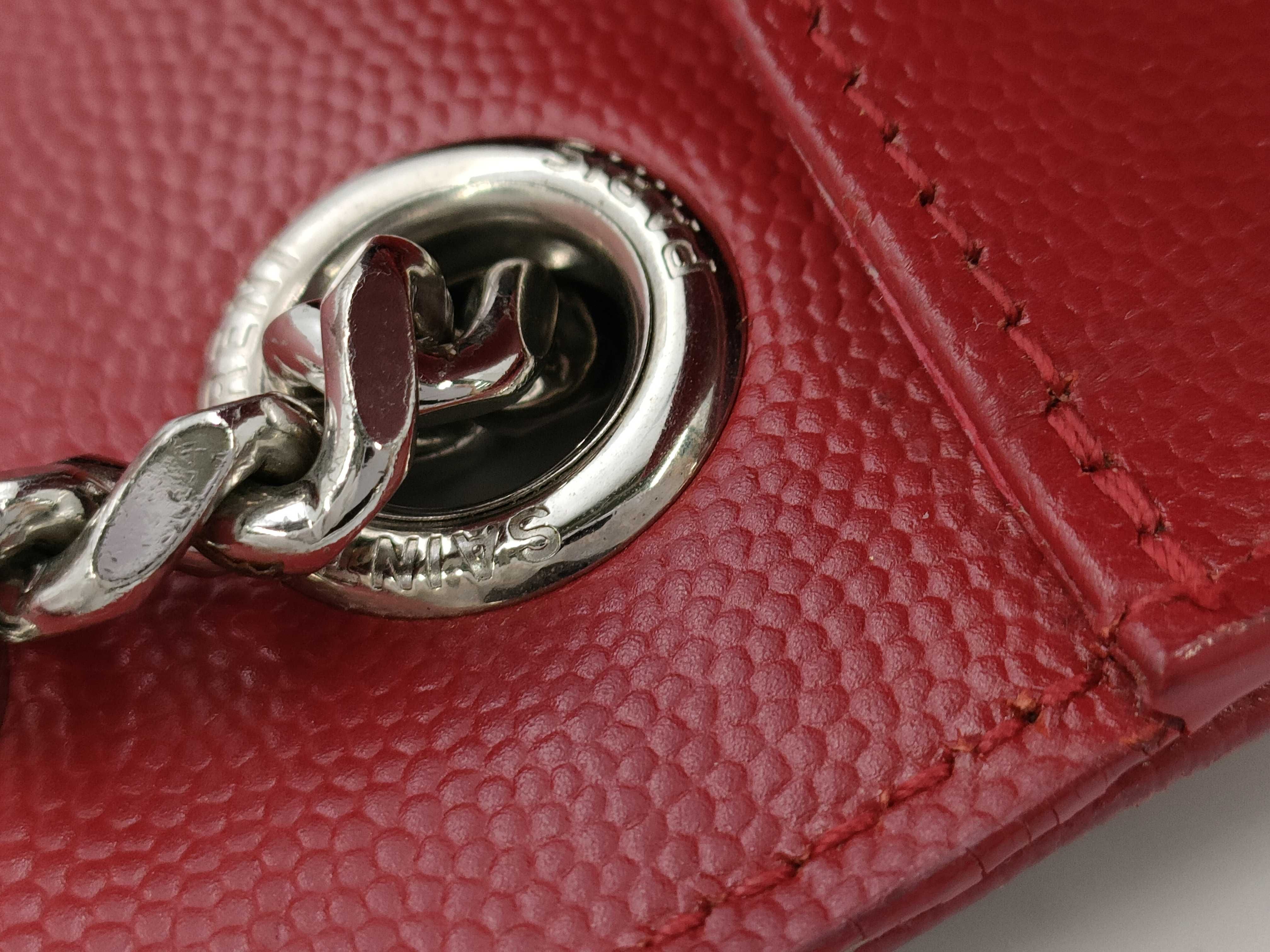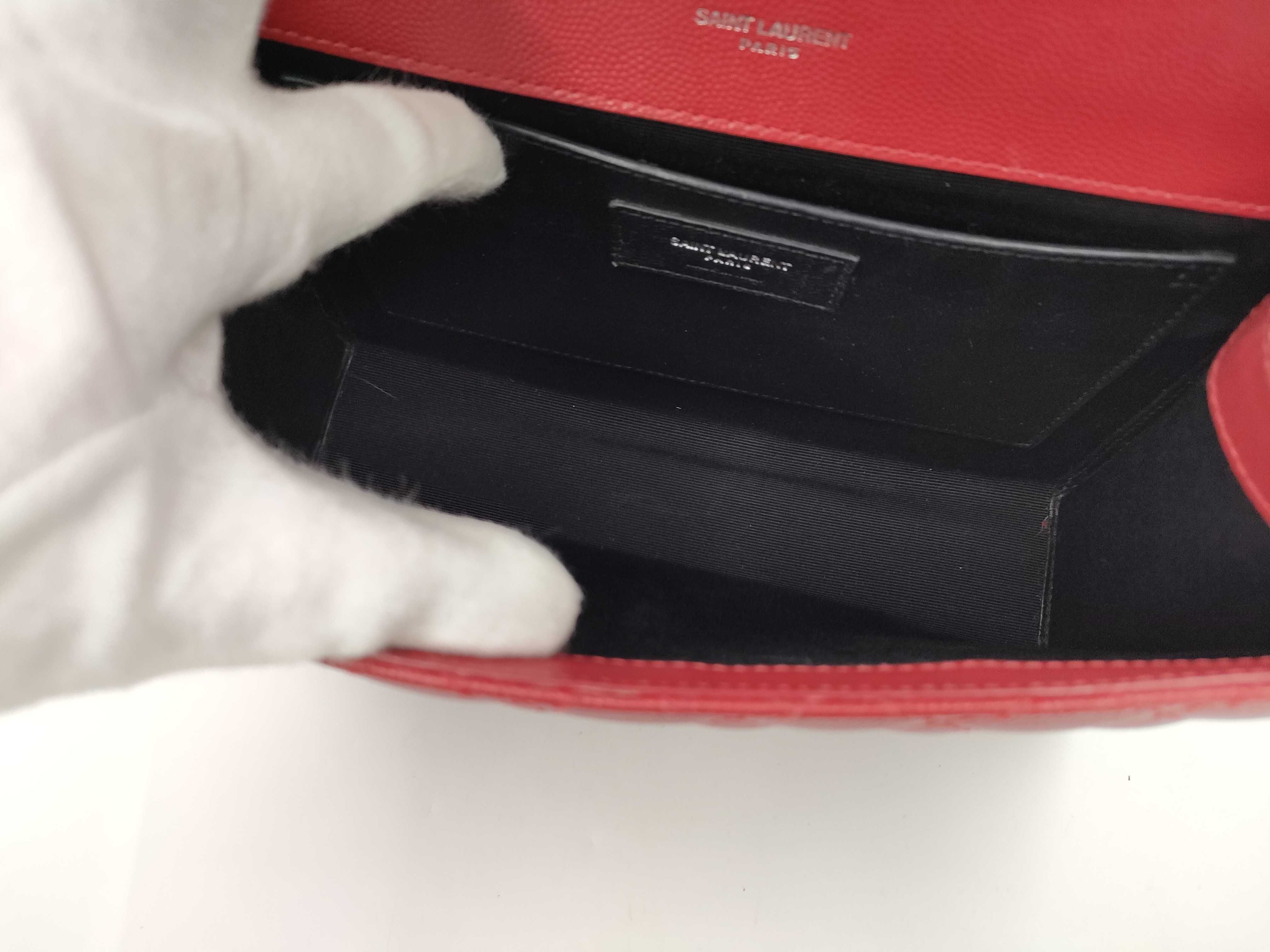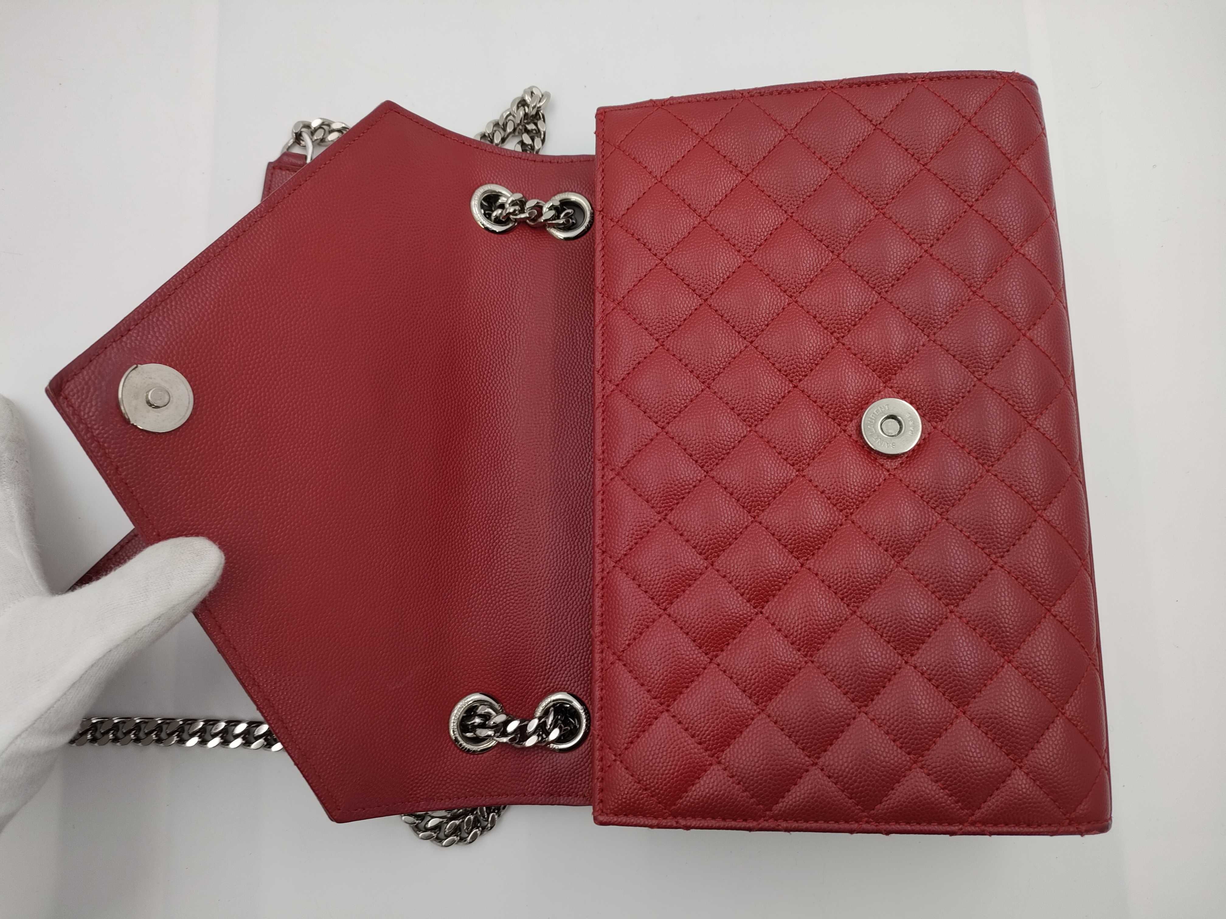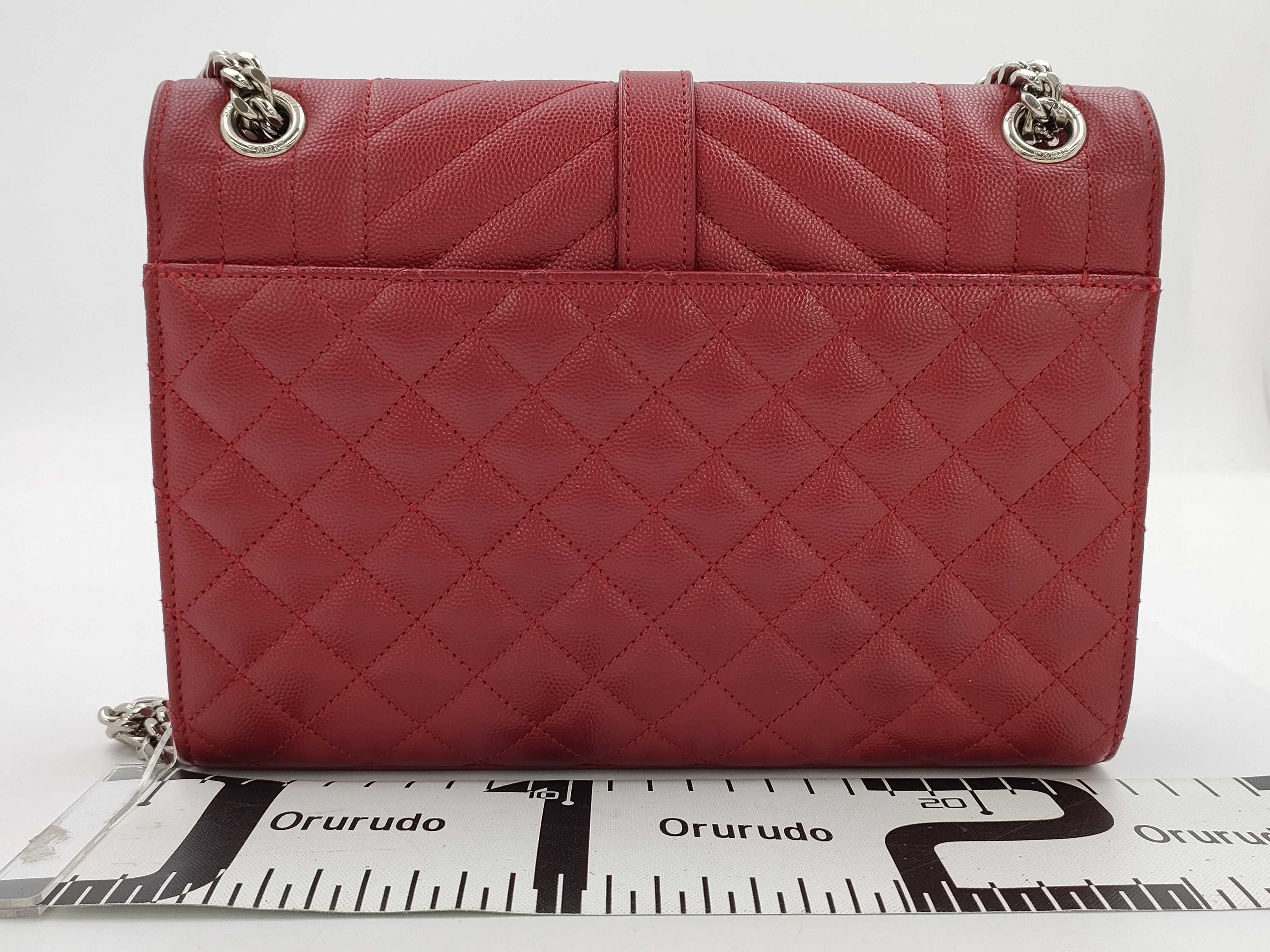 (G_1057)SAINT LAURENT SAINT LAURENT エンベロープ チェーンショルダーバッグ 487206 レッド シルバー金具 レザー 718 ショルダーバッグ