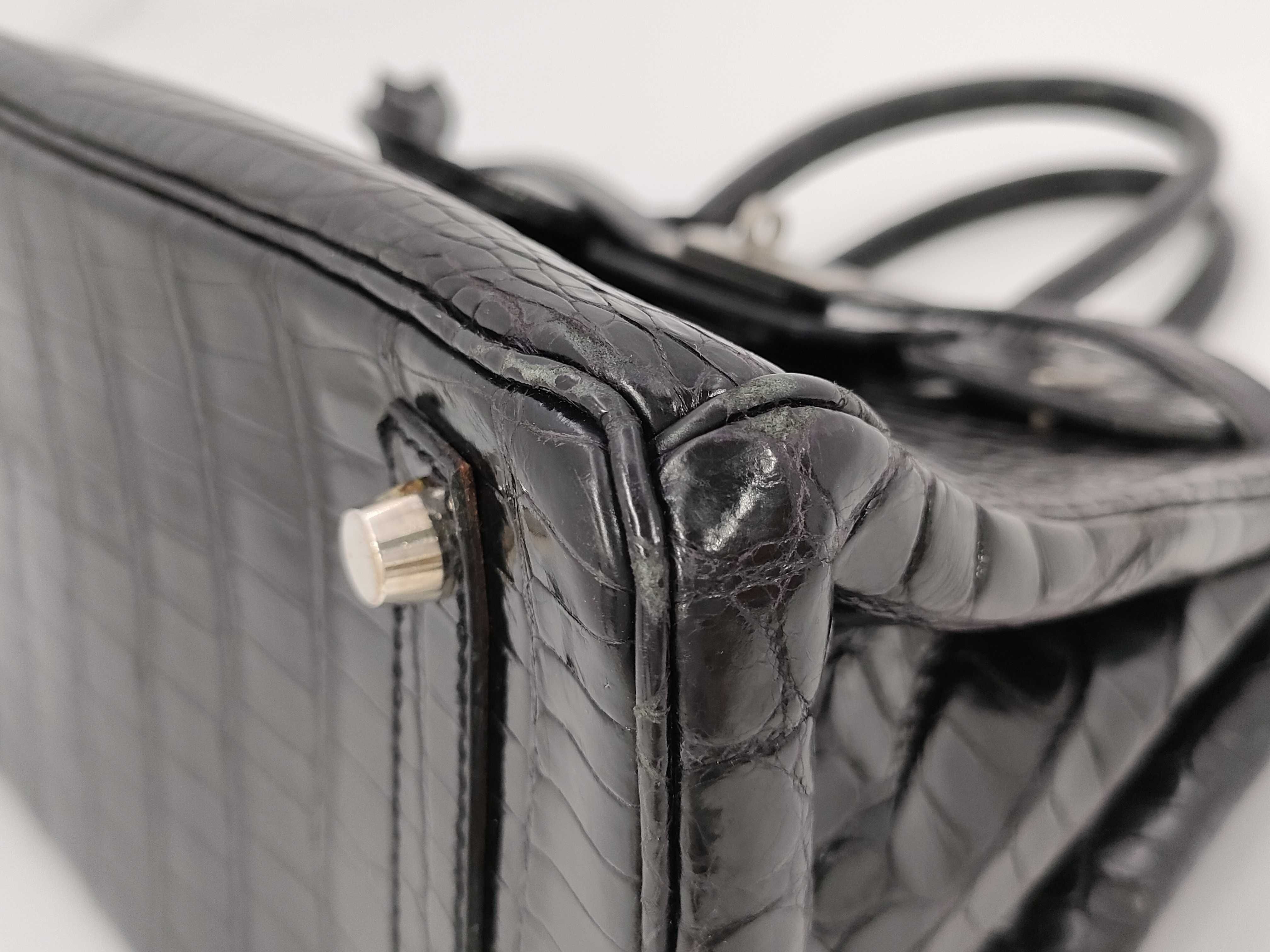 全体ヤケ擦れ(中) 傷汚れ(小) 角擦れ(中) 金具くすみ(中) 傷(小) 持ち手擦れ(小) コバ割れ(小) 側面縁剥げ有り 内側擦れ(中) 押し跡汚れ(小) 【刻印