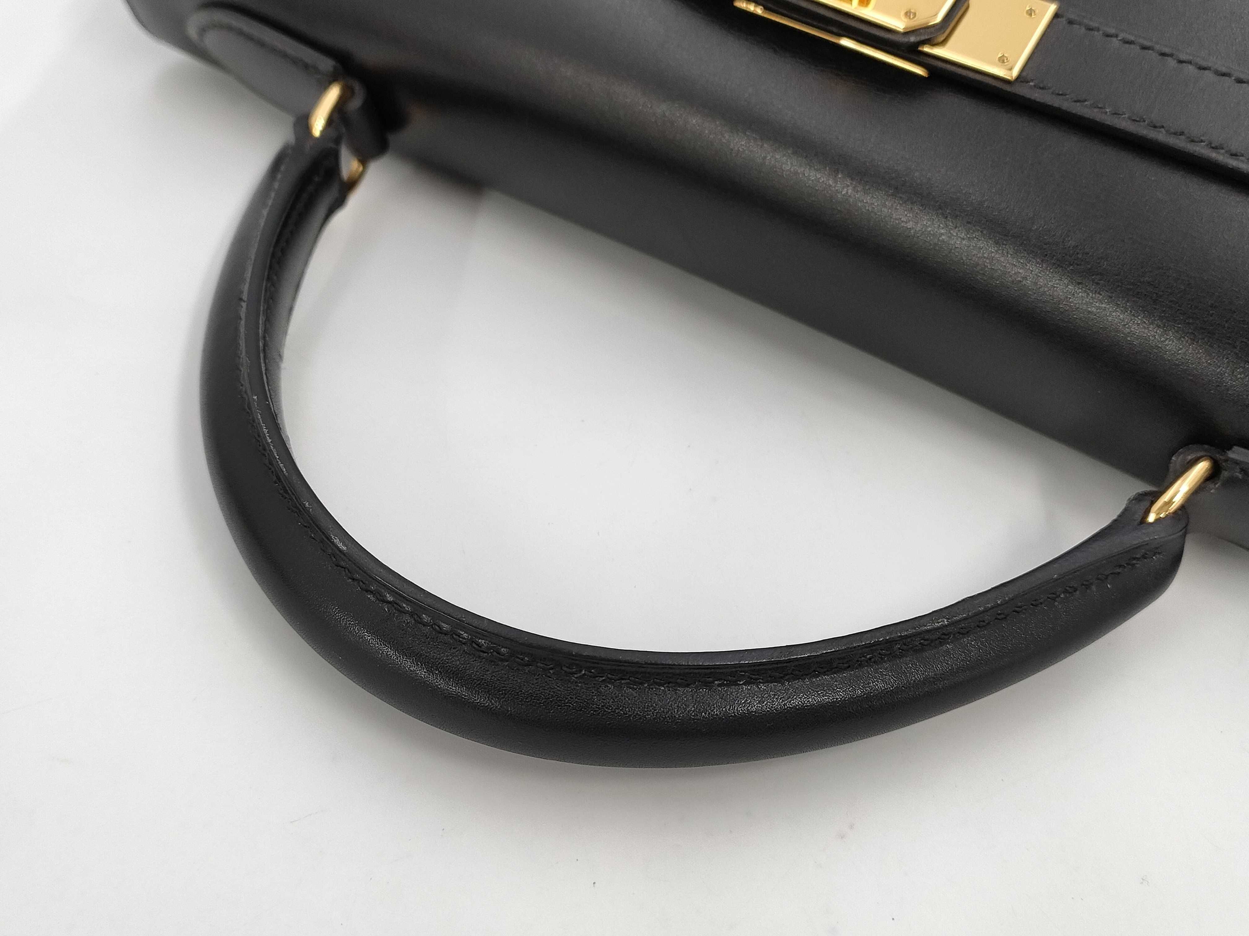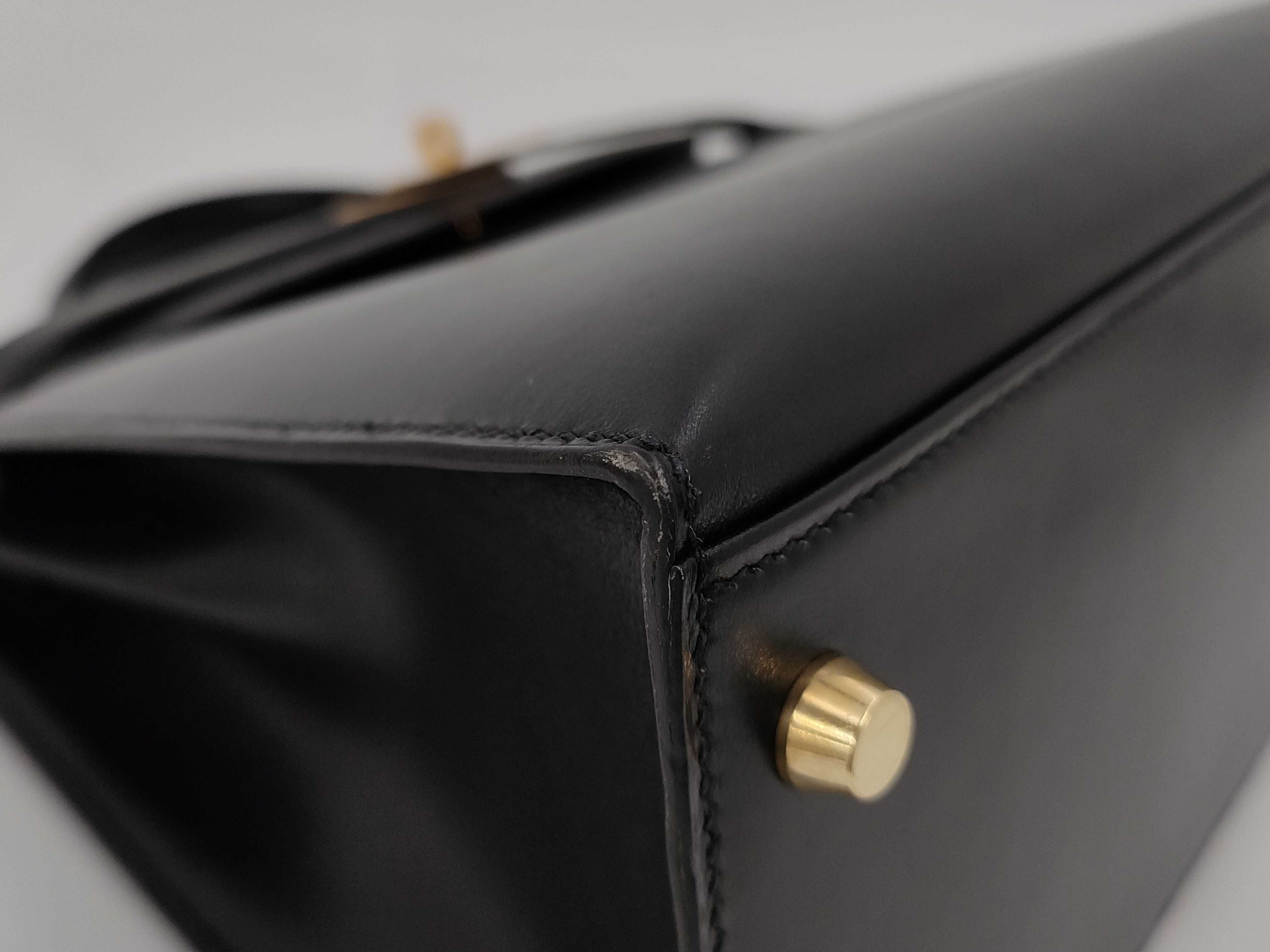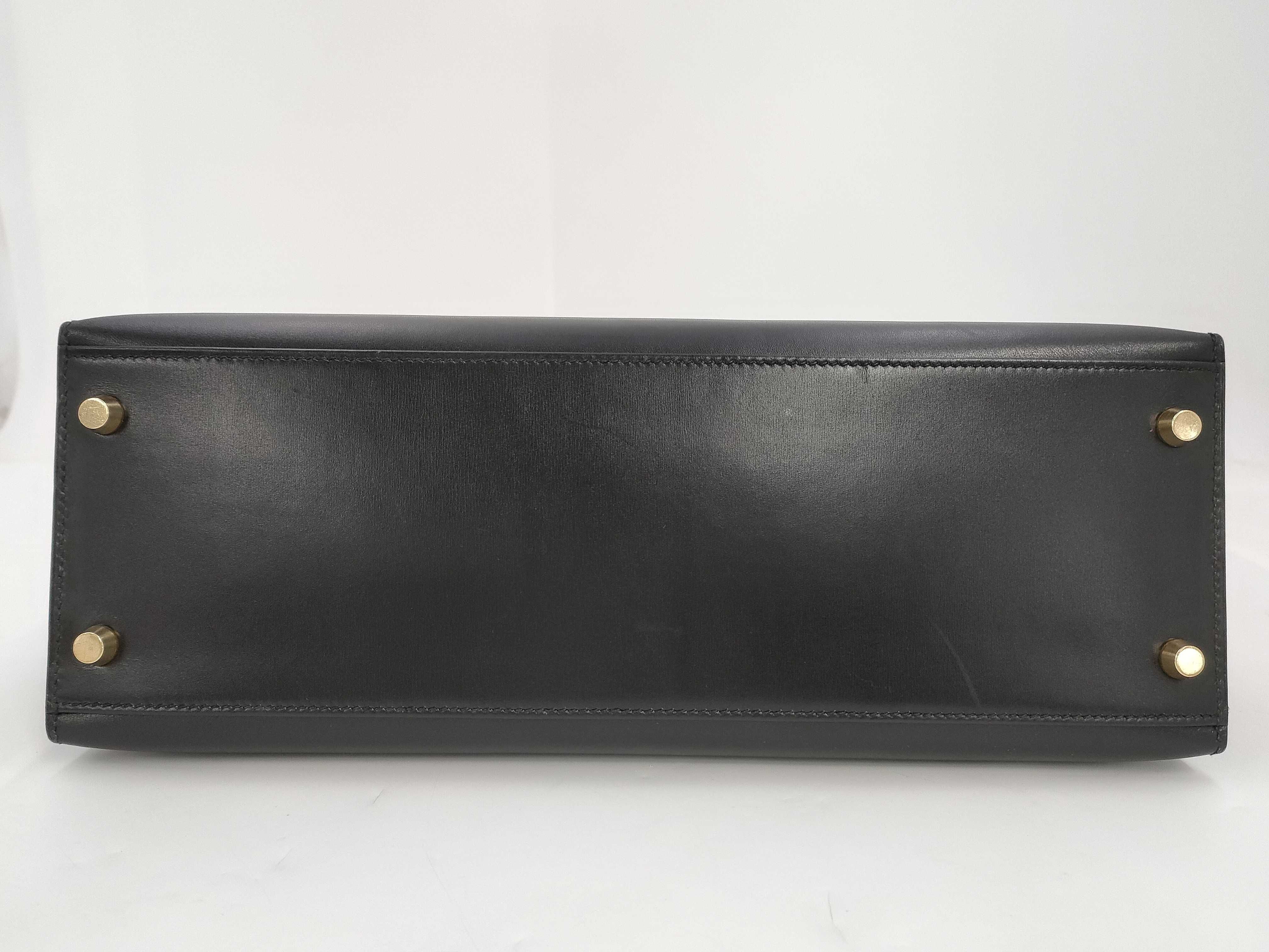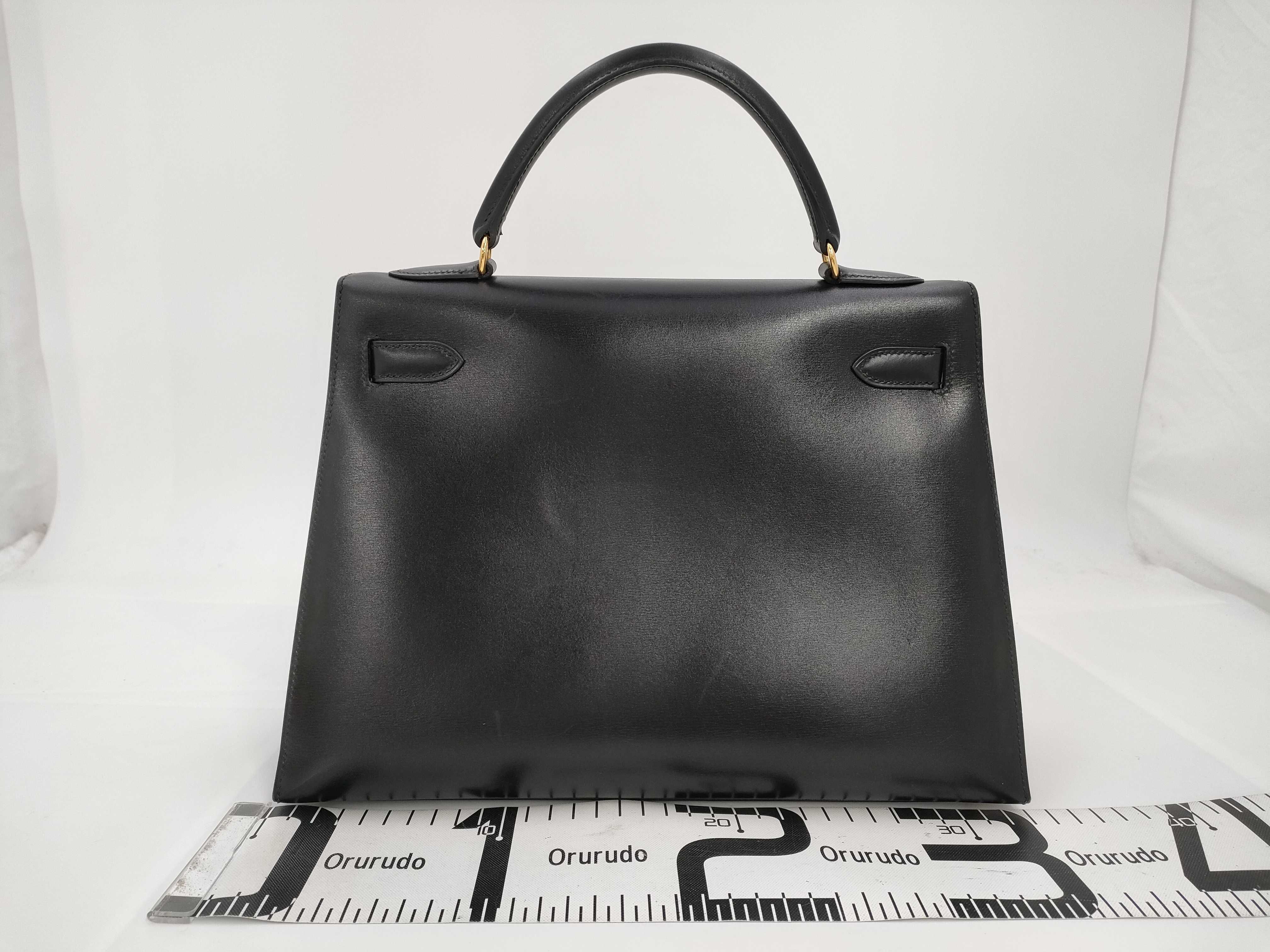(A_0152)HERMES エルメス ケリー 32 セリエ ボックスカーフ ブラック ゴールド金具 〇A ショルダーバッグ