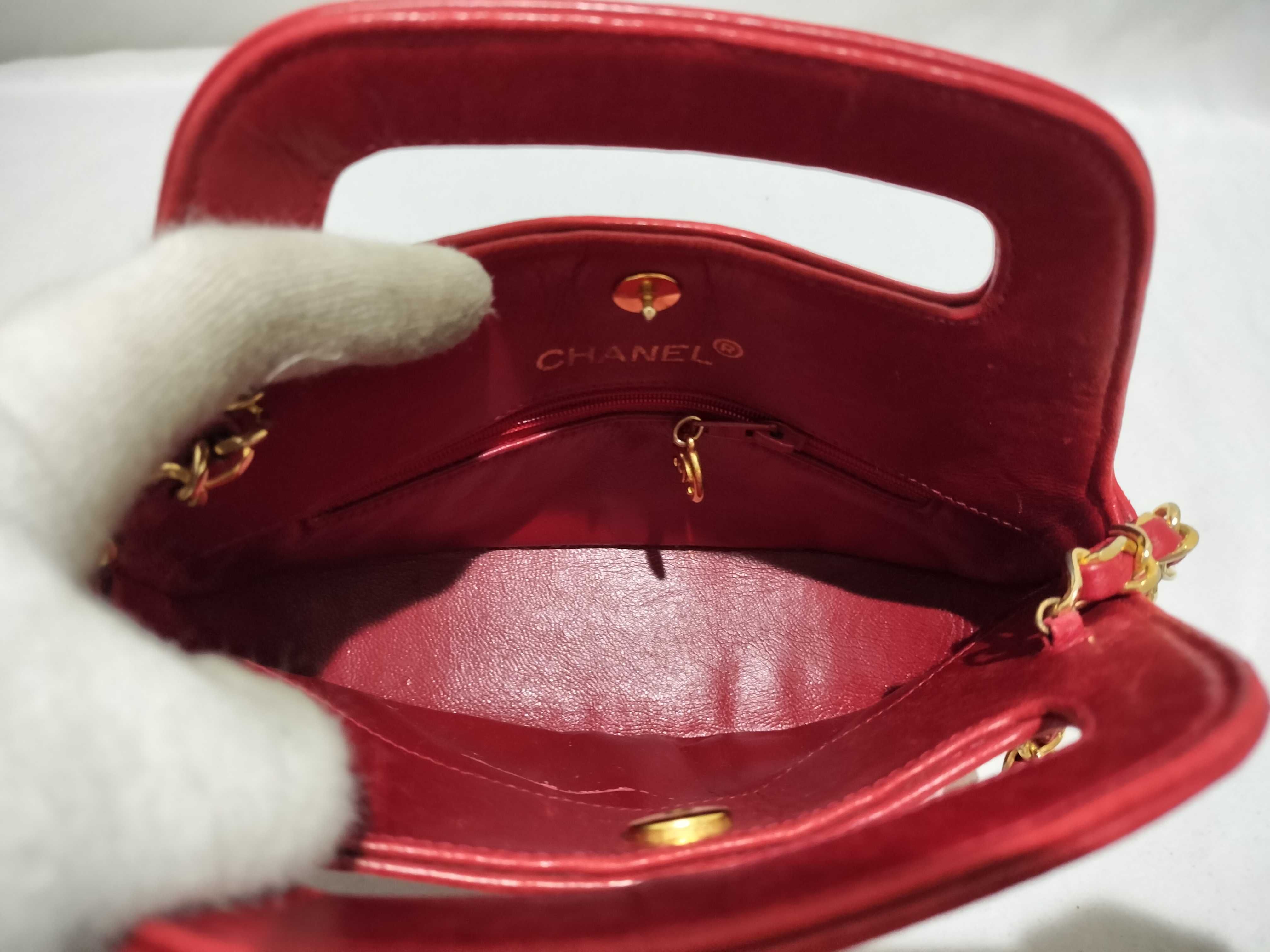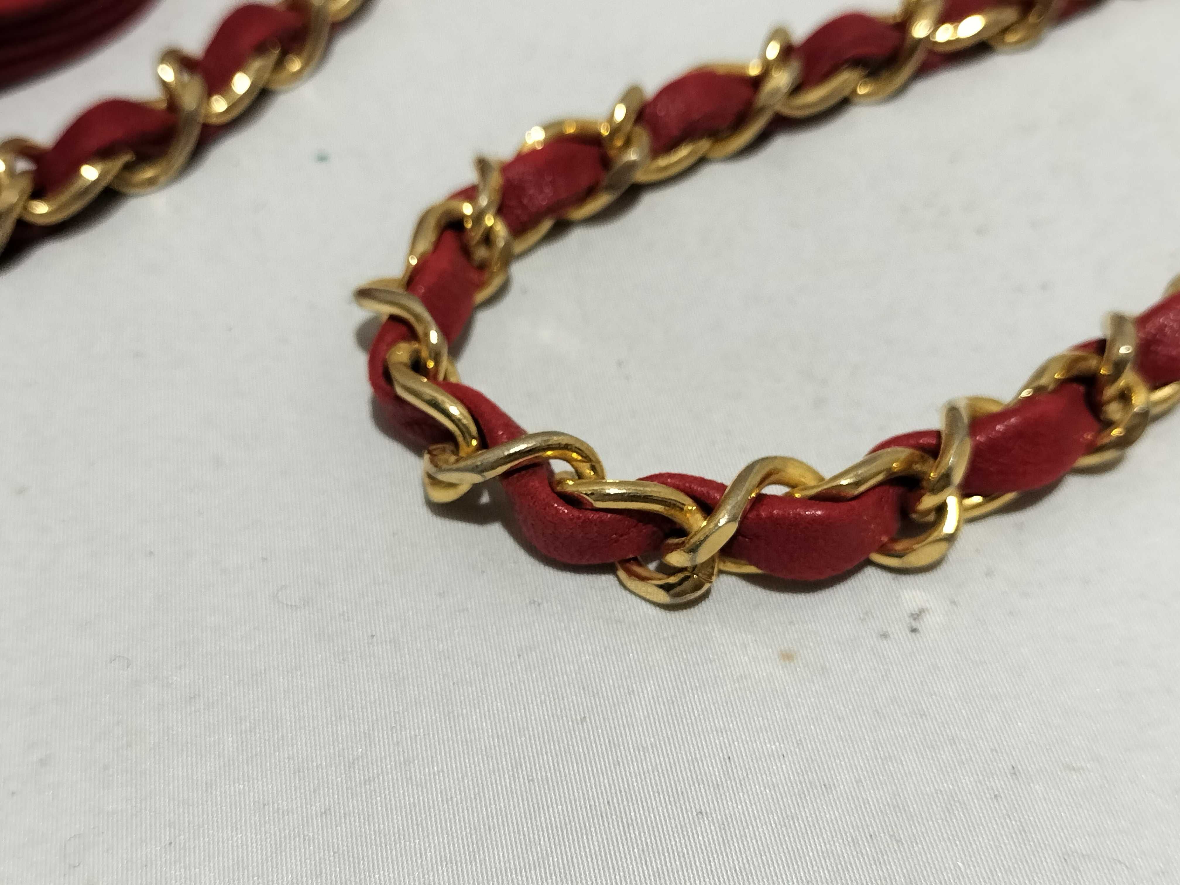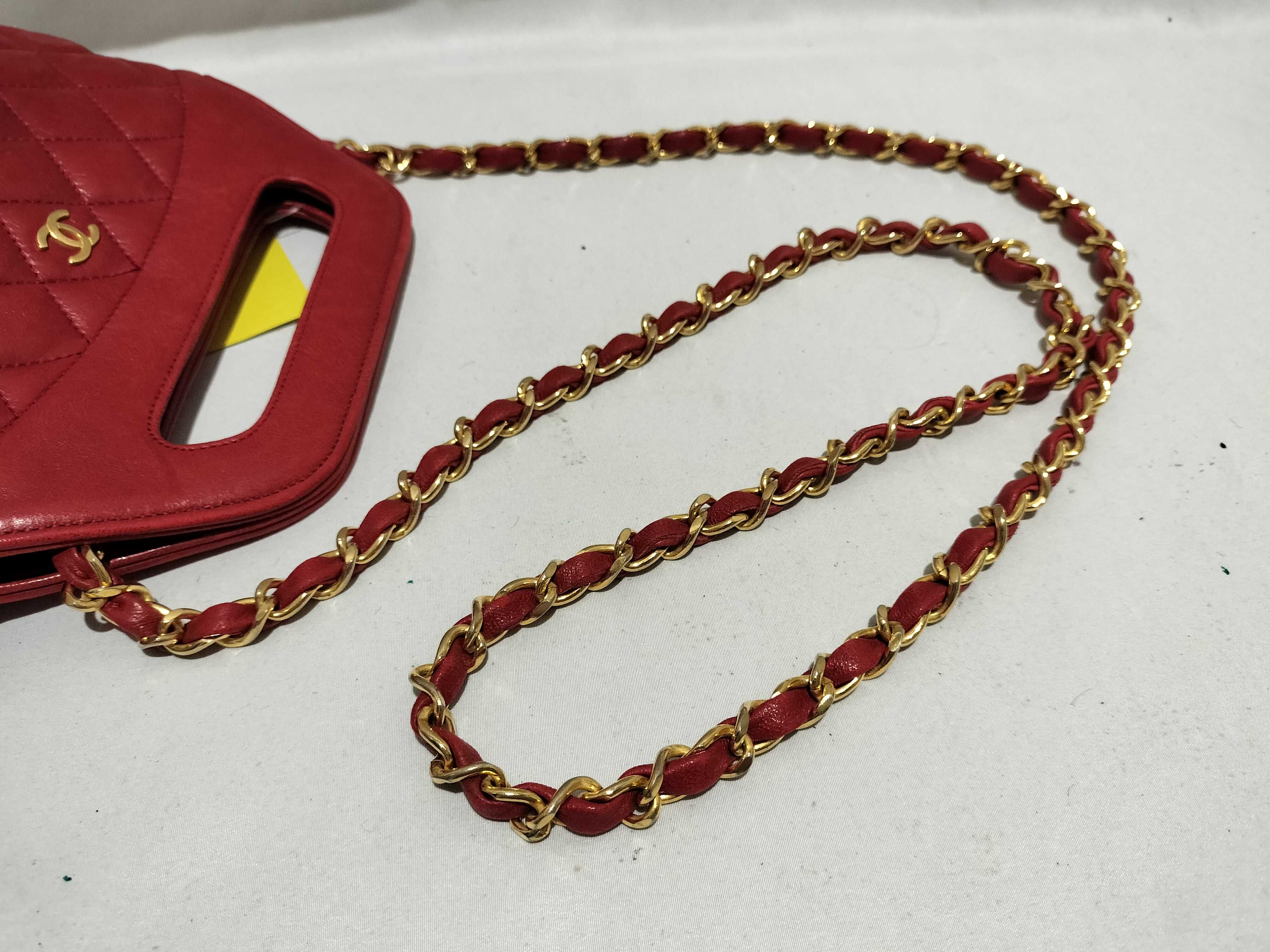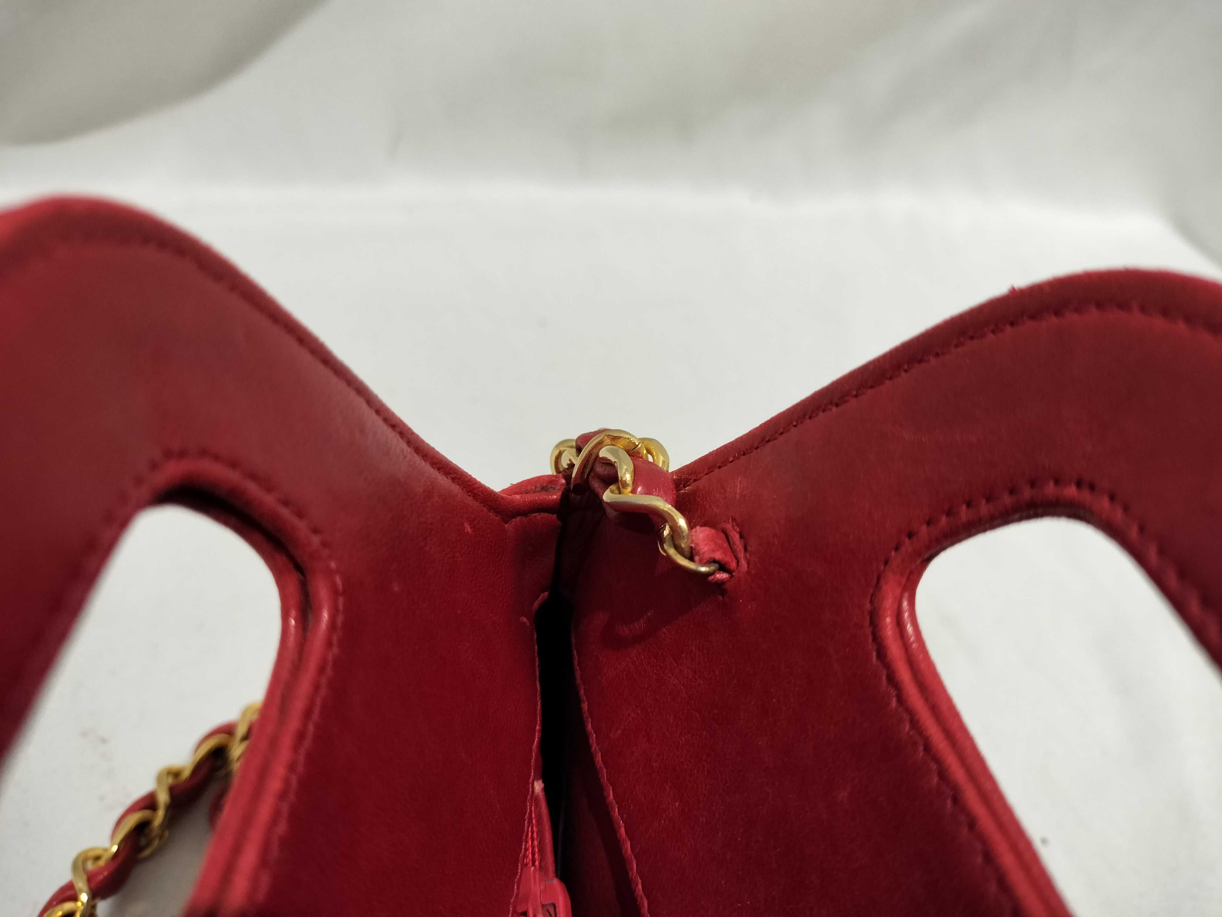 (B_0531)CHANEL ラムスキン チェーンショルダー 2way レッド ショルダーバッグ