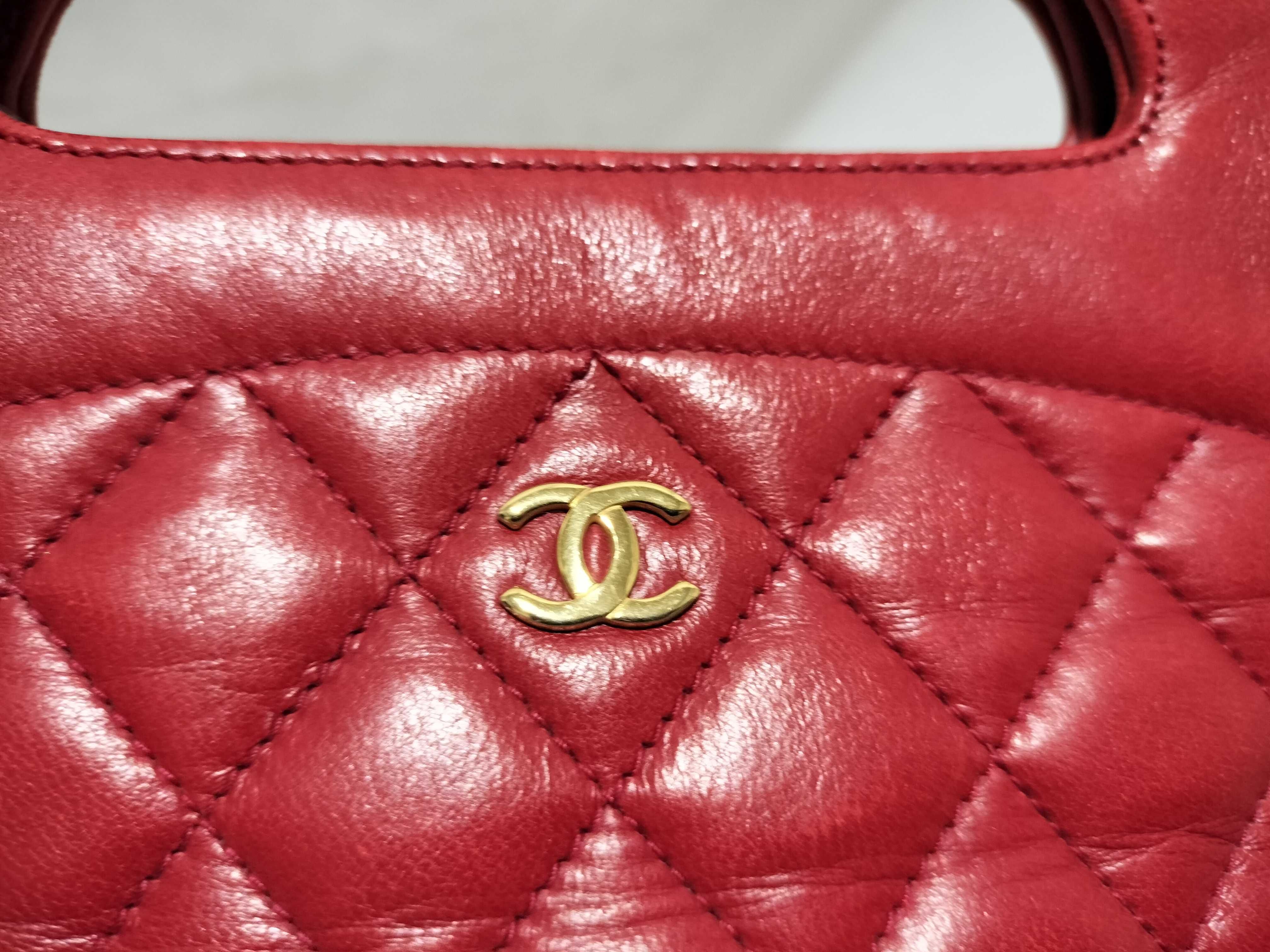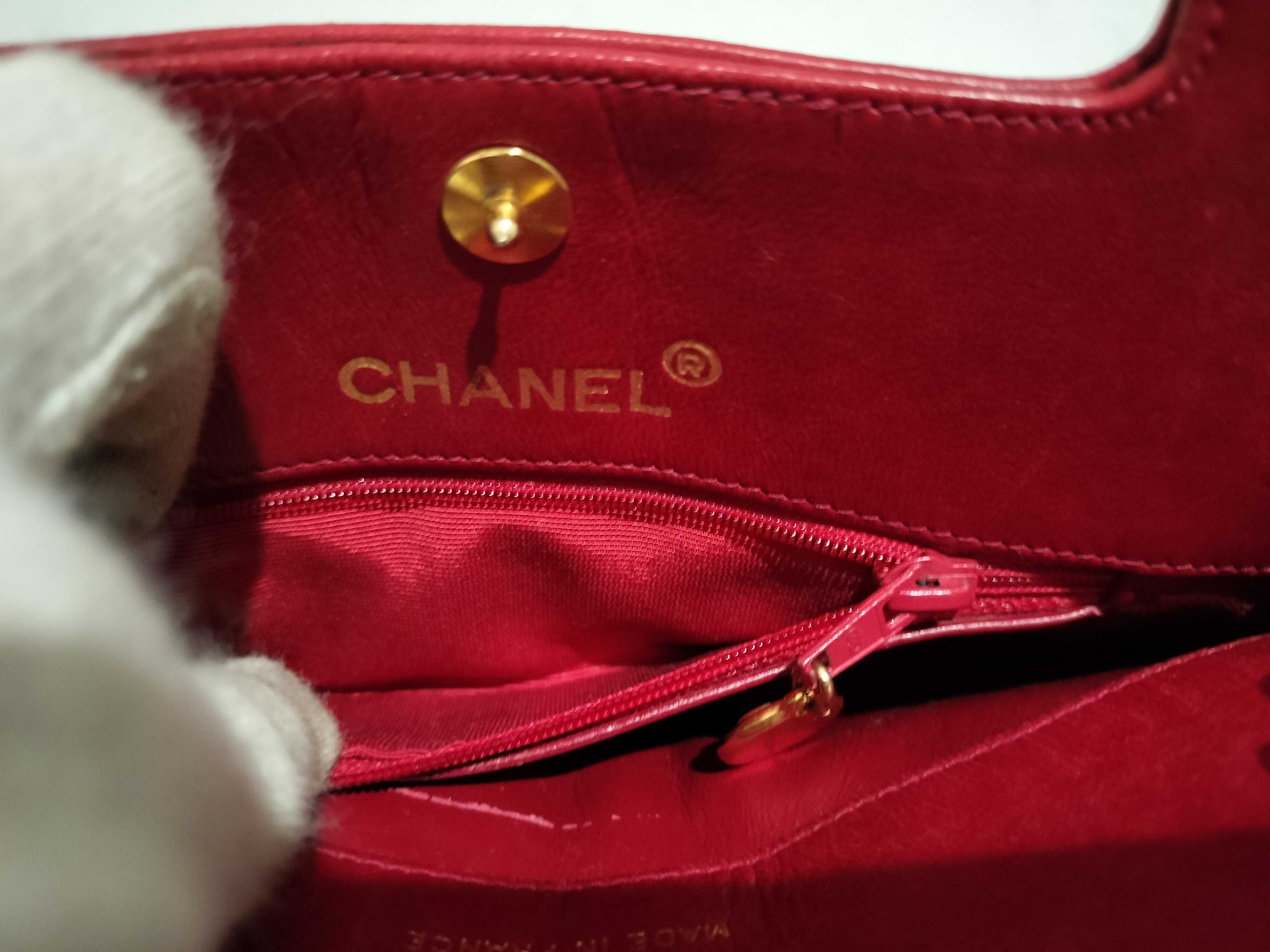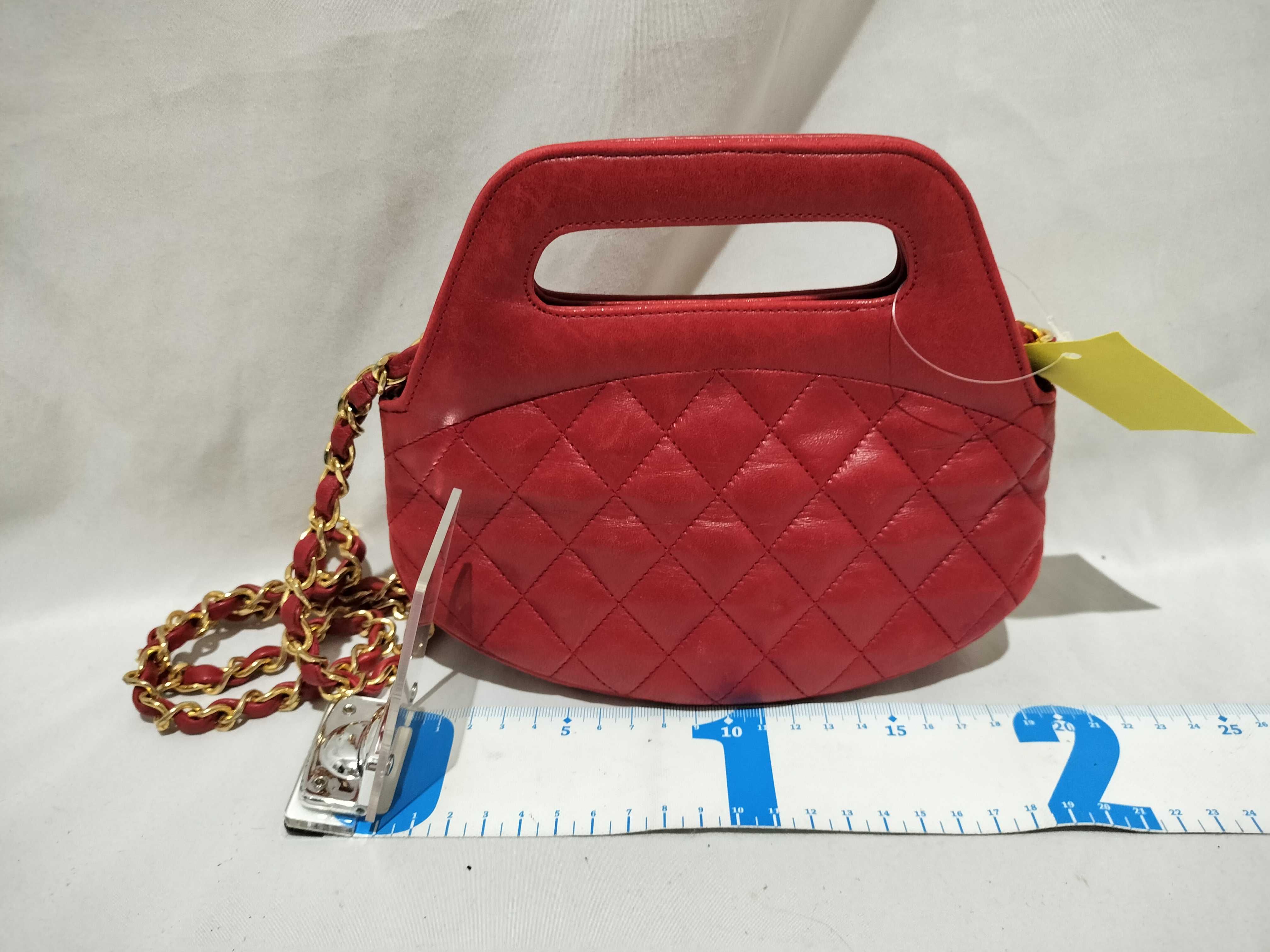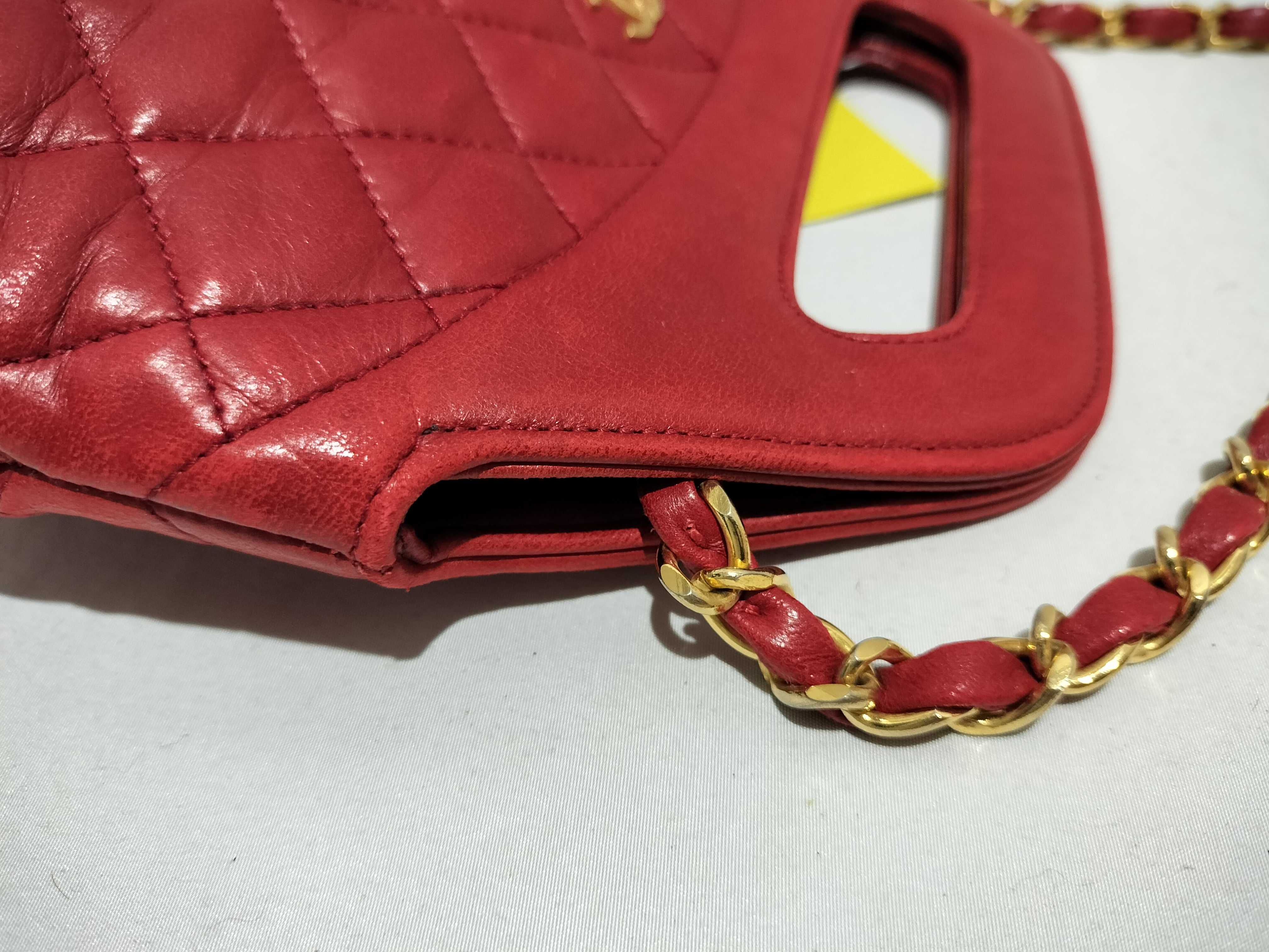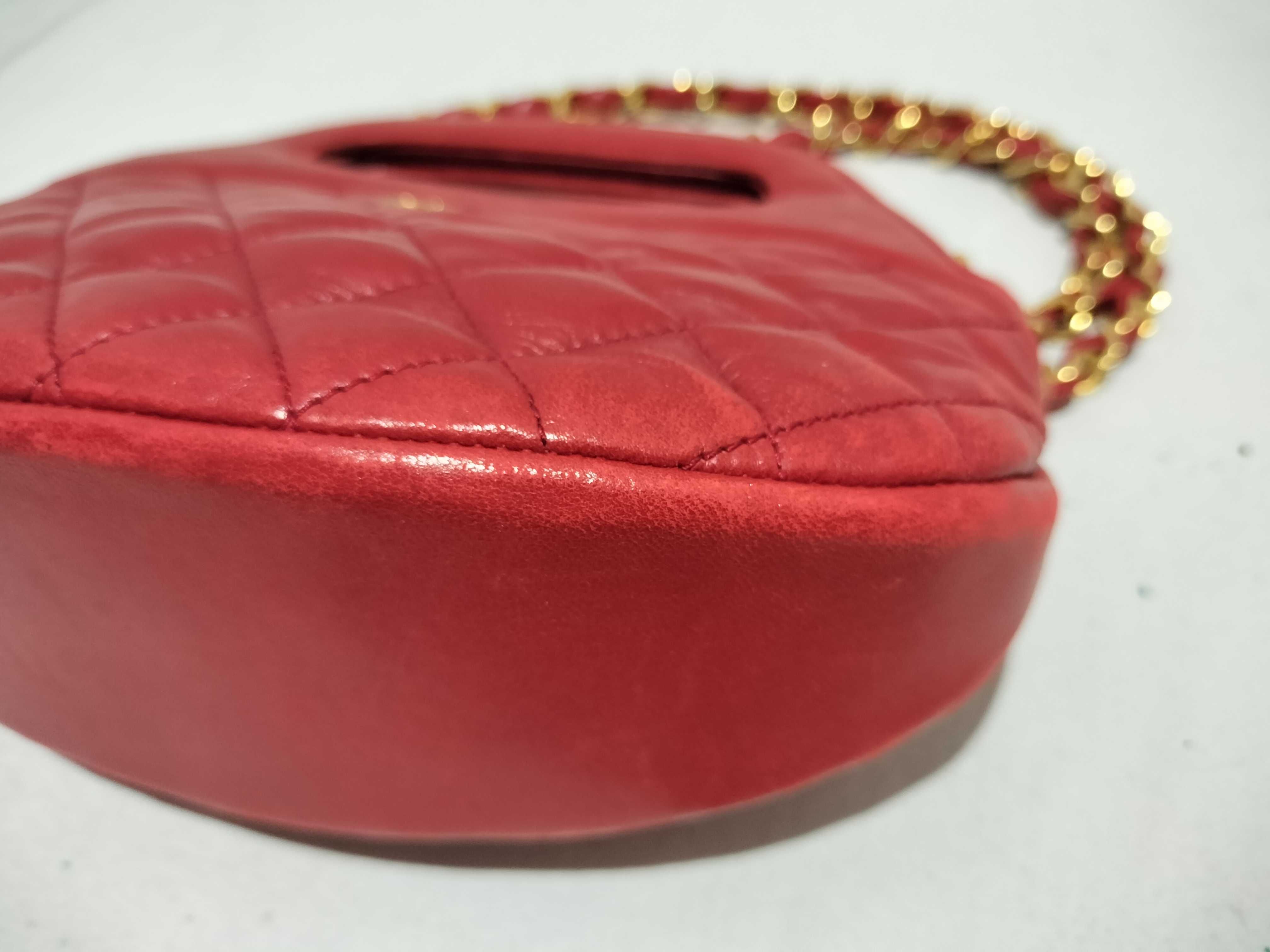 (B_0531)CHANEL ラムスキン チェーンショルダー 2way レッド ショルダーバッグ
