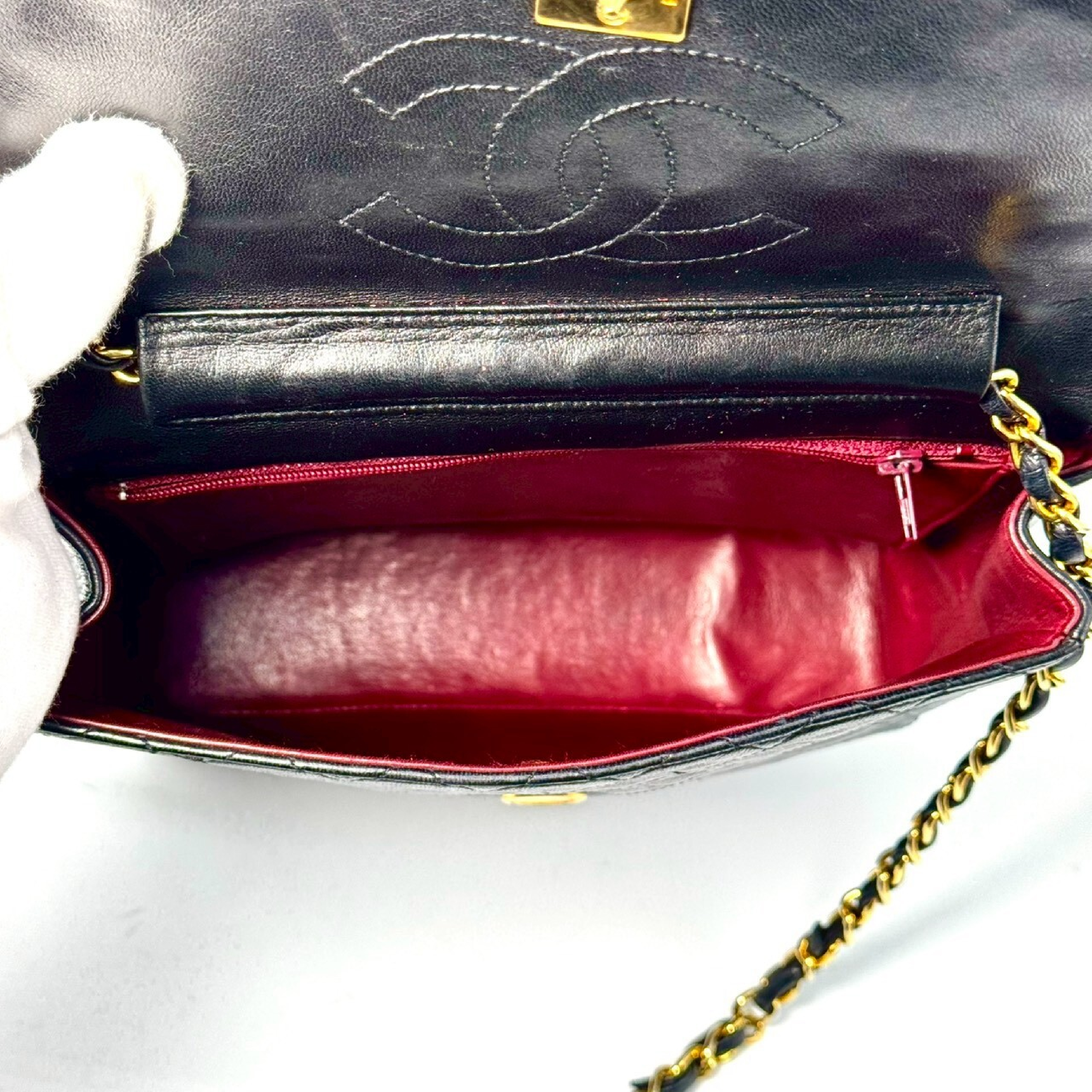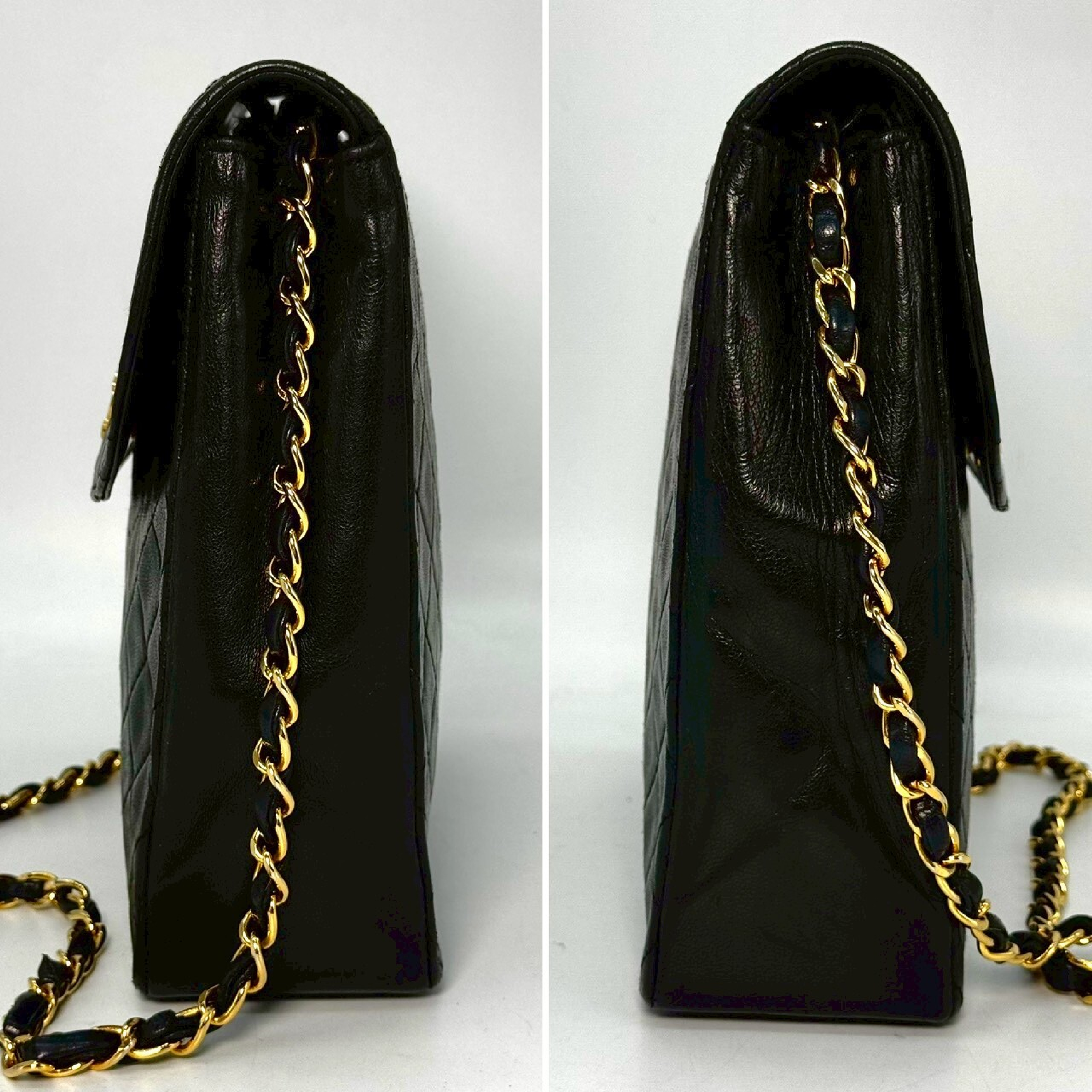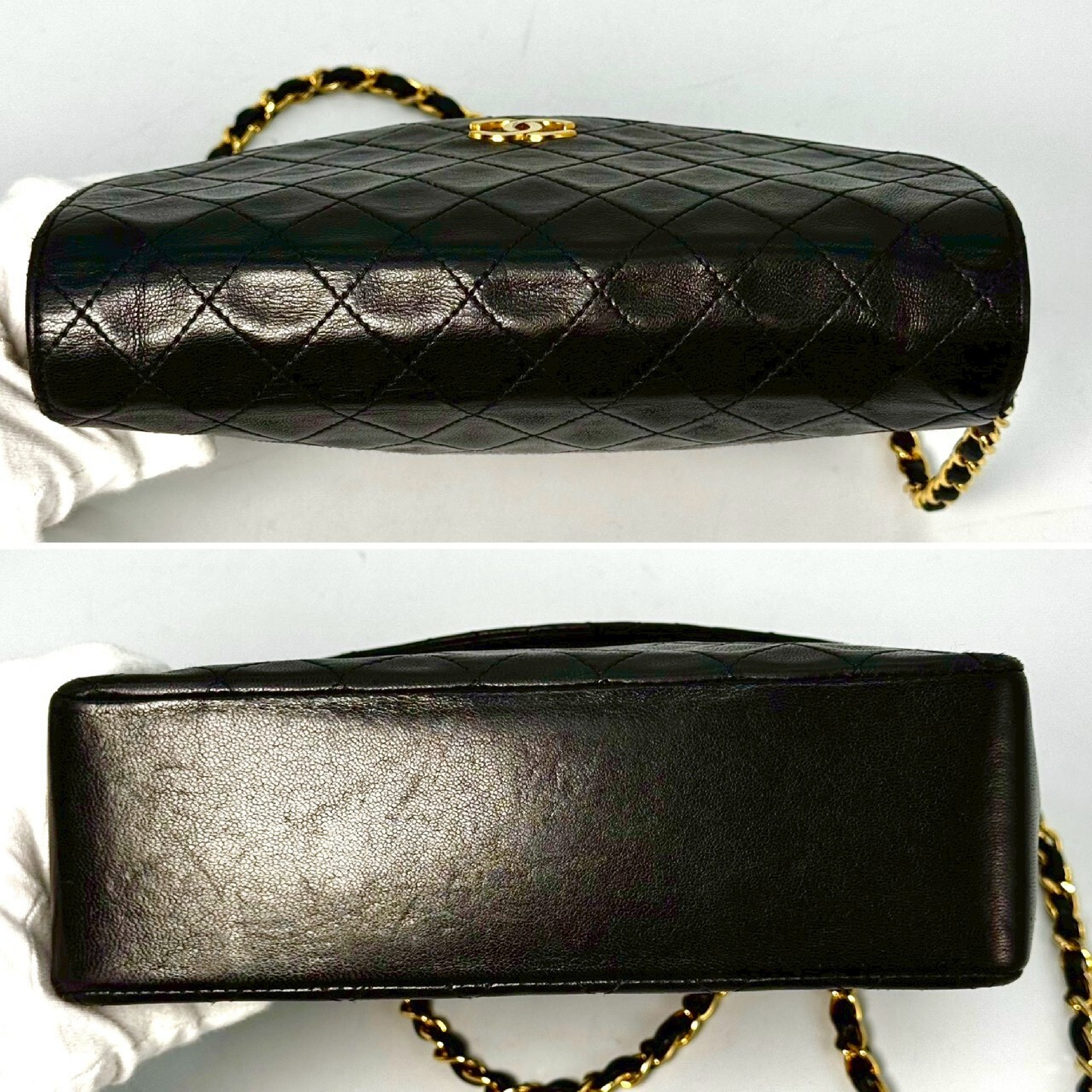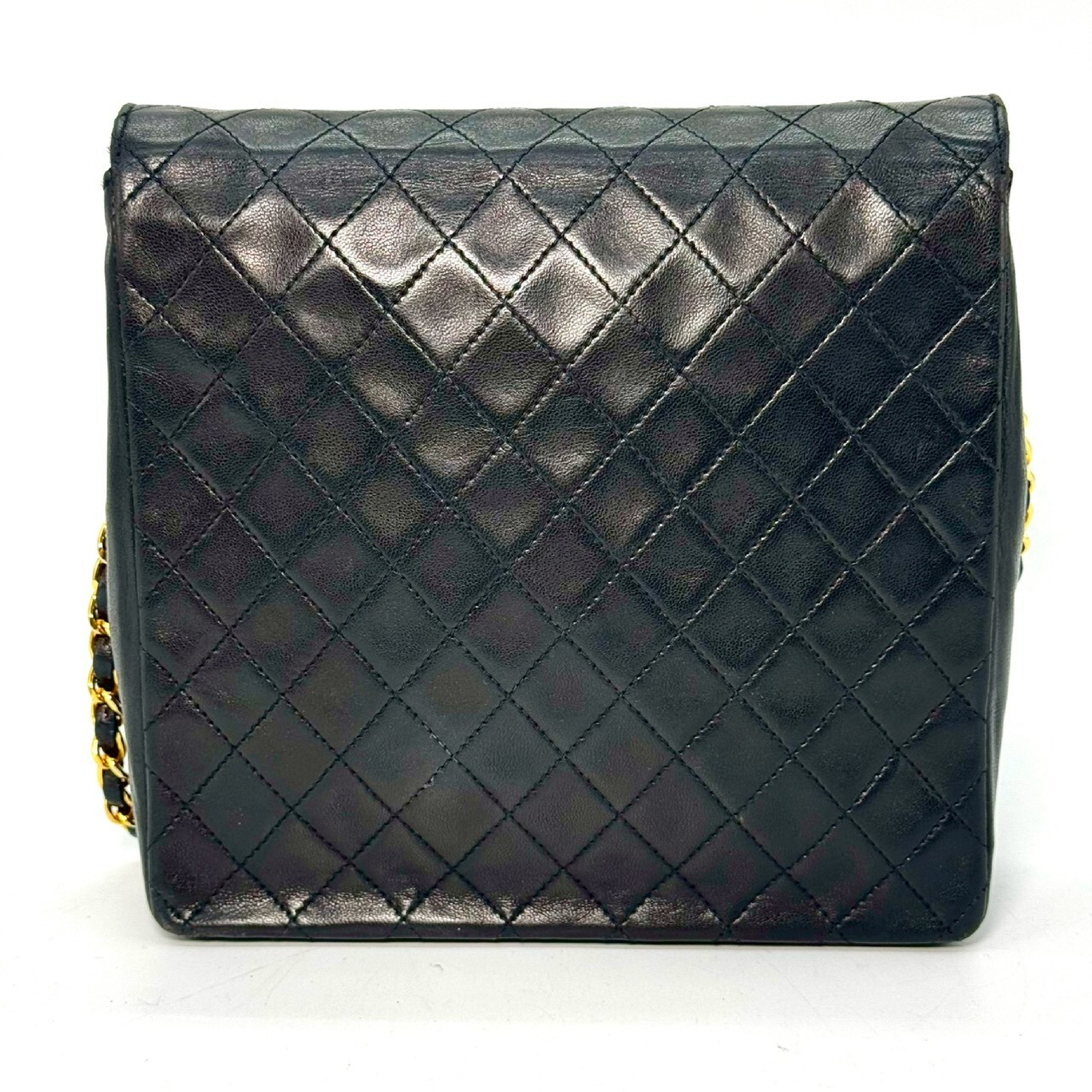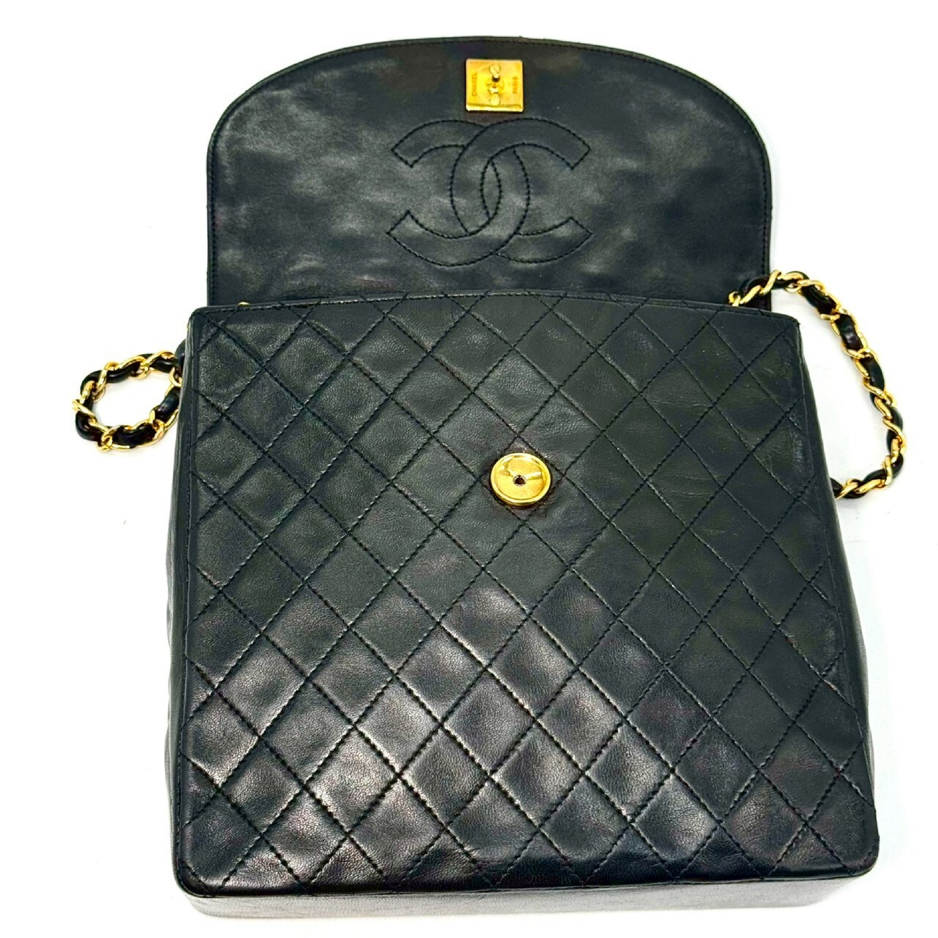 (B_0634)CHANEL マトラッセ ラムスキン ターンロック シングルフラップ 黒 シリアルシールなし チェーン ショルダーバッグ