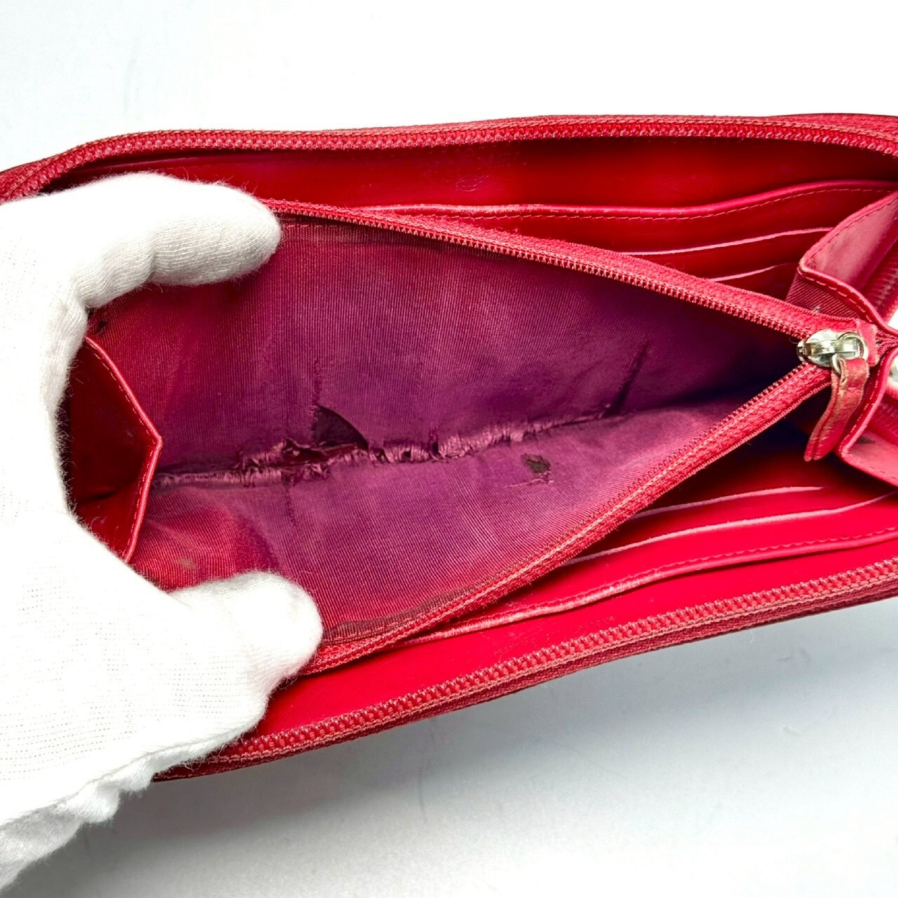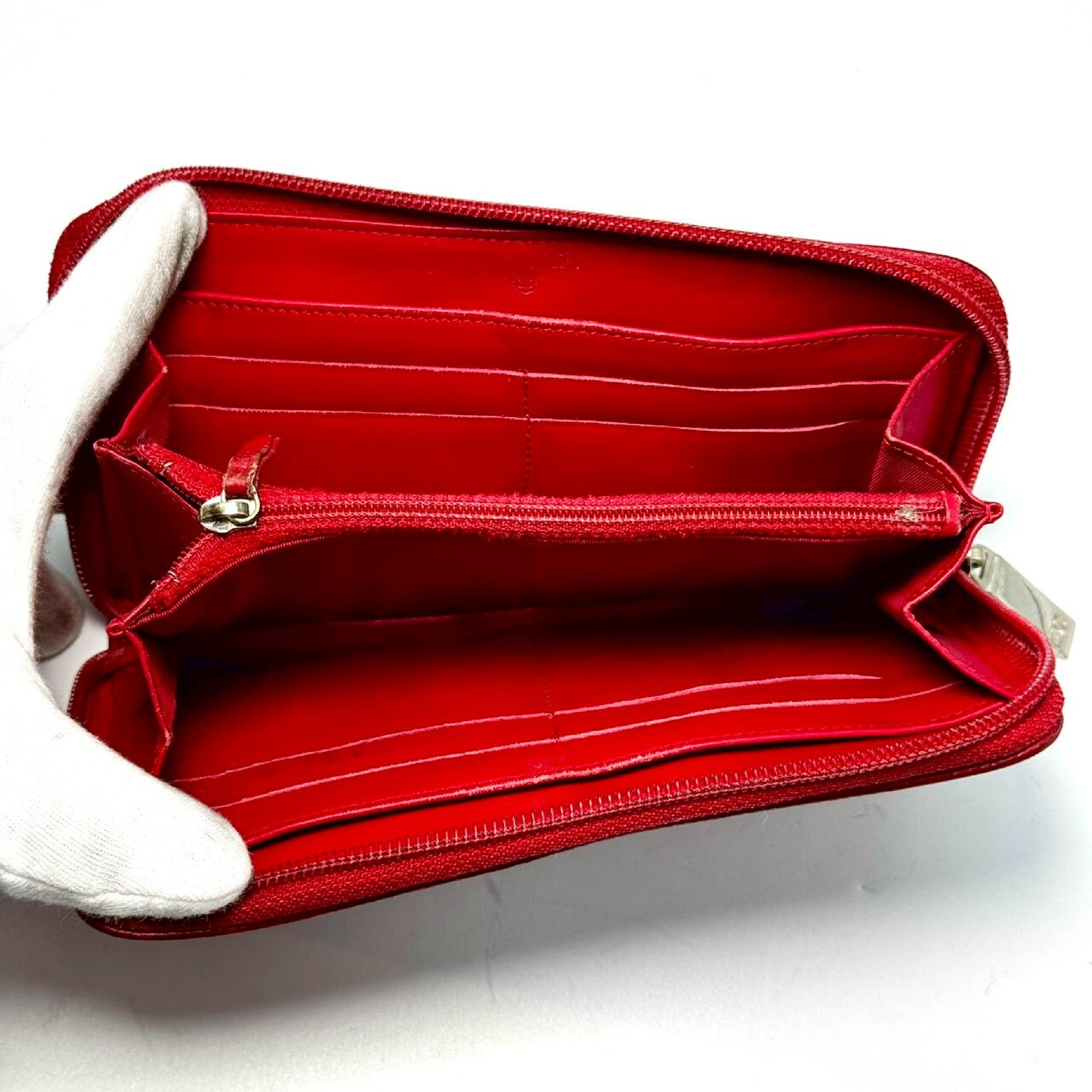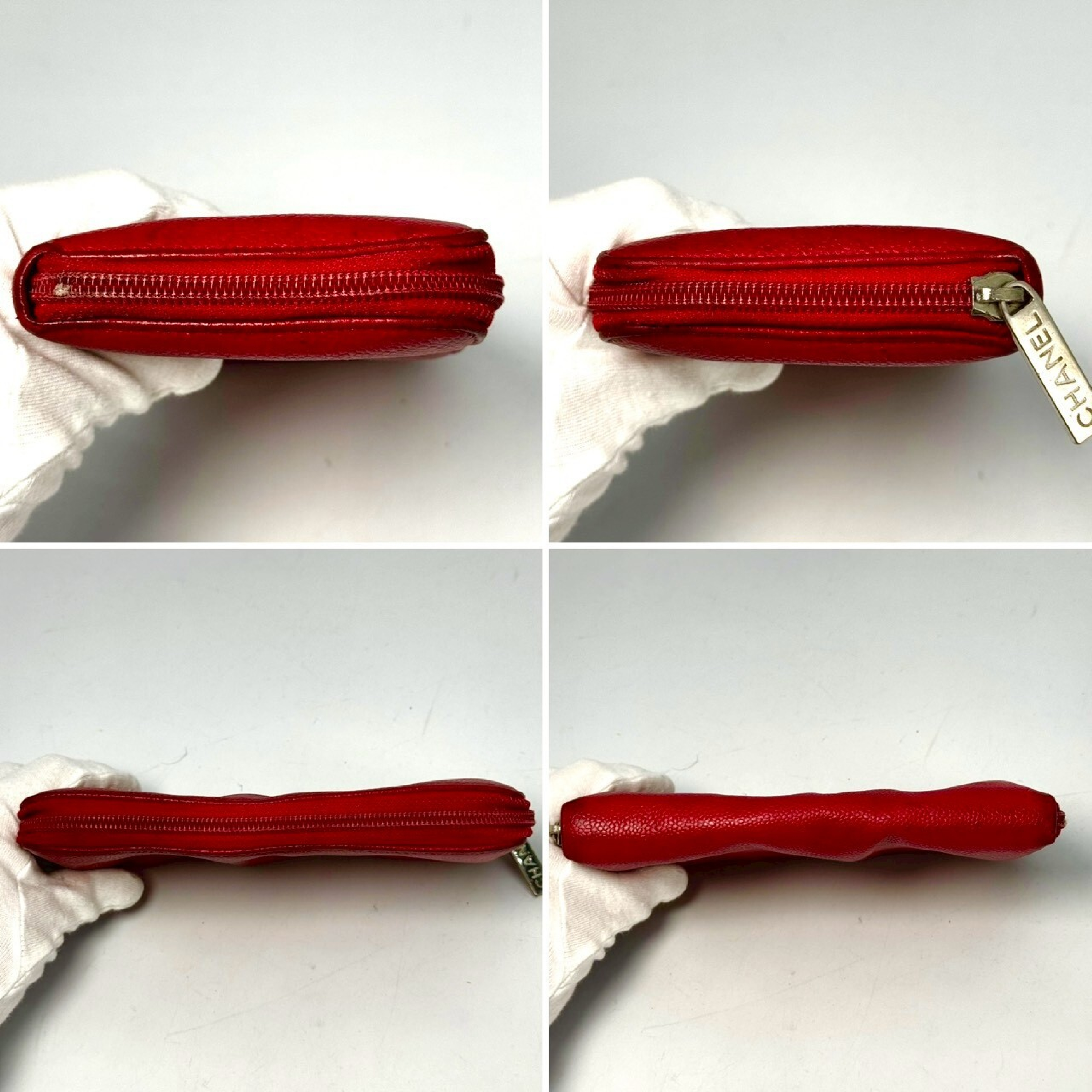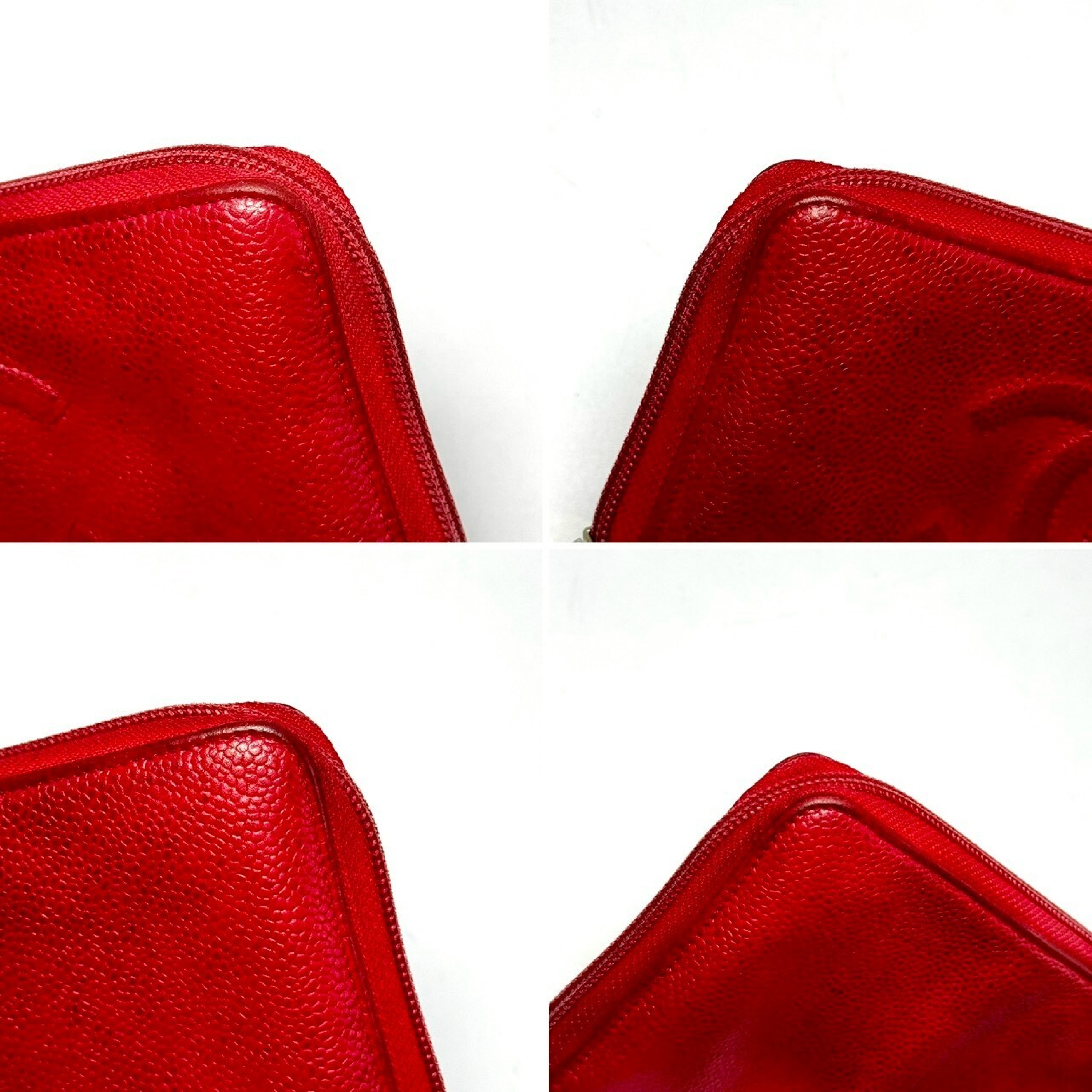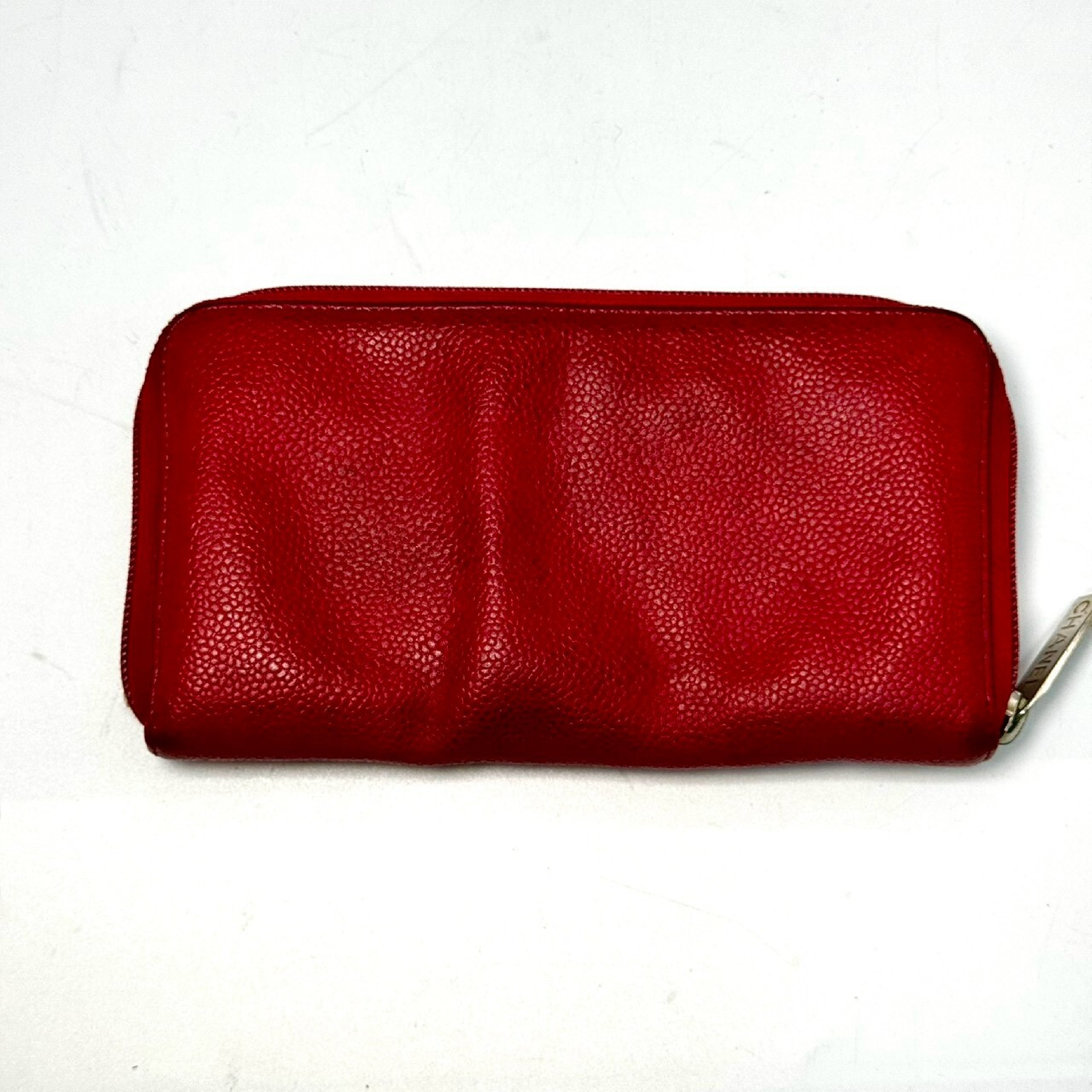 (B_0662)CHANEL ココマーク キャビアスキン ラウンドファスナー長財布 赤 18964000 財布