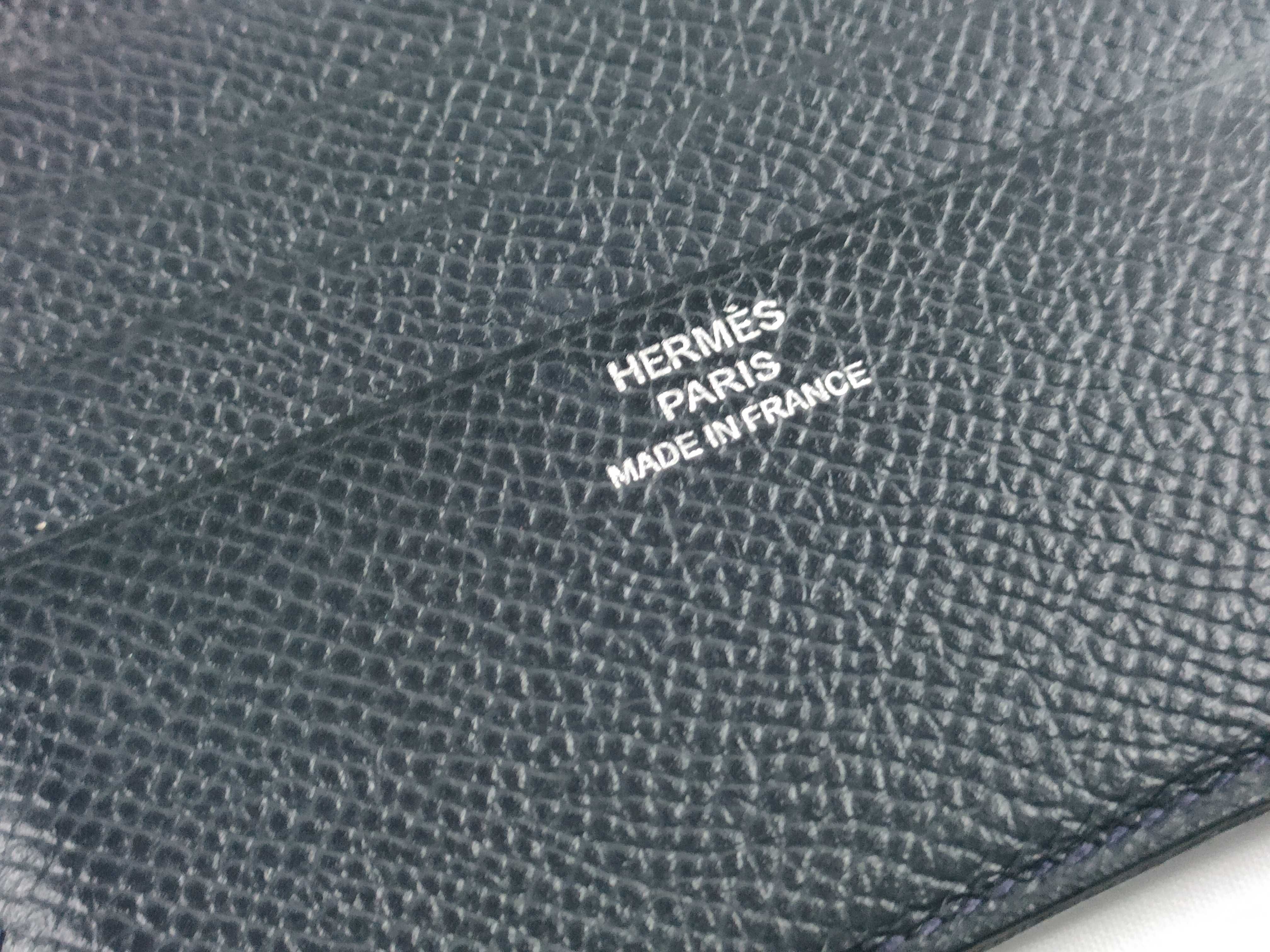 (A_0344)HERMES エルメス ネイビー レザー 財布