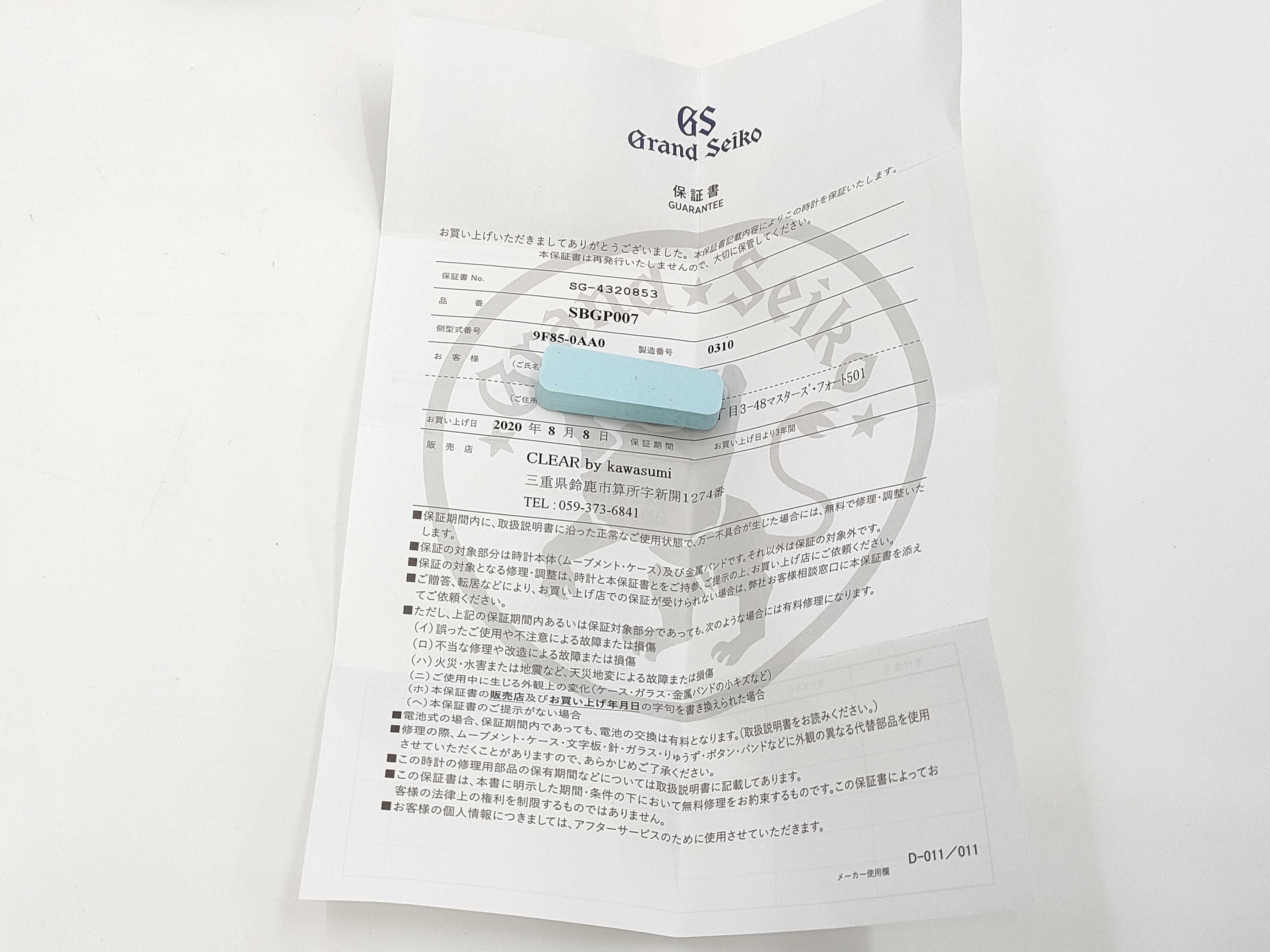 全体傷小 ガラス傷小 ベゼル・ケース打痕傷小 コマ5 ギャラあり2020.08.08【付属品