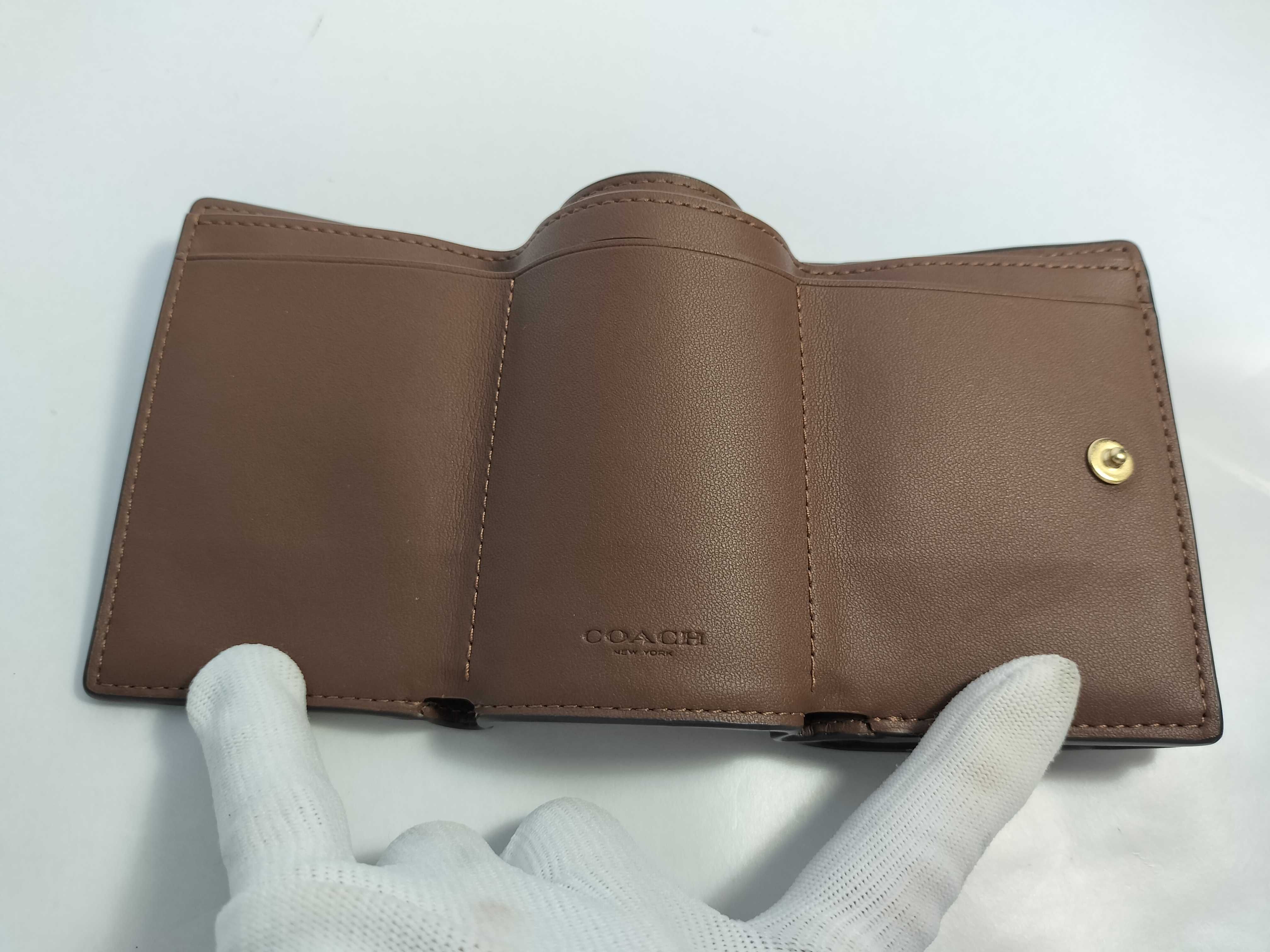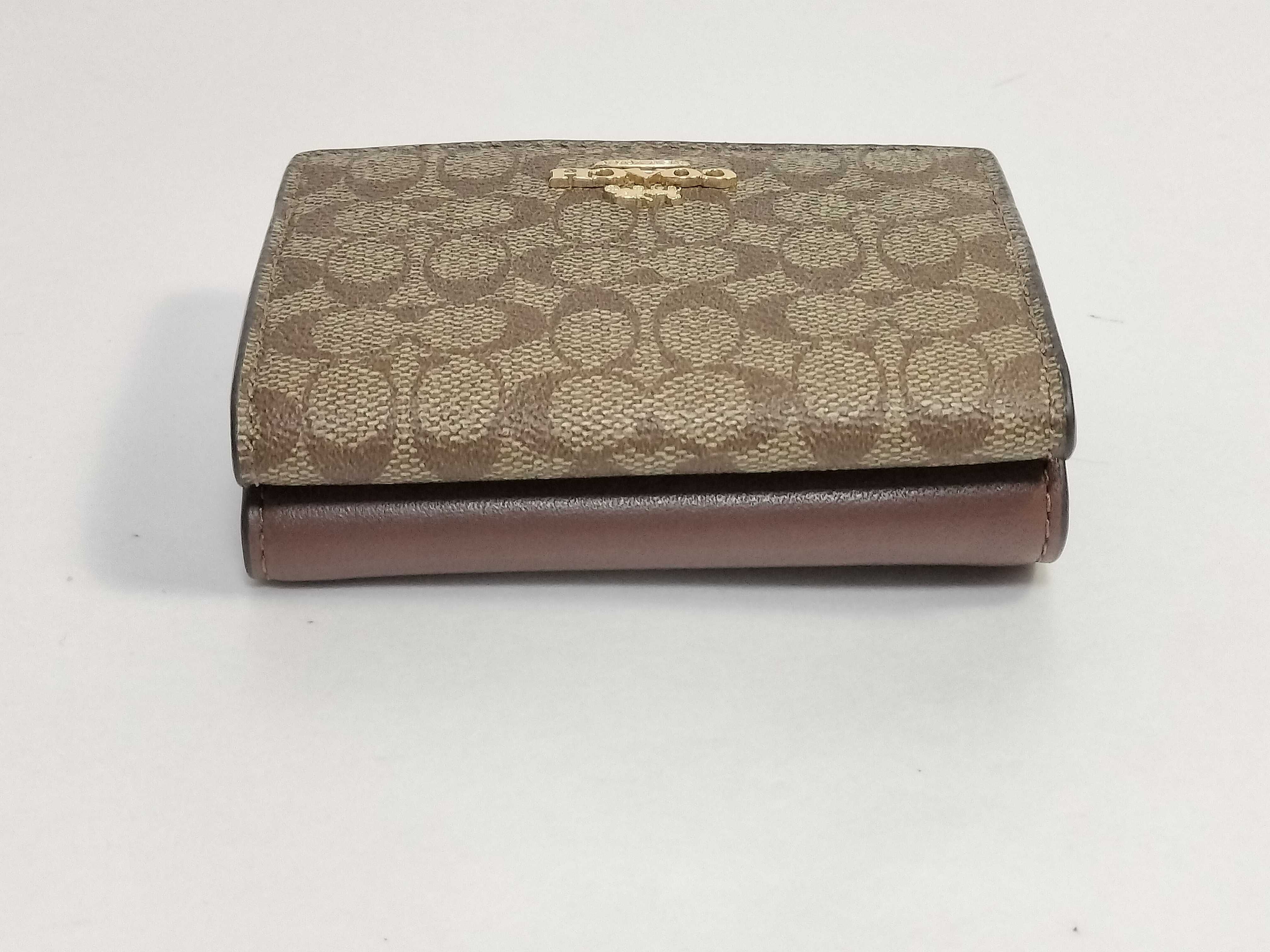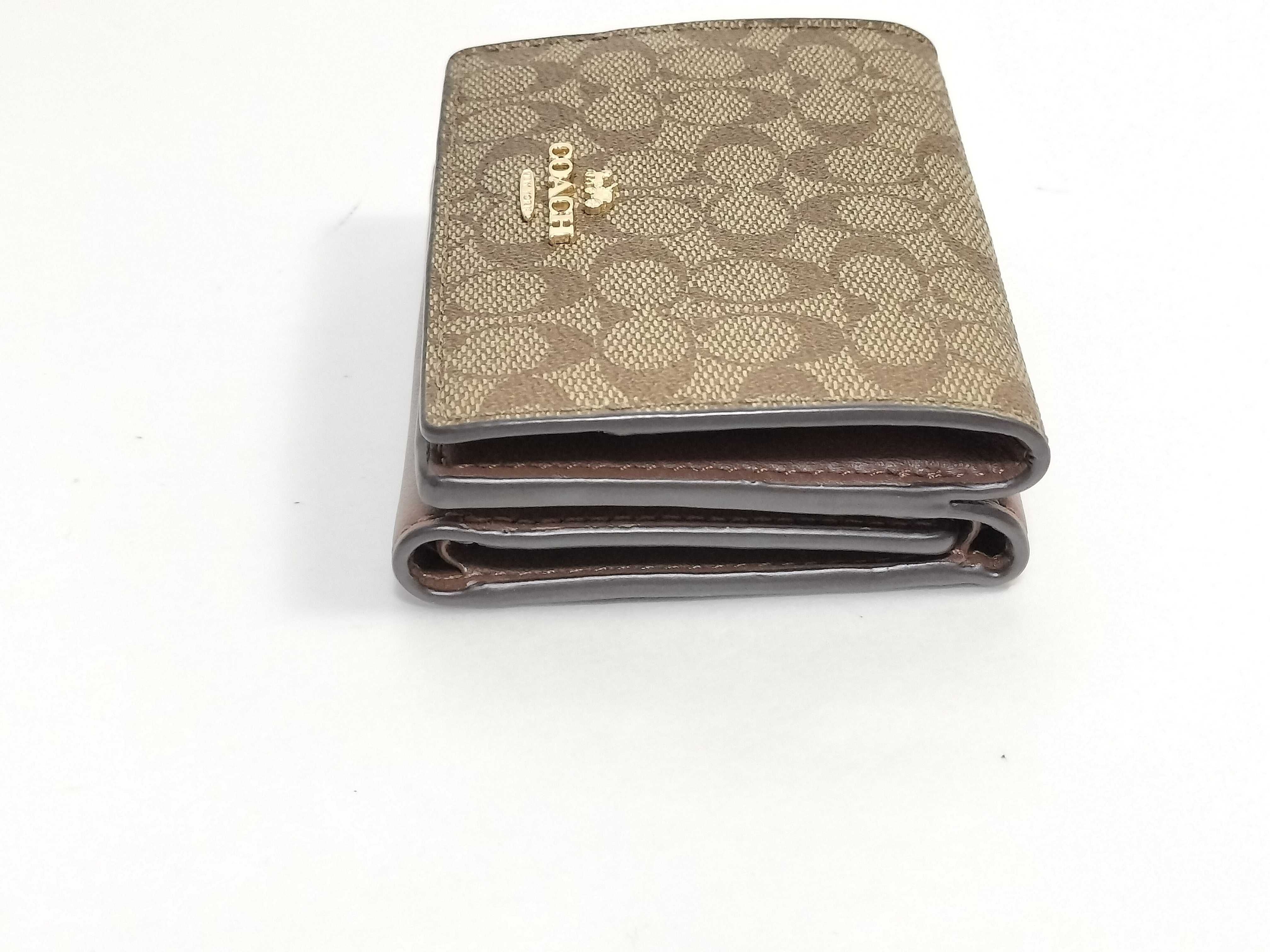 (F_0401)COACH ミニシグネチャー □ coach 三つ折り 財布/コインケース 財布