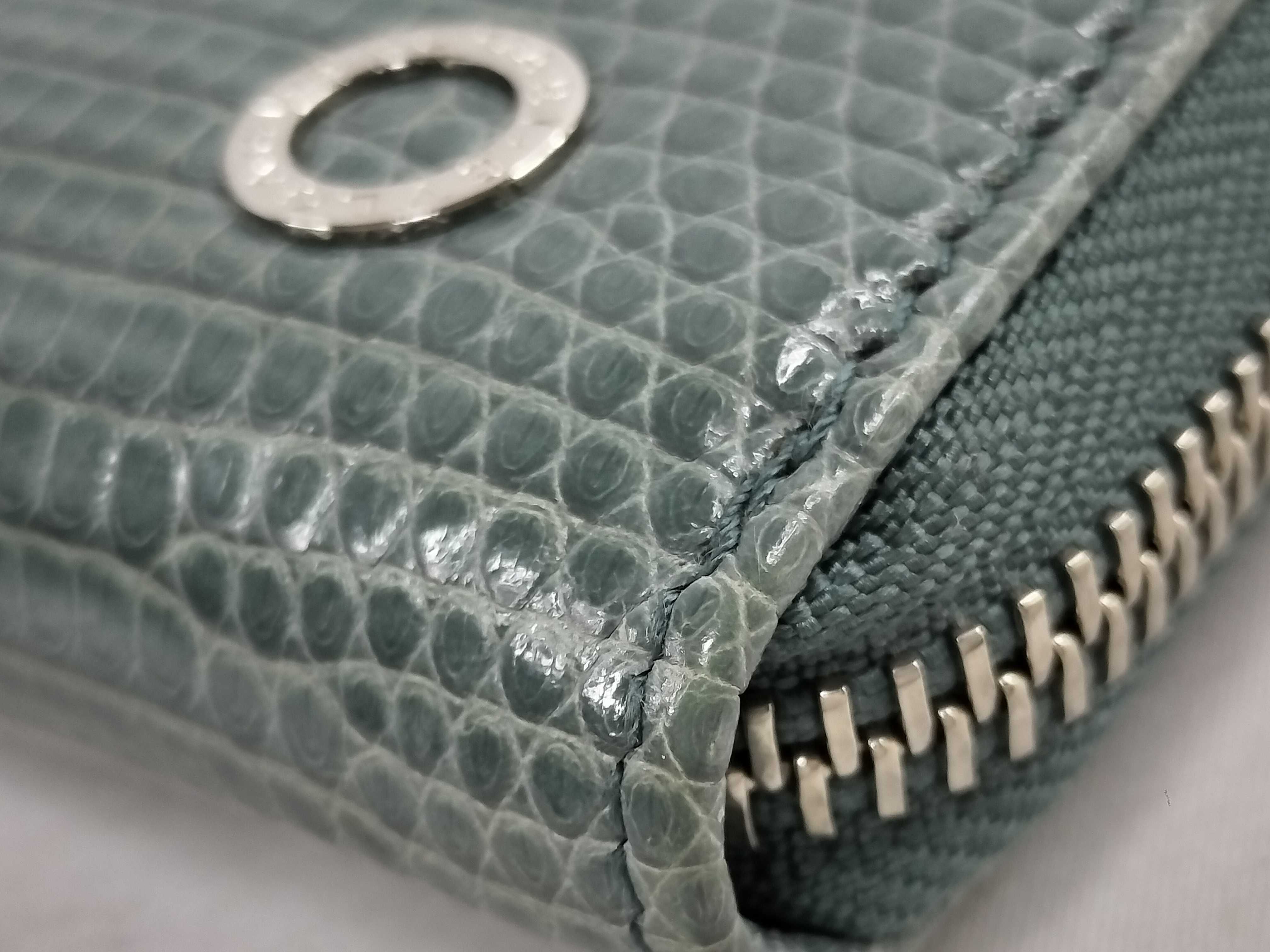 (F_0426)▼BVLGARI リザード 型押し ラウンド長財布 財布