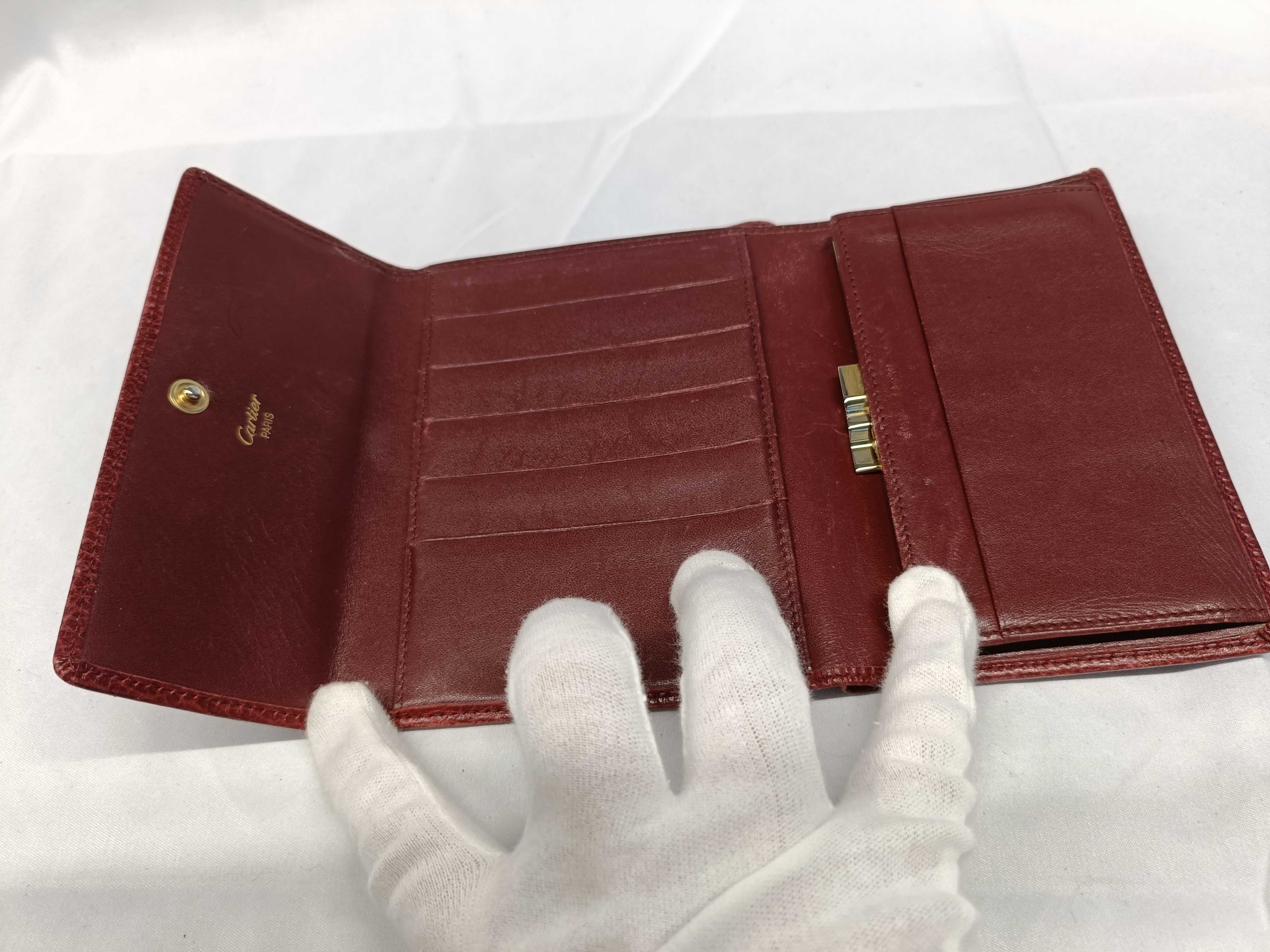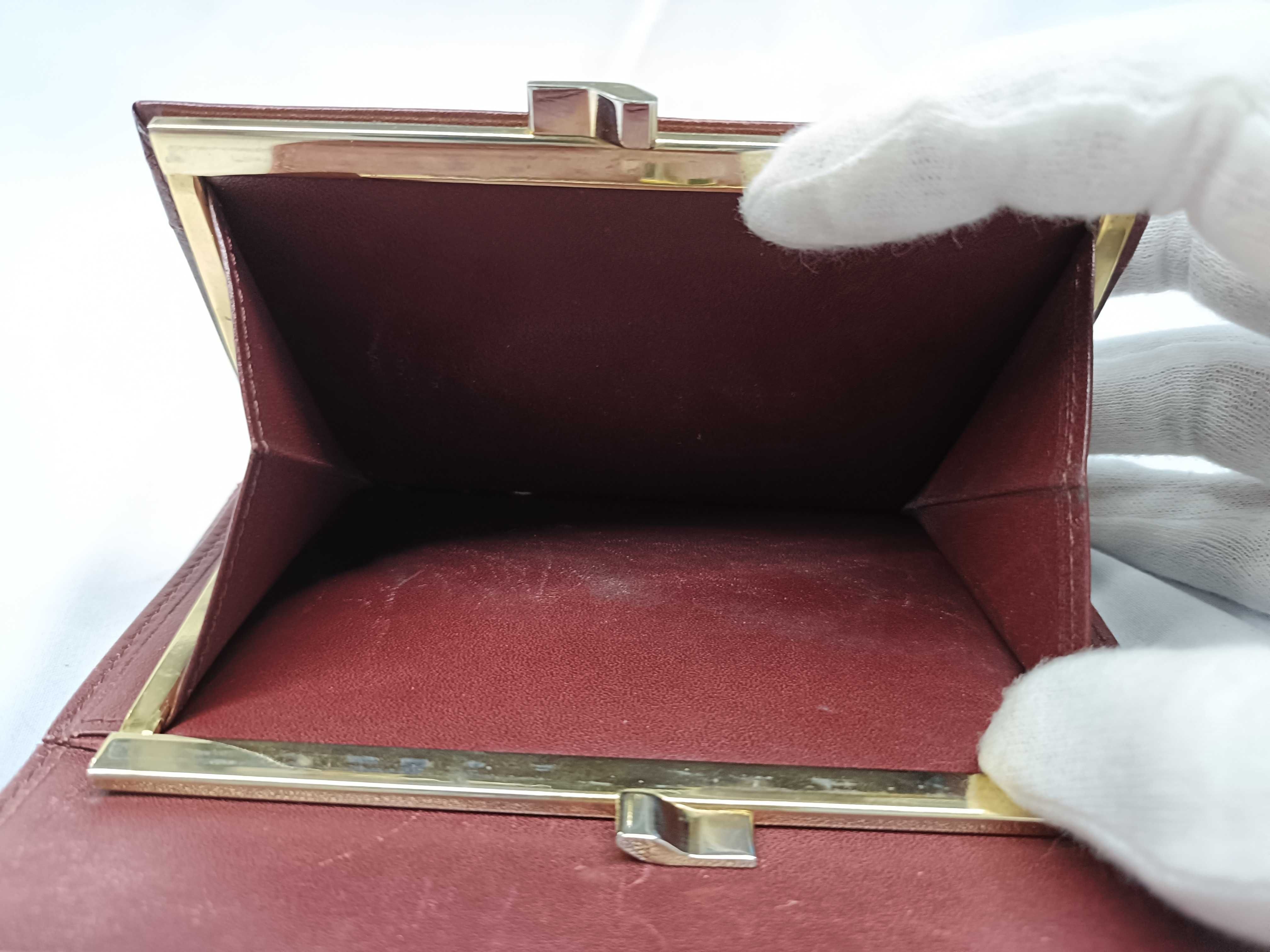 (F_0500)Cartier レザー 財布 ボルドー がま口 財布