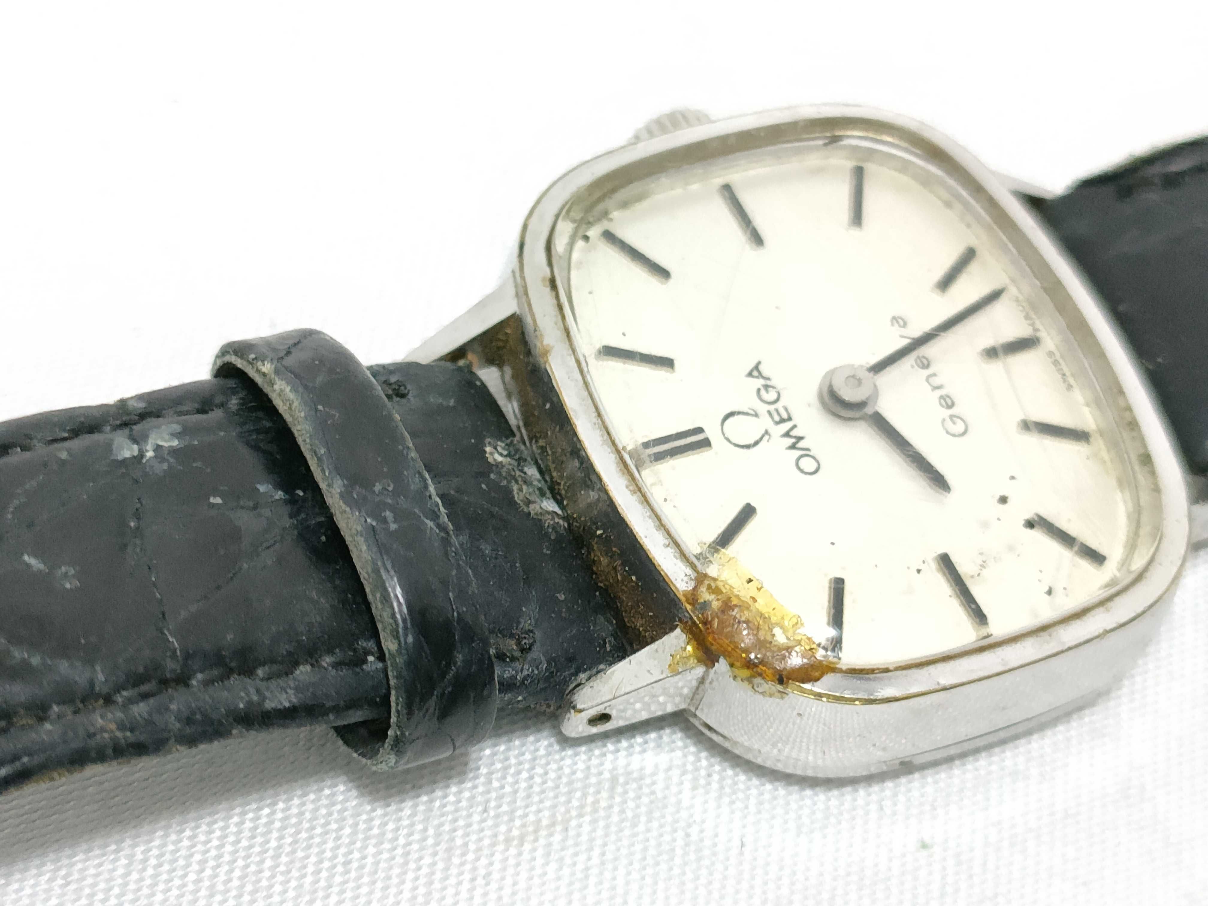 (J_0383)OMEGA ジュネーブ レディース」 手巻き スクエア レディース腕時計